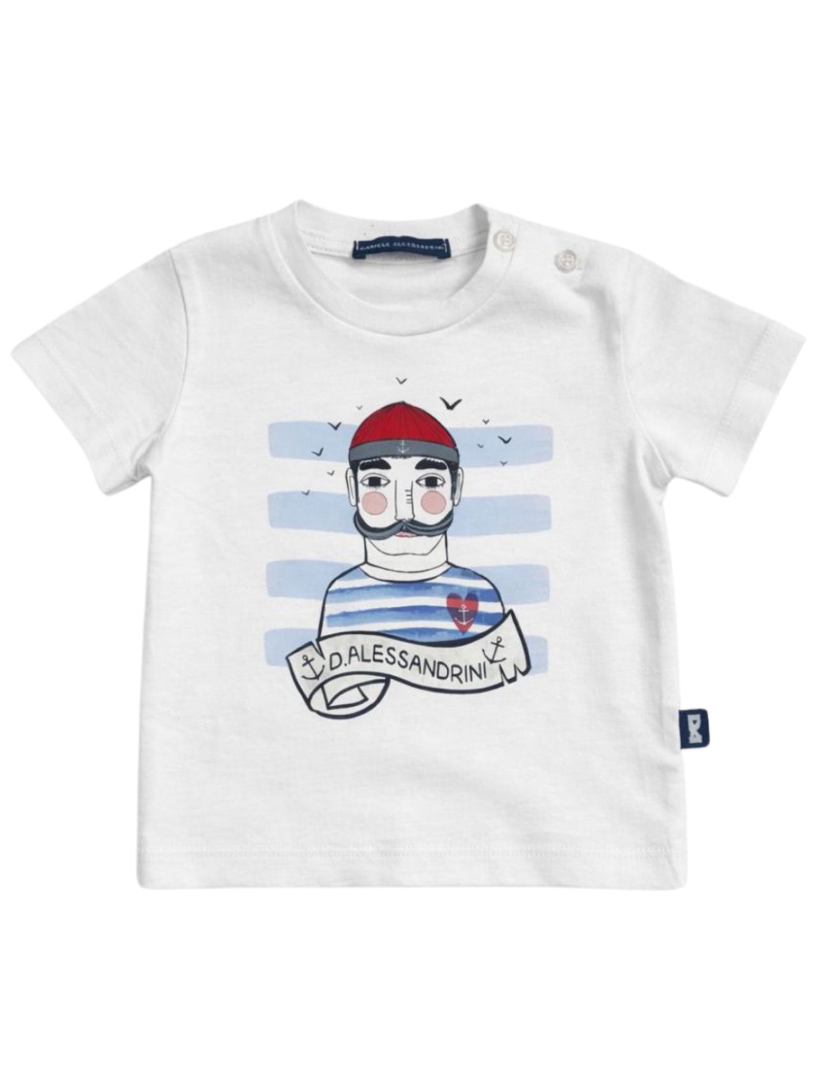 Daniele Alessandrini Kids t-shirt di colore bianco, modello girocollo, mezze maniche, stampa logo a contrasto multicolor, apertura con bottoni sulla spalla, orlo dritto, vestibilità regolare. Composizione: 90% cotone 10% elastan. Made in Italy