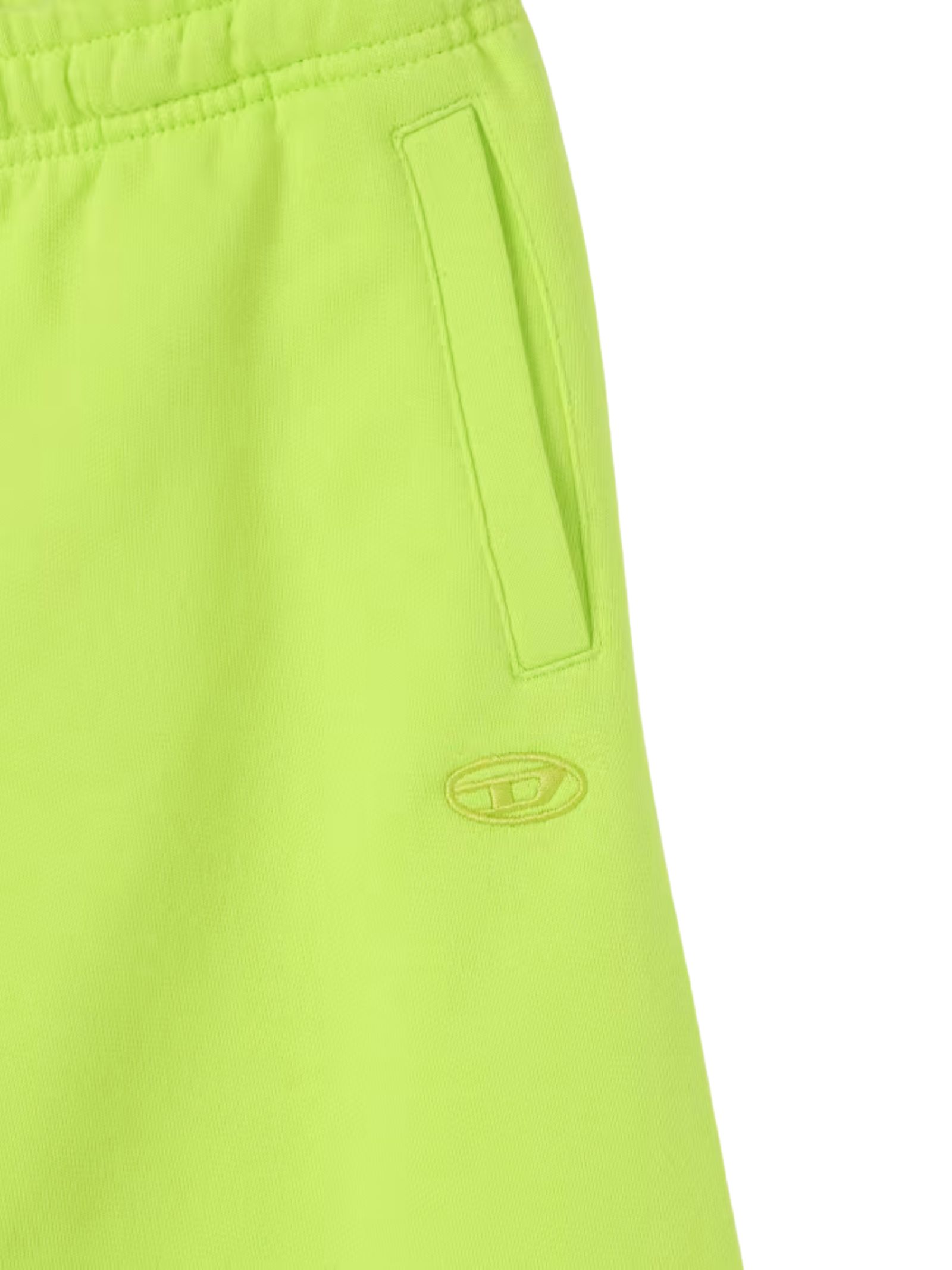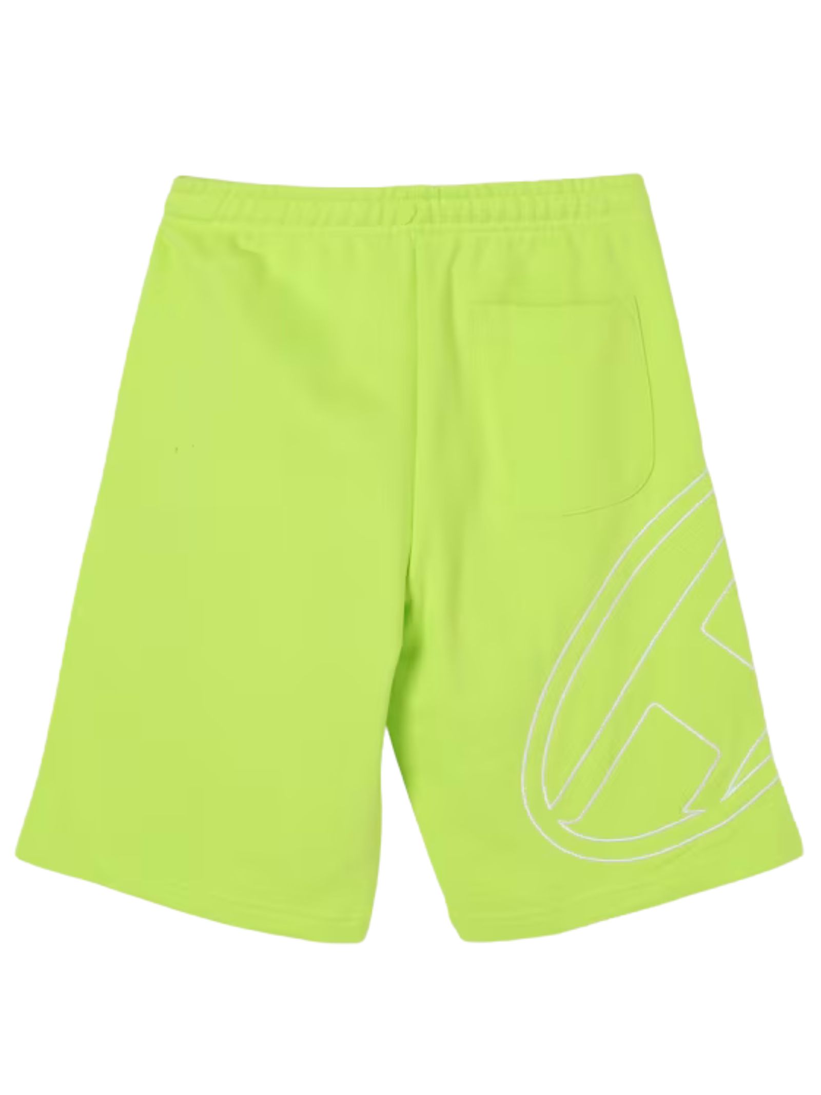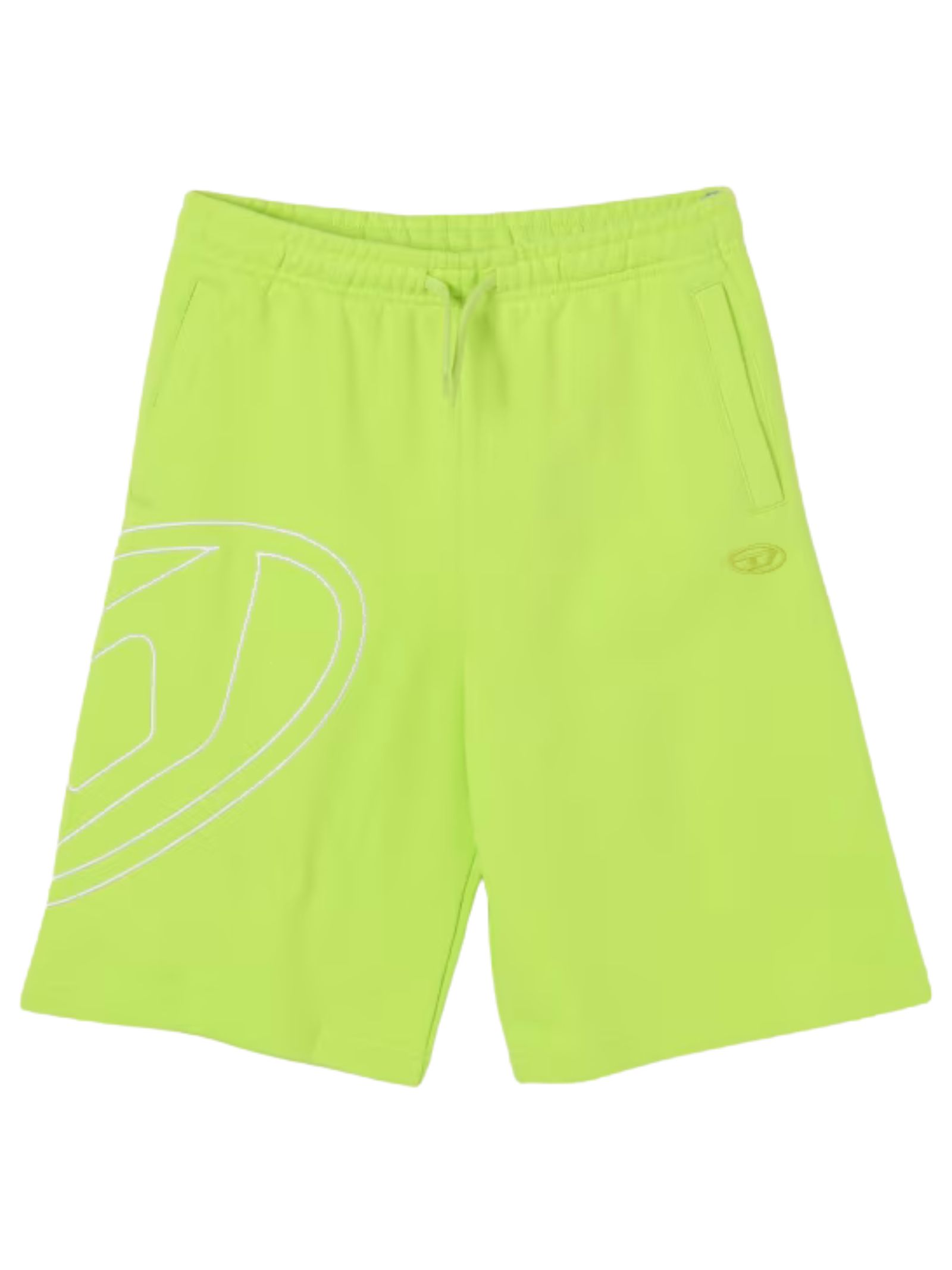 Diesel Kids bermuda di colore verde acido, modello con elastico in vita e coulisse, due tasche laterali, ricamo logo a contrasto, vestibilità regolare. Composizione: 100% cotone
