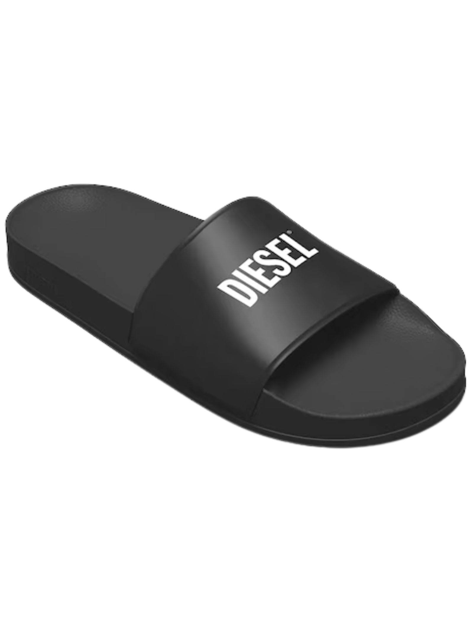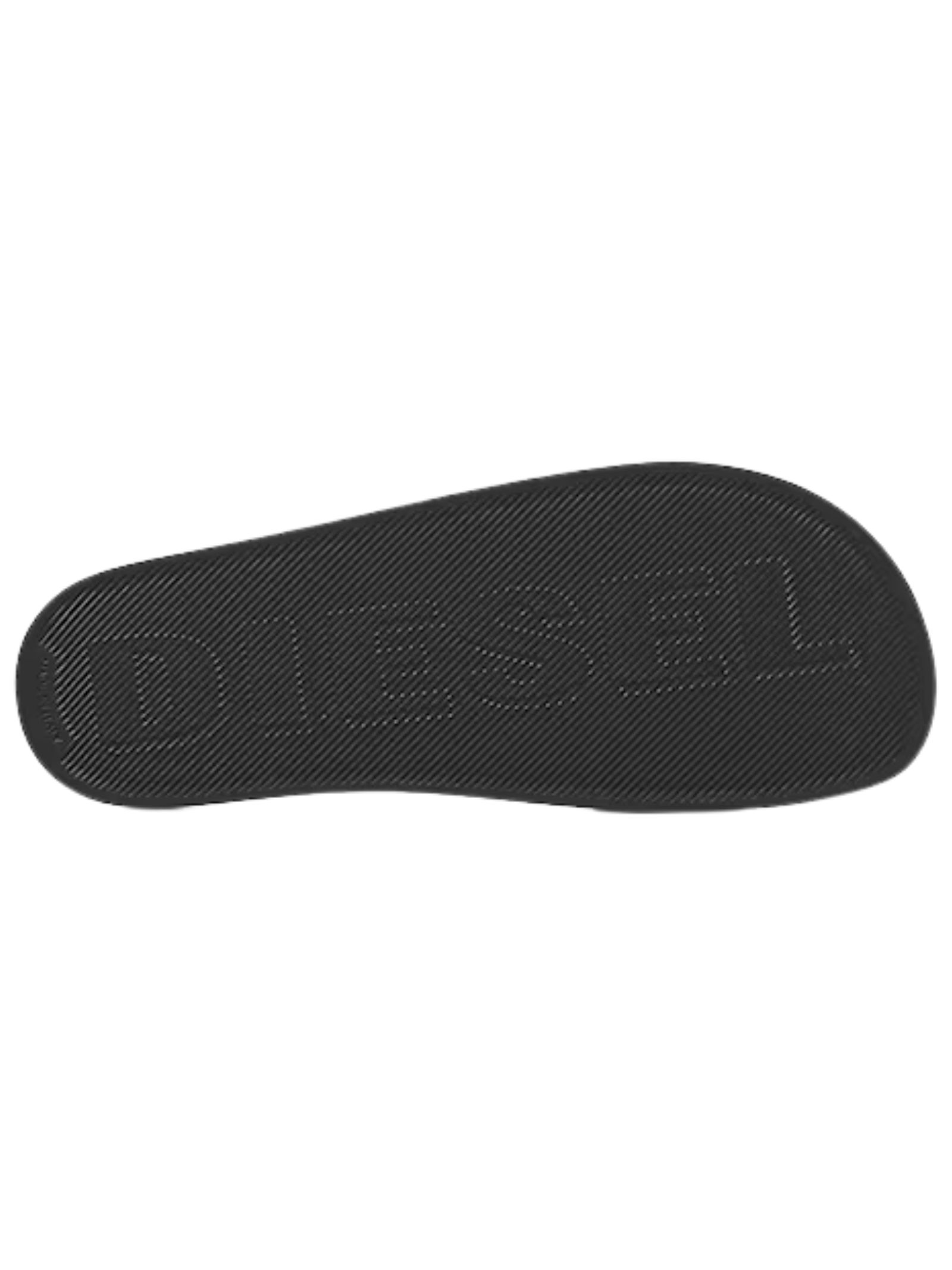 Ciabatte nere Diesel Kids in materiale sintetico, con suola in schiuma per una sensazione di maggiore morbidezza e un'ammortizzazione extra, e soletta interna morbida. Realizzate in materiale facile da pulire e ad asciugatura rapida, sono perfette per la piscina, la spiaggia o una passeggiata. Made in Italy.