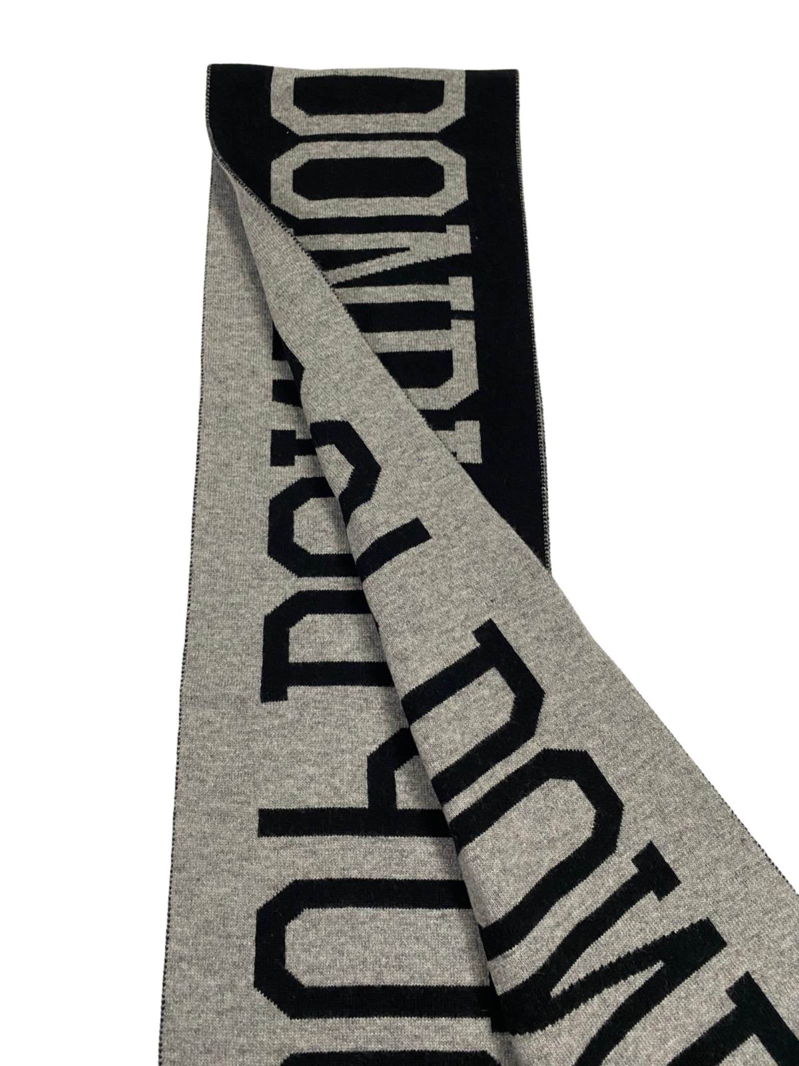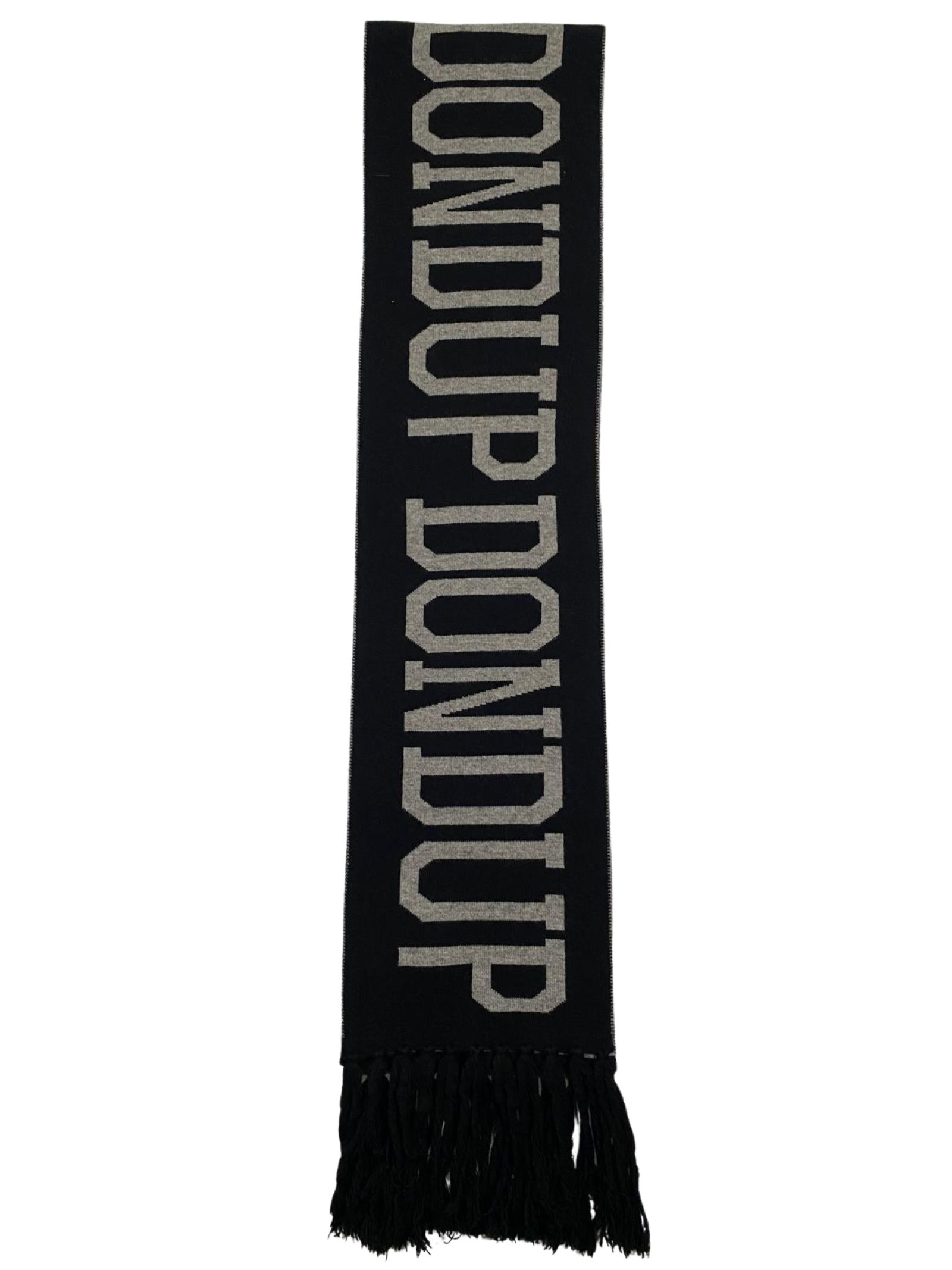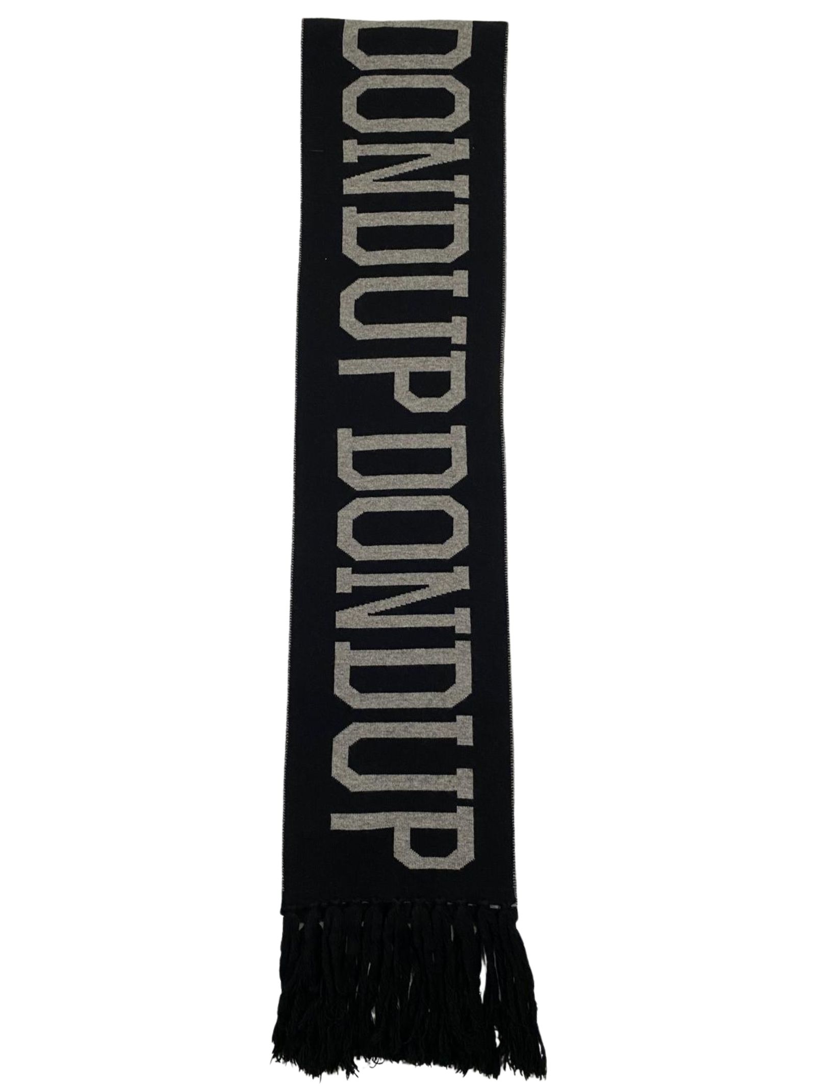 Dondup Kids sciarpa di colore nero/grigio, realizzata interamente a maglia, logo su entrambi i lati, design rettangolare. Composizione: 47% Lana 30% viscosa 15% poliammide 8% cashmere. Made in Italy