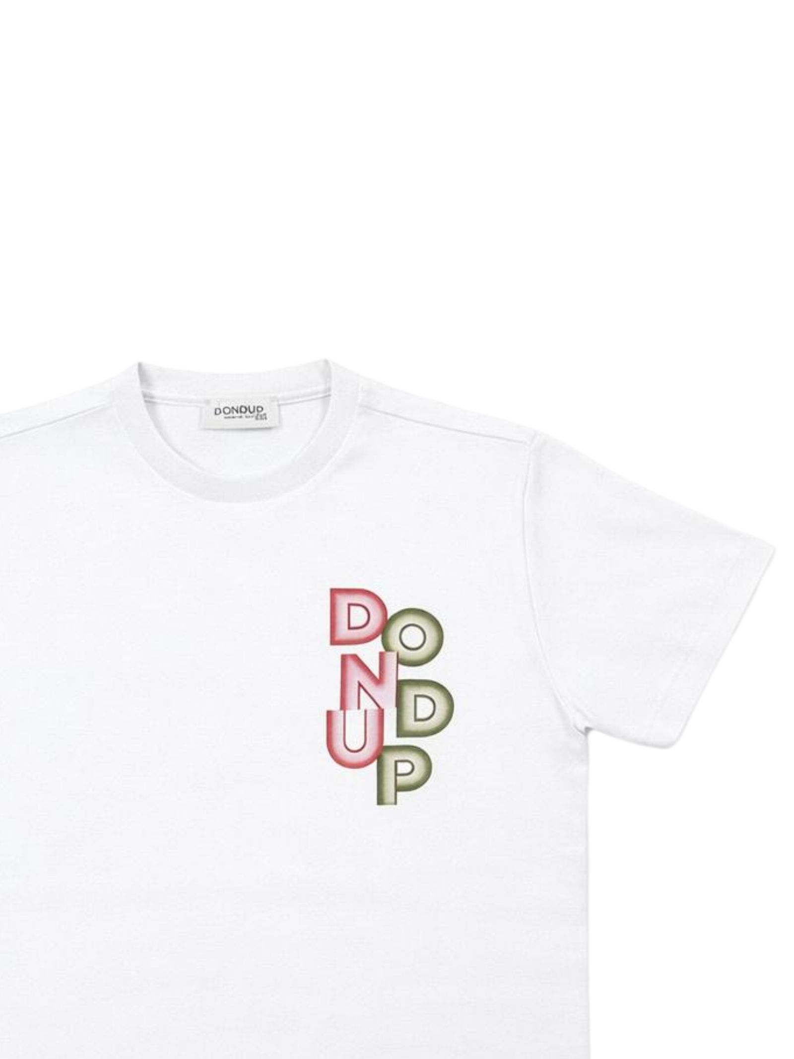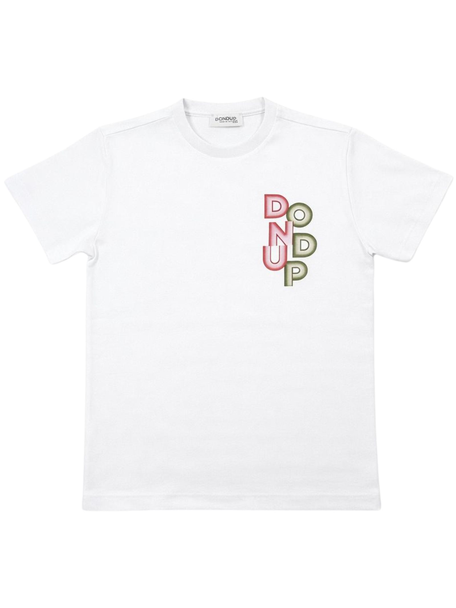 Dondup Kids t-shirt di colore bianco, modello girocollo, mezza manica, stampa sul petto a contrasto con logo, vestibilità regolare, orlo dritto. Composizione: 100% cotone. Made in Italy