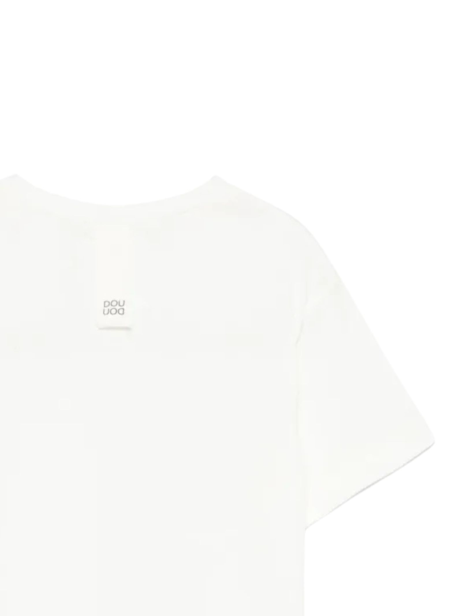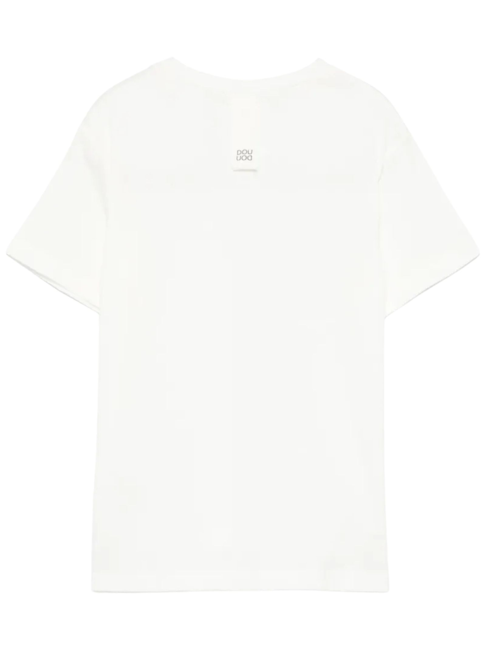 Dou Dou Kids t-shirt di colore bianco, modello girocollo, mezze maniche, patch con logo sul retro, orlo dritto, vestibilità regolare. Composizione: 100% cotone