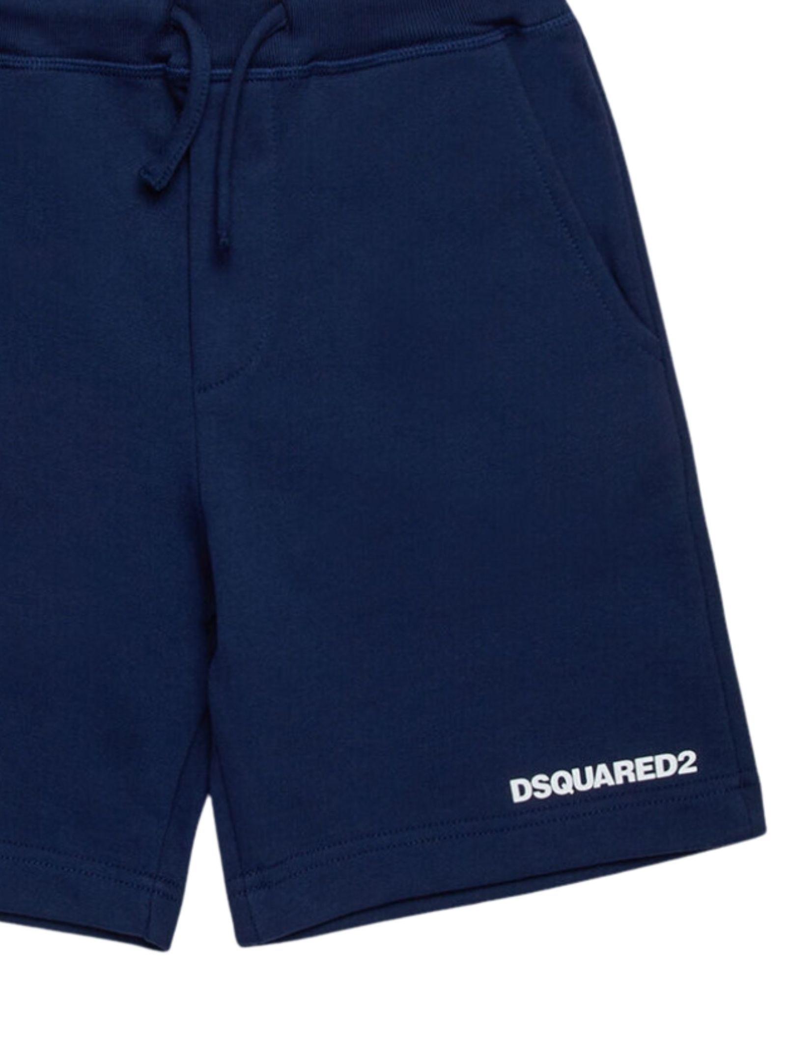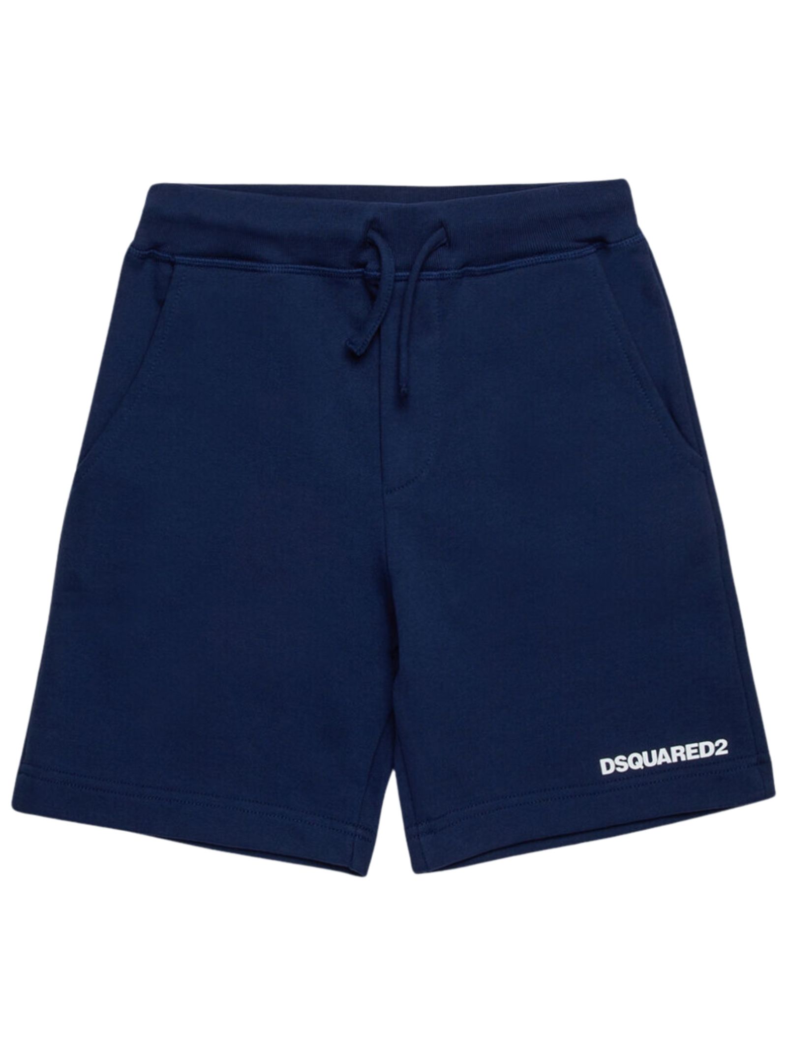Dsquared2 Kids bermuda di colore blu, due tasche laterali a filo, fascia elastica in vita con coulisse, stampa logo a contrasto bianco, vestibilità regolare. Composizione: 100% cotone
