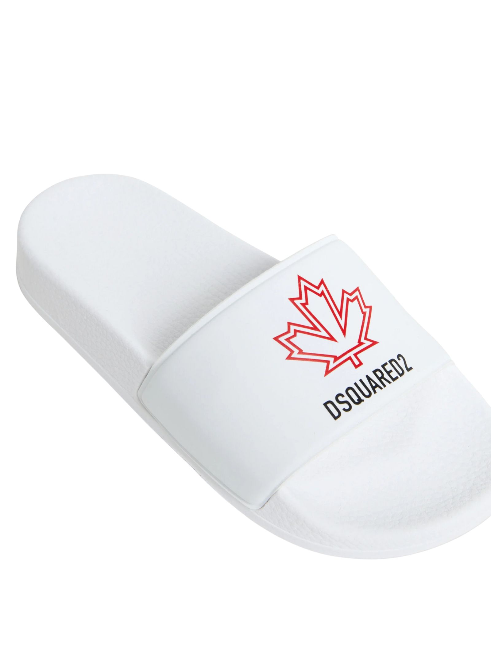 Dsquared2 Kids ciabatte slides di colore bianco, punta aperta, fascia con logo a contrasto rosso/nero, design slip-on, plantare sagomato e suola piatta in gomma. Materiale: 100% PVC. Made in Italy