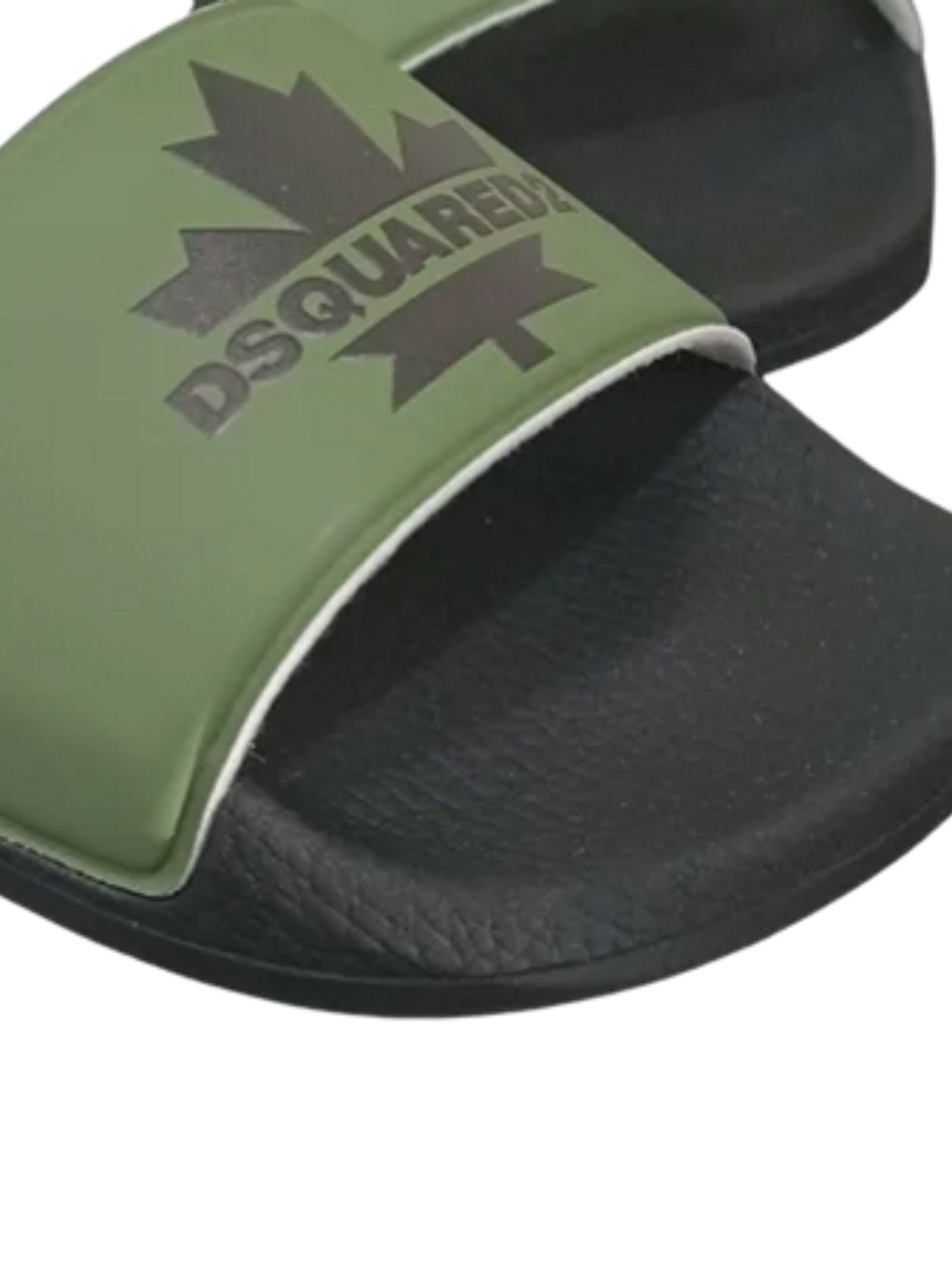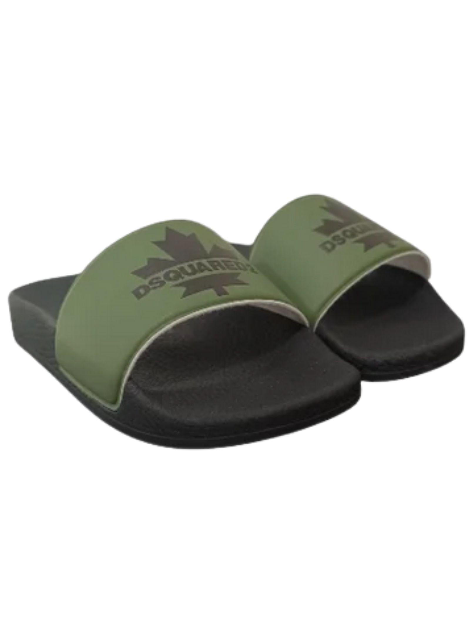 Dsquared2 Kids ciabatte slides di colore verde, punta aperta, fascia con logo a contrasto nero, design slip-on, plantare sagomato e suola piatta in gomma. Materiale: 100% PVC. Made in Italy