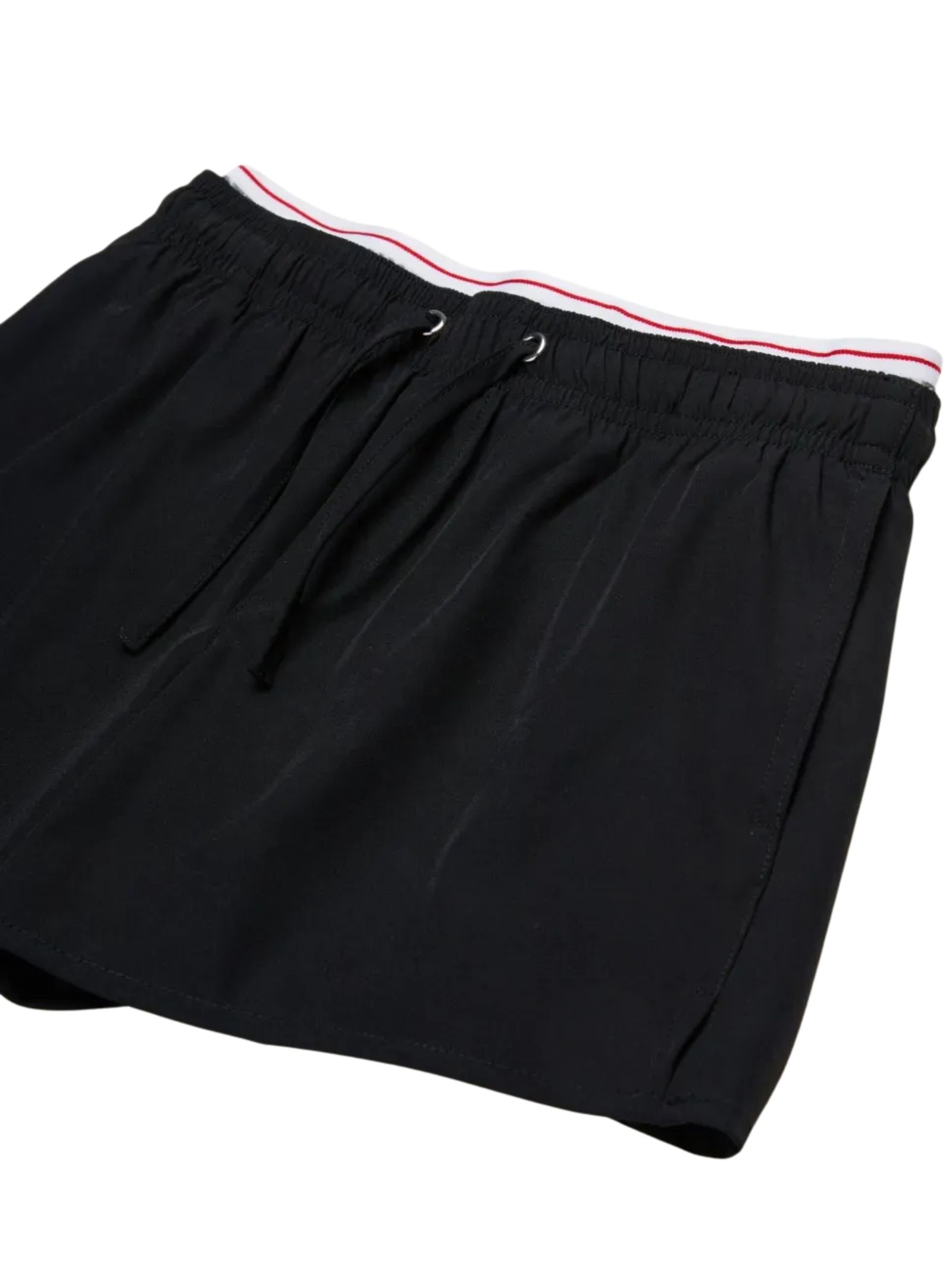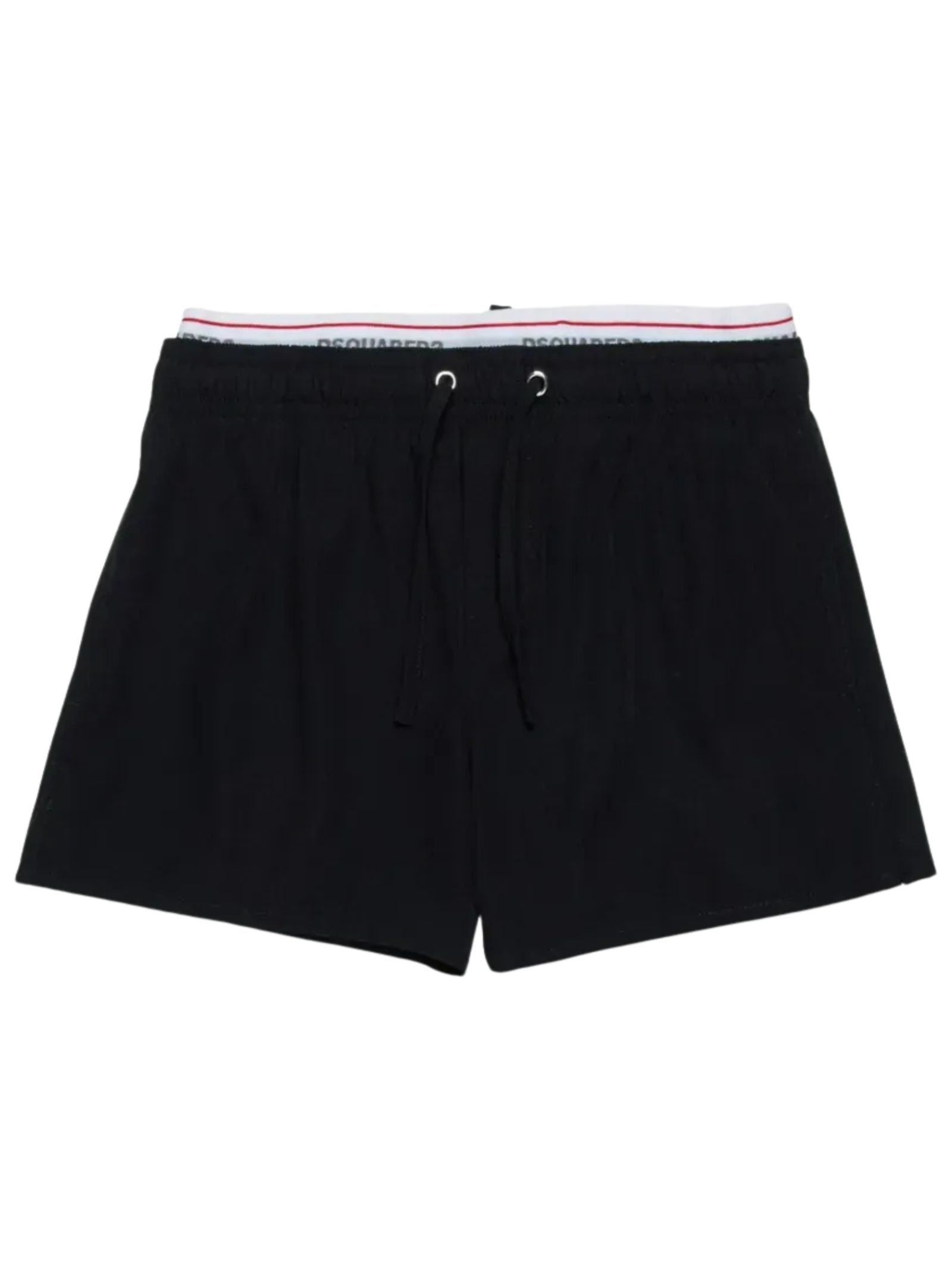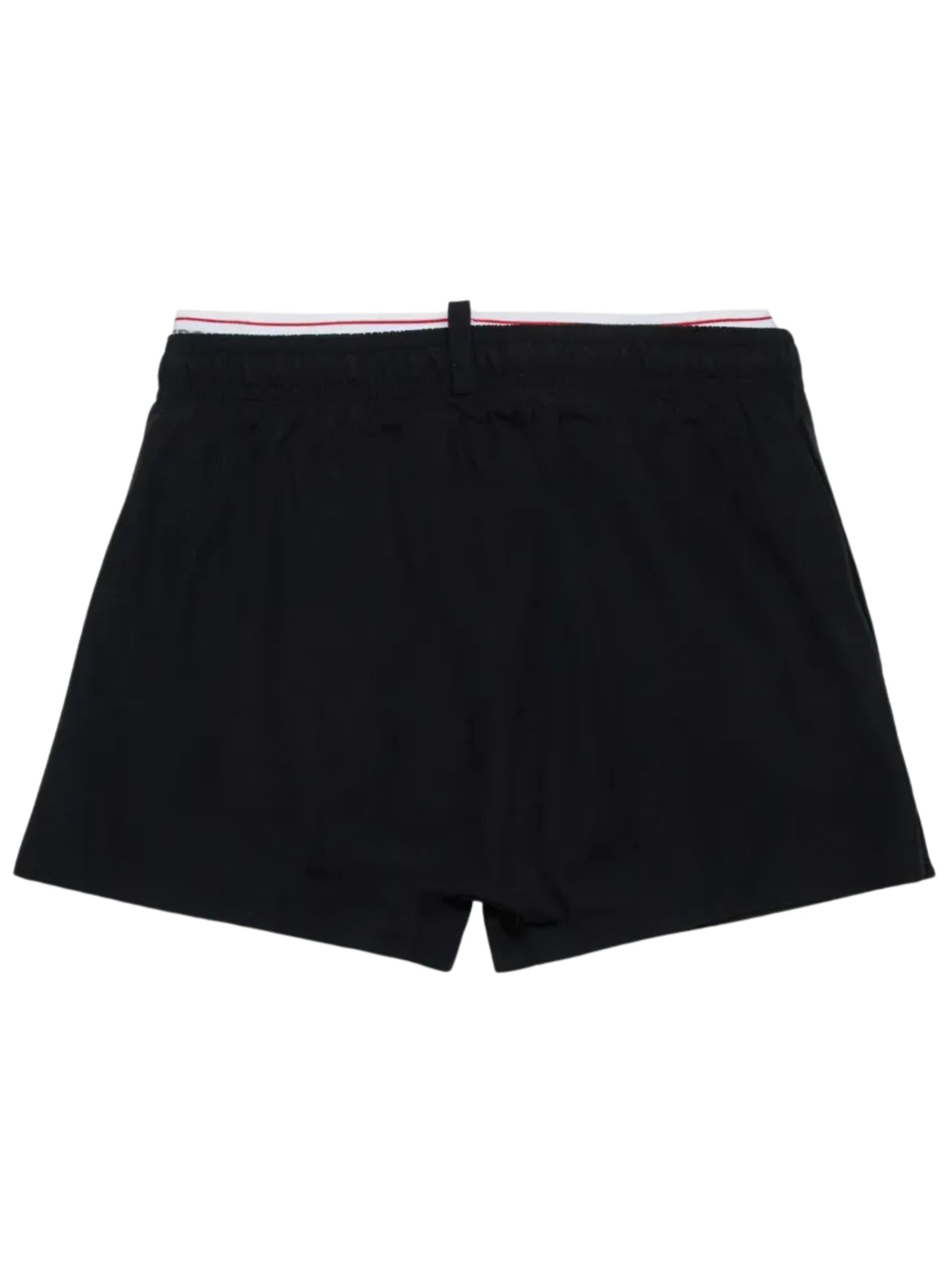 Dsquared Kids costume da bagno di colore nero, modello boxer, elastico in vita con coulisse e banda con logo a contrasto, due tasche laterali, slip rete interna. Composizione: 90% nylon 10% elastan