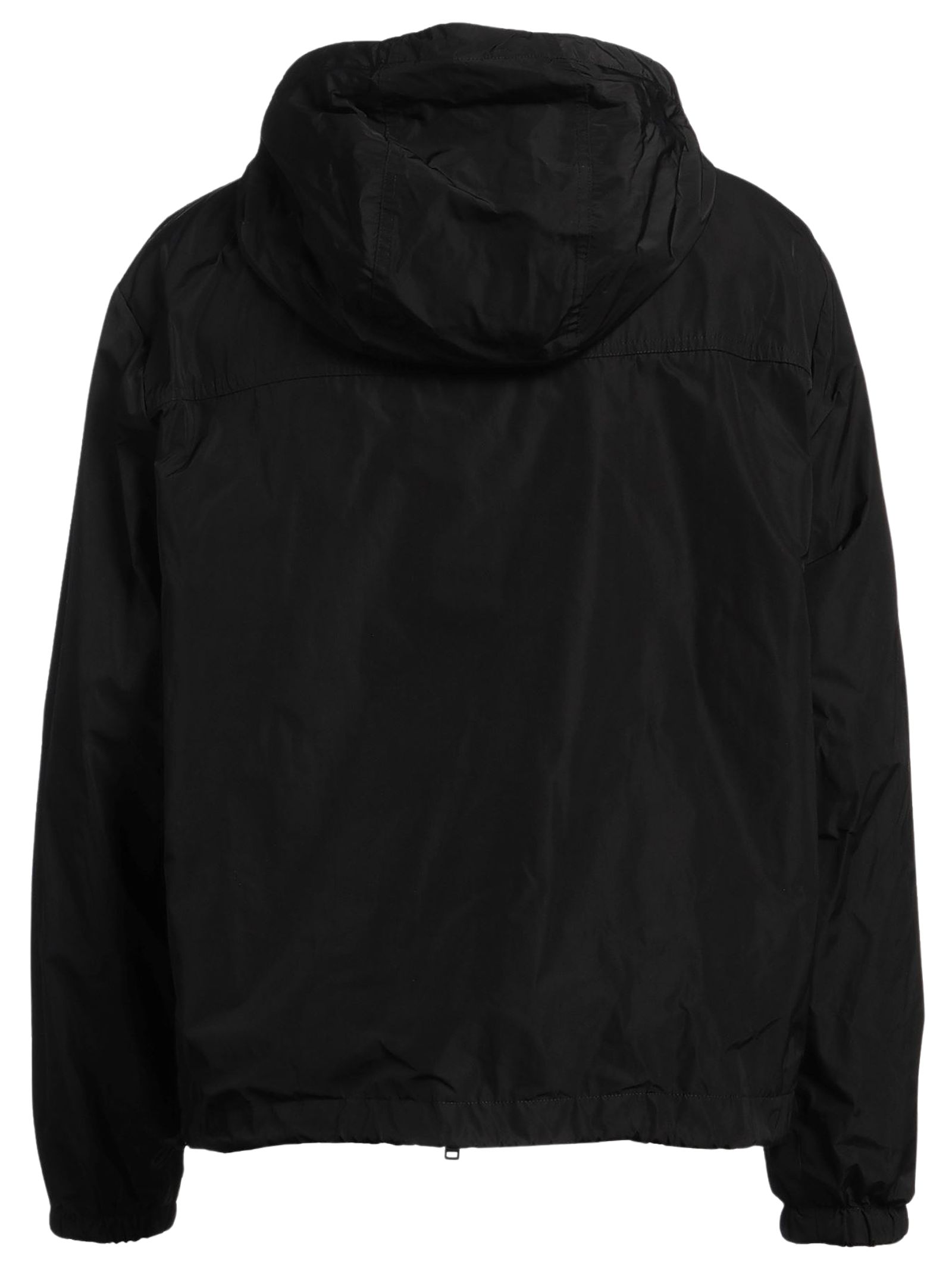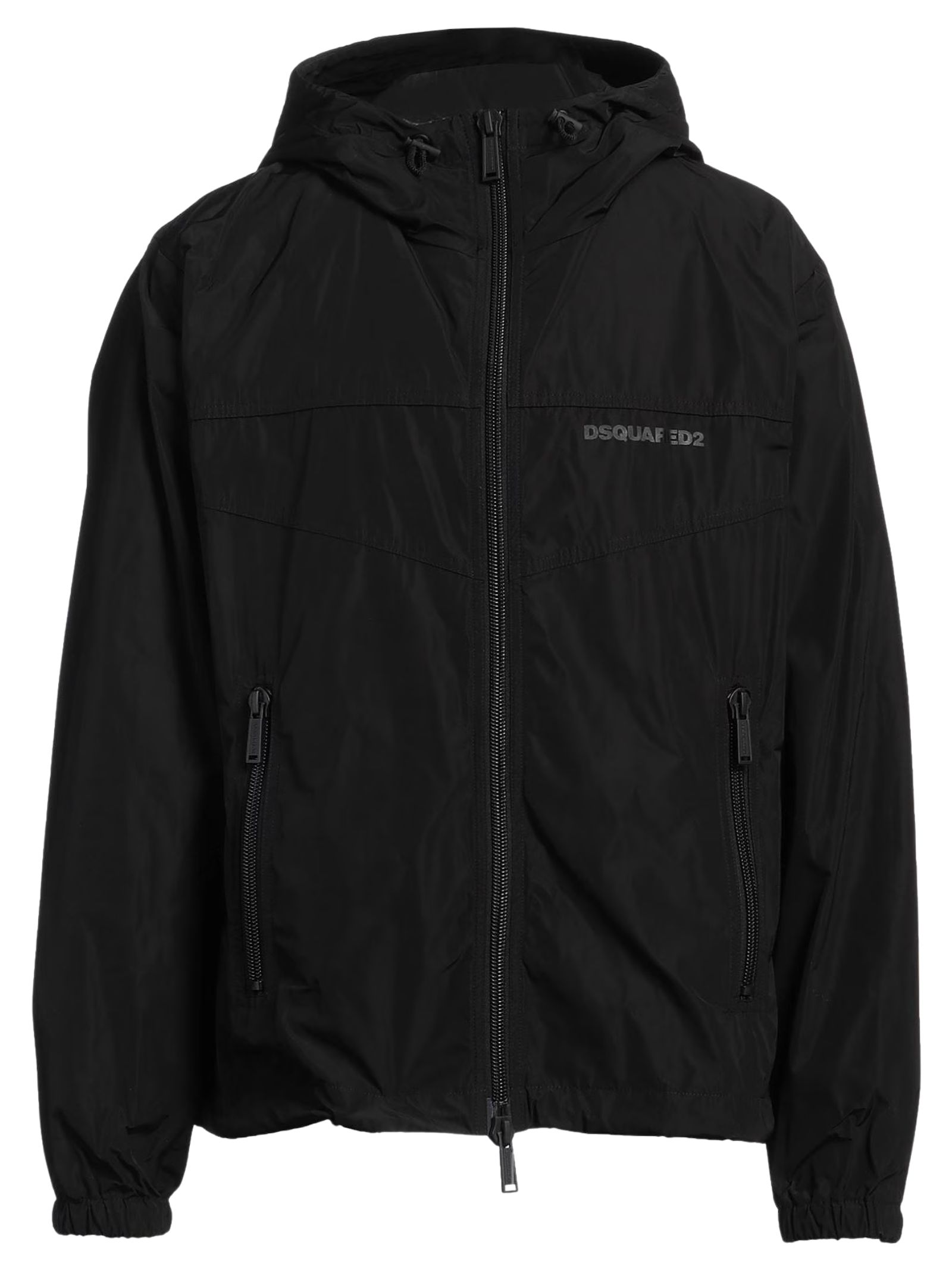 Dsquared2 Kids giubbino di colore nero, antivento, tessuto tecnico, logo sul petto, collo con cappuccio, maniche lunghe, interno foderato, chiusura con zip, due tasche laterali. Composizione: 98% Cotone 2% Elastan