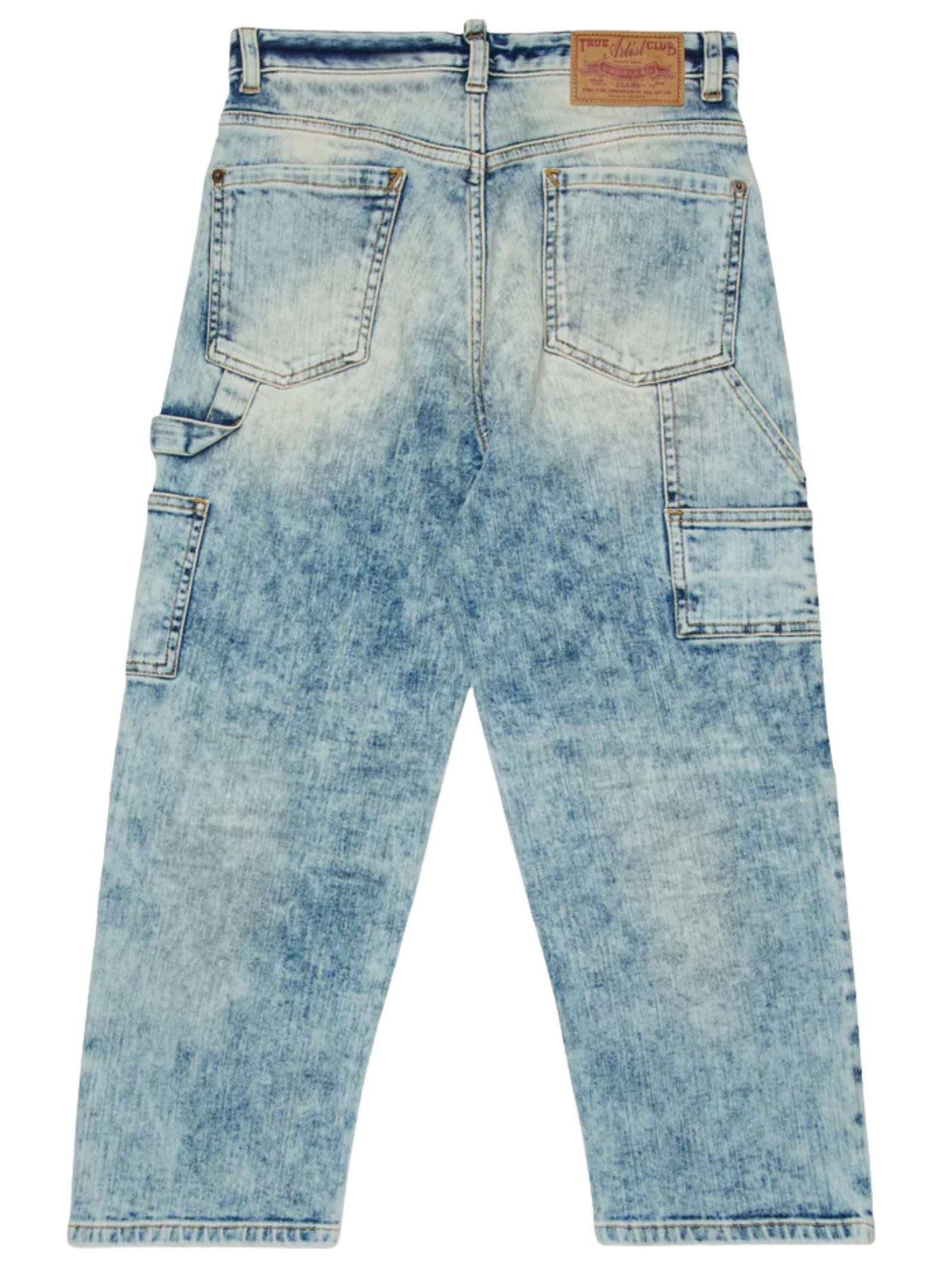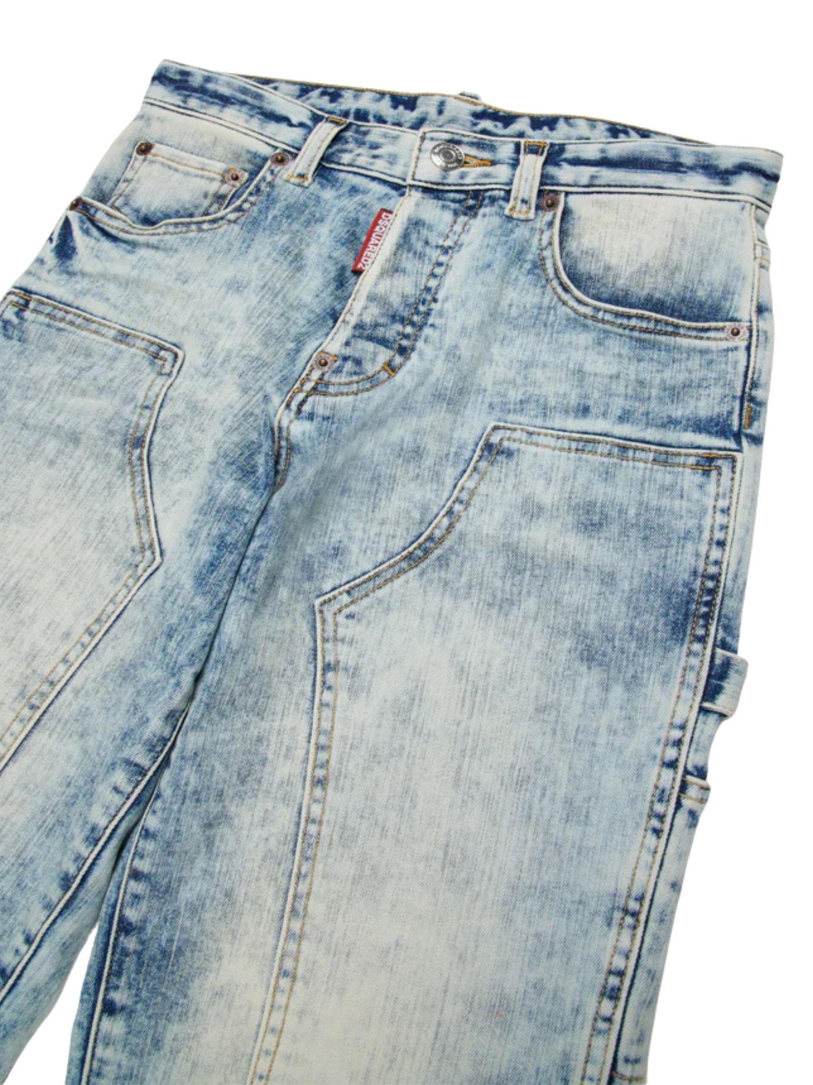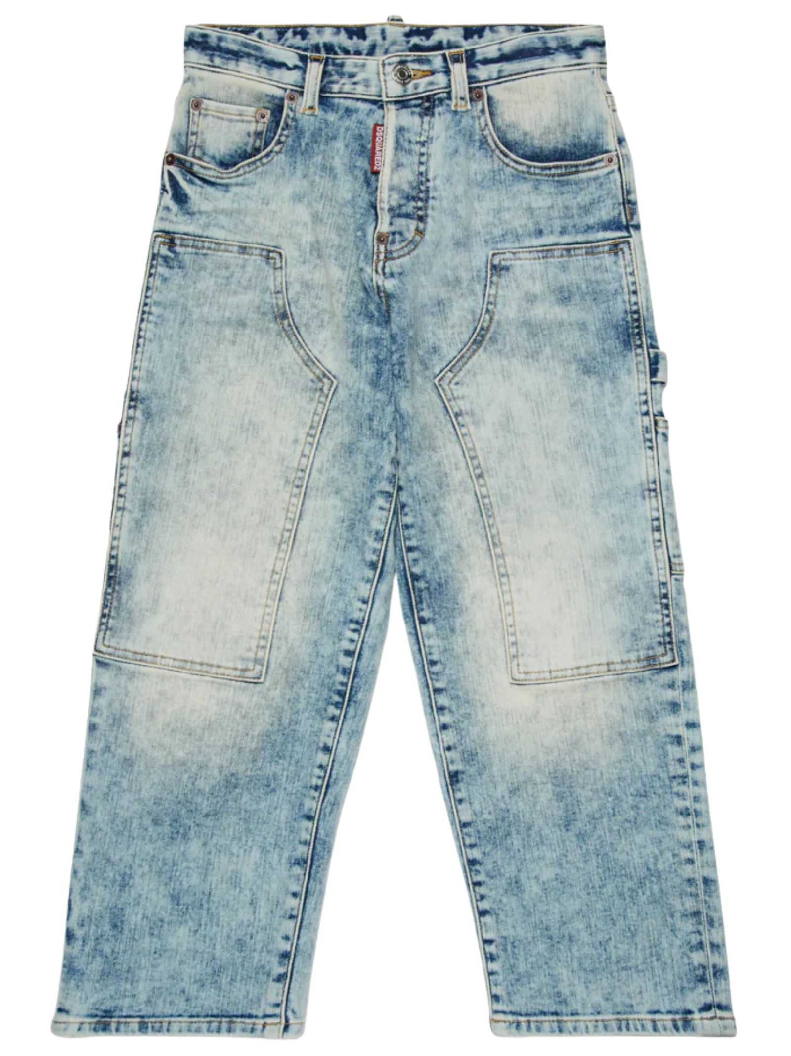 Dsquared Kids jeans realizzato in denim chiaro, modello Loose Jean contraddistinto da un effetto bleached marmorizzato con sfumature e baffature a contrasto cromatico, design caratterizzato da cuciture ergonomiche a vista, Label Dsquared2 applicato sulla patta, vestibilità regolare. Composizione: 99% Cotone 1% Elastan