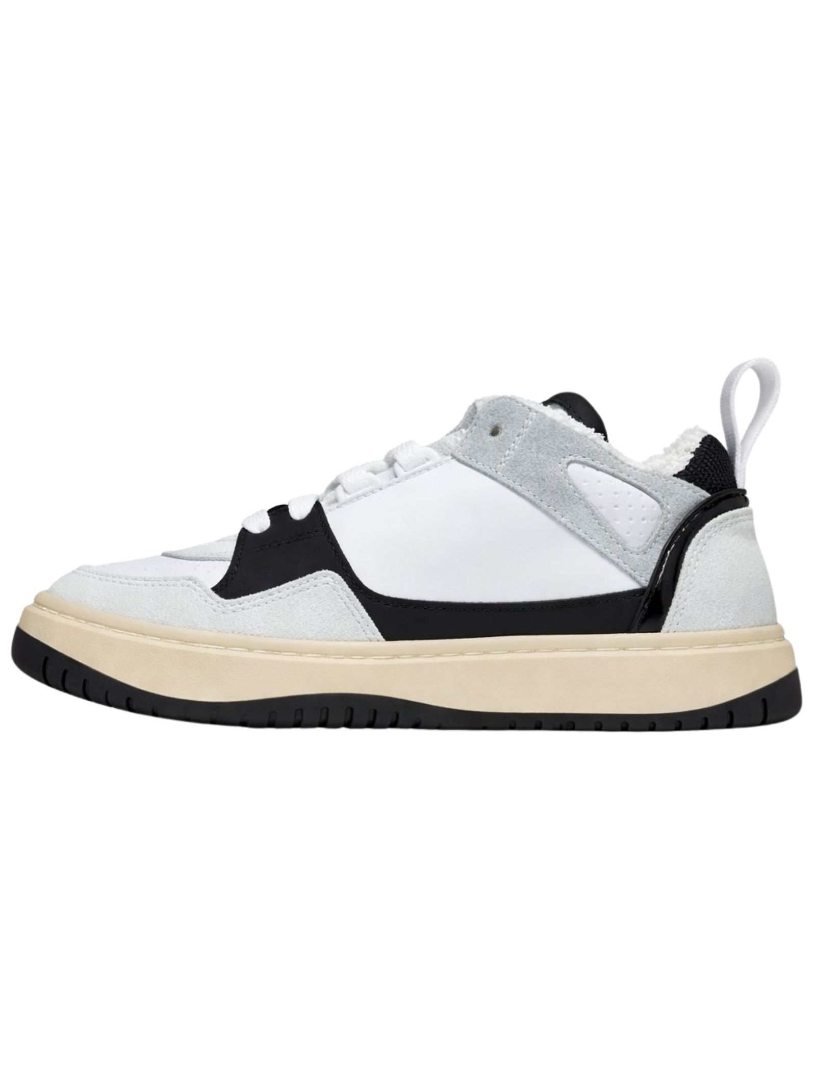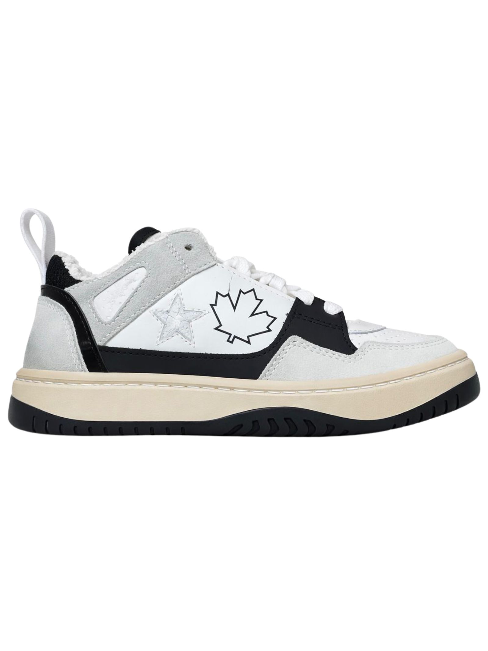 DSQUARED2 Kids scarpe di colore bianco/nero realizzate in pelle, dettagli in pelle scamosciata a contrasto grigio, logo laterale, modello con punta tonda, chiusura frontale con lacci, linguetta con logo, suola in gomma. Made in Italy