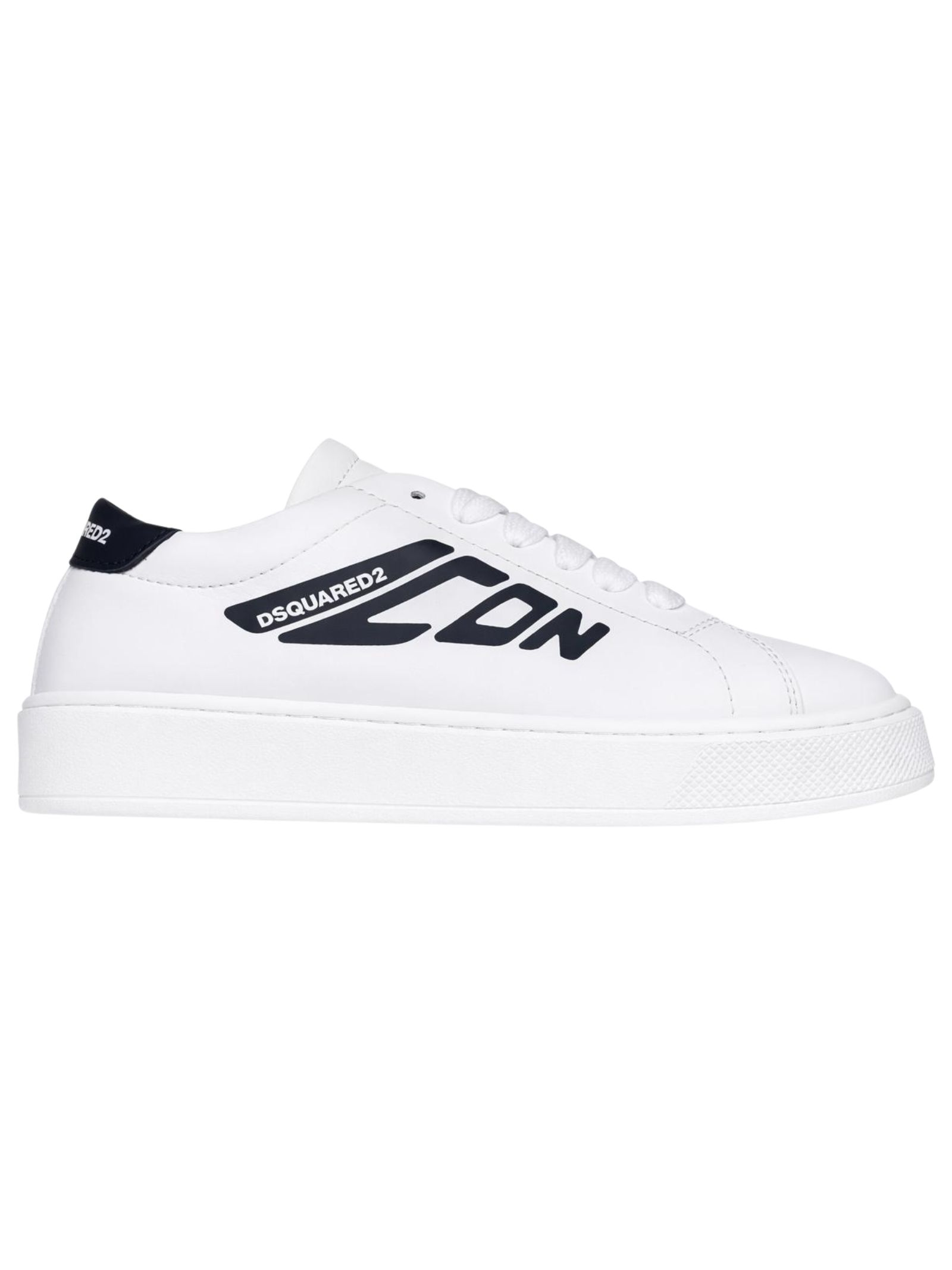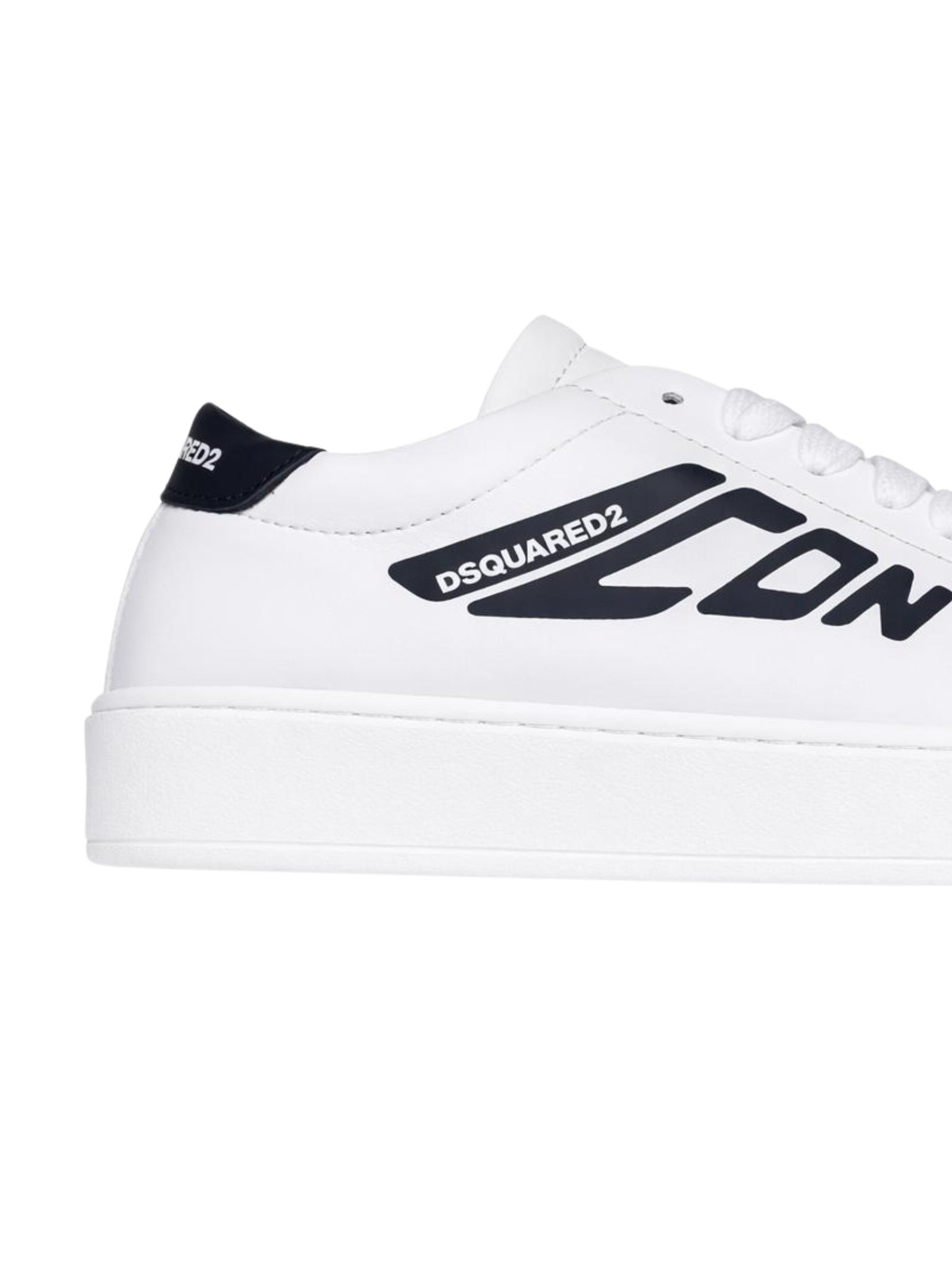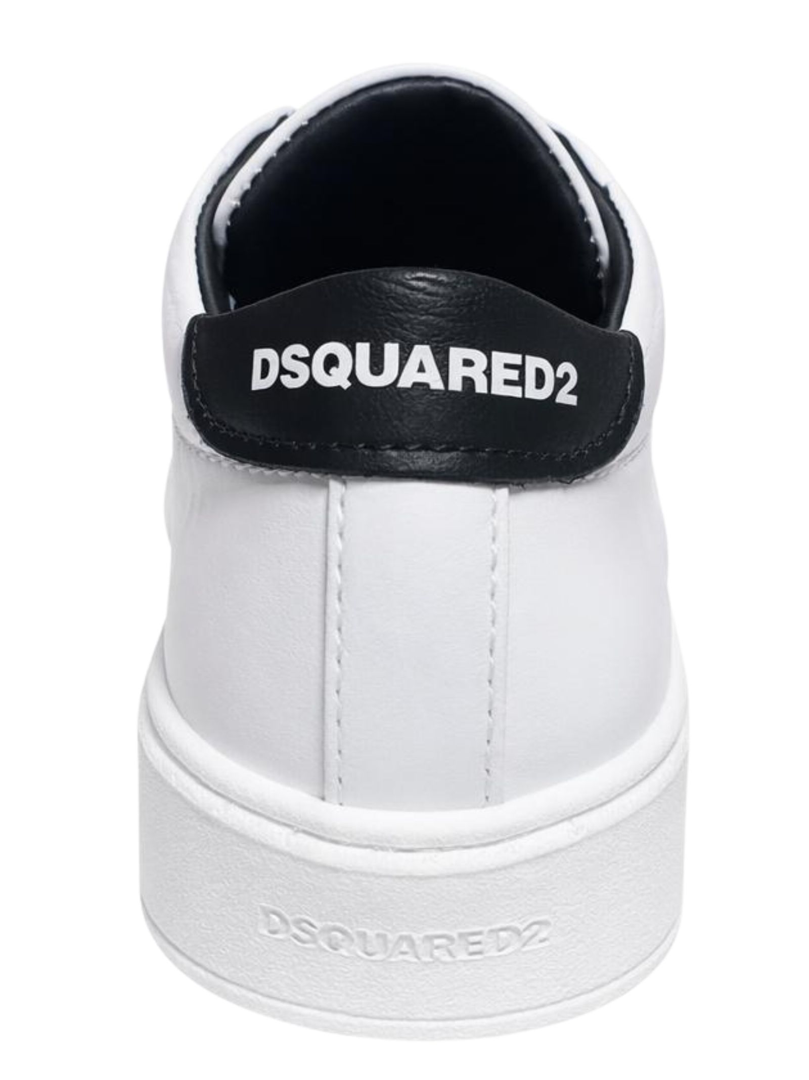 DSQUARED2 Kids scarpe in pelle di colore bianco, logo icon a contrasto nero laterale, modello con punta tonda, chiusura frontale con lacci, linguetta sul tallone con logo, suola in gomma. Esterno: pelle di vitello 100%. Suola: gomma 100%. Made in Italy