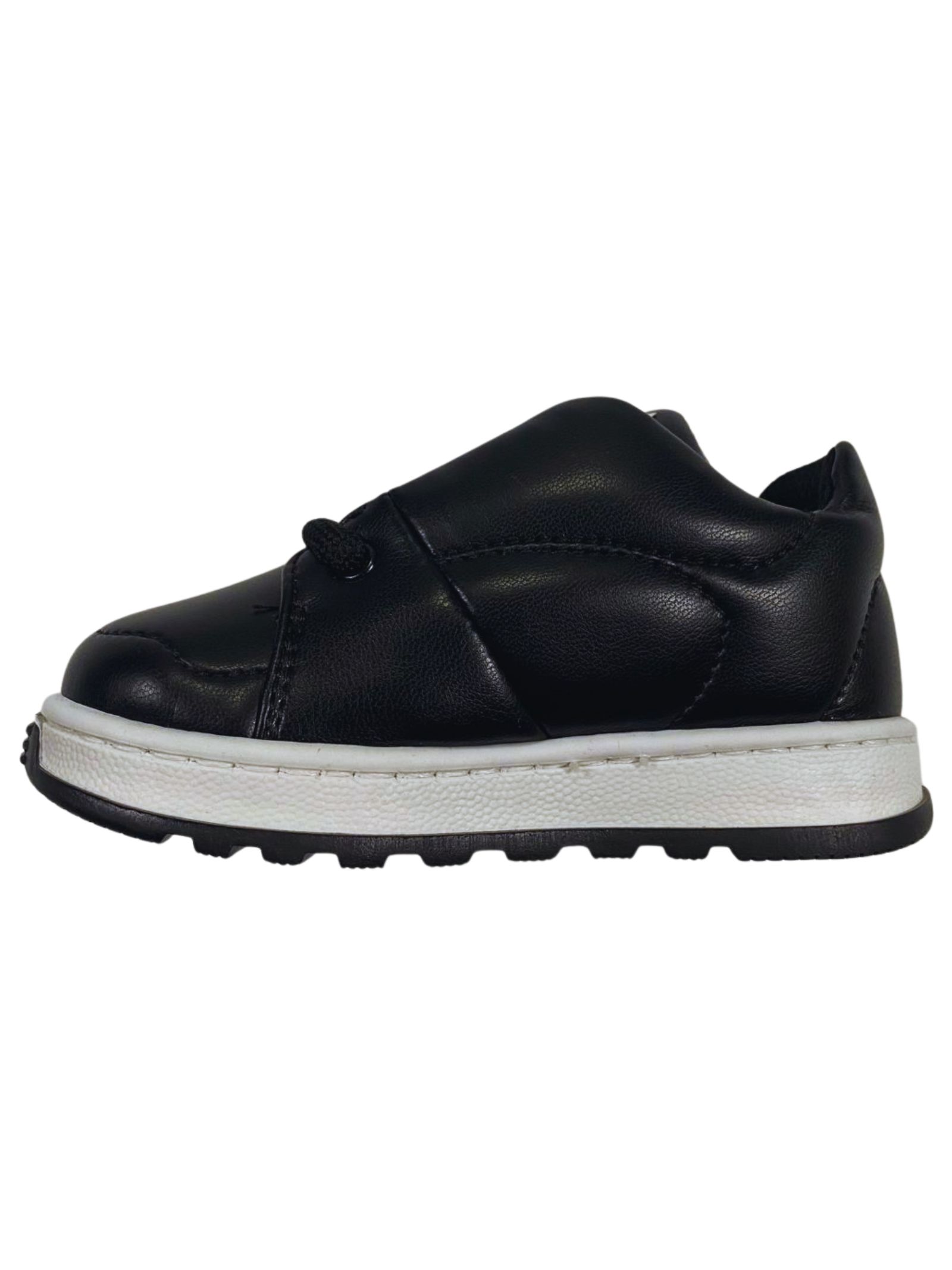 DSQUARED2 Kids scarpe in pelle di colore nero, modello con punta tonda, chiusura frontale con lacci, design imbottito, stampa foglia e stampa logo a contrasto bianco, suola in gomma e soletta interna in pelle. Fodera: pelle di vitello 100% Esterno: pelle di vitello 100% Suola: gomma 100%. Made in Italy