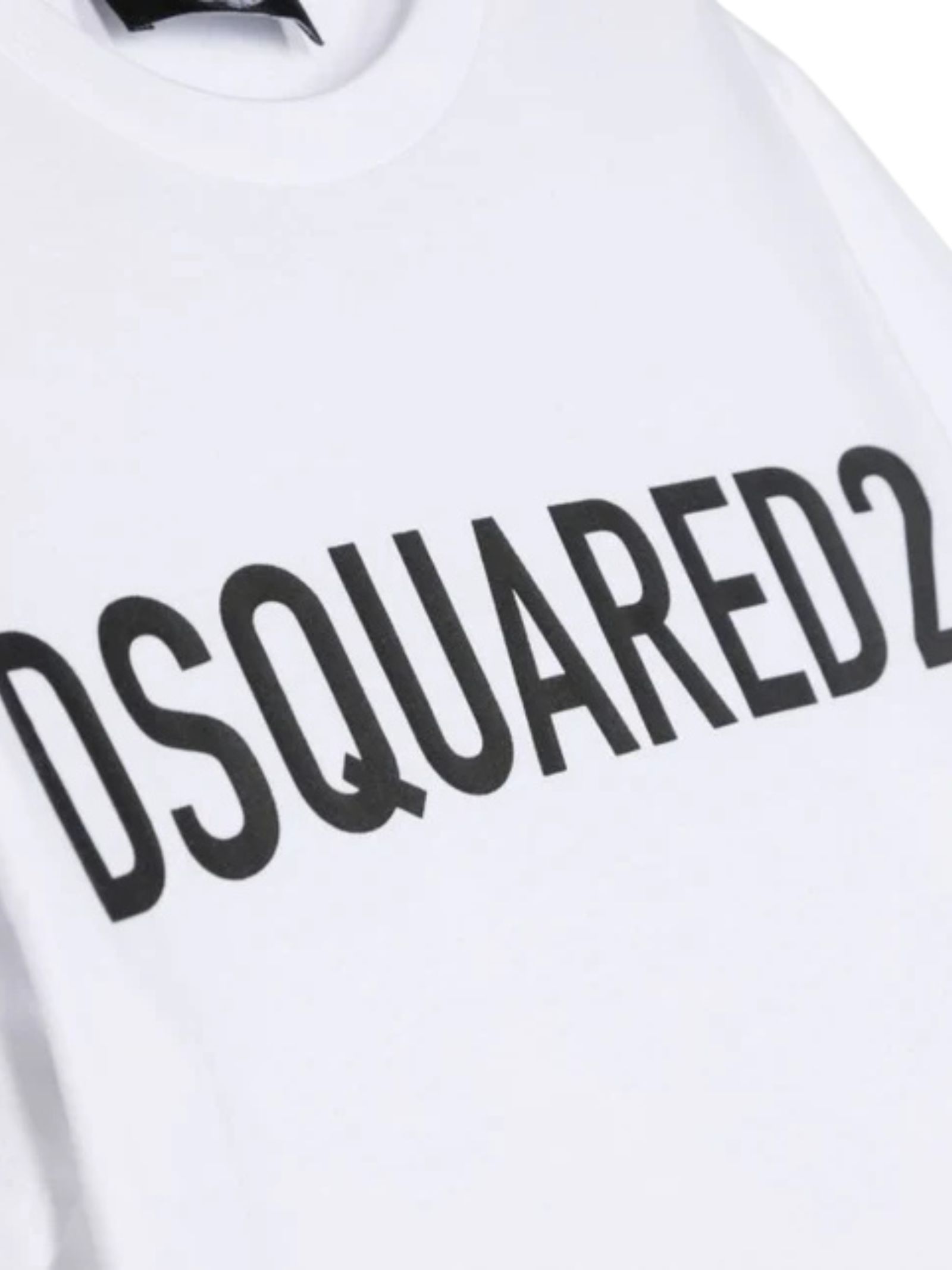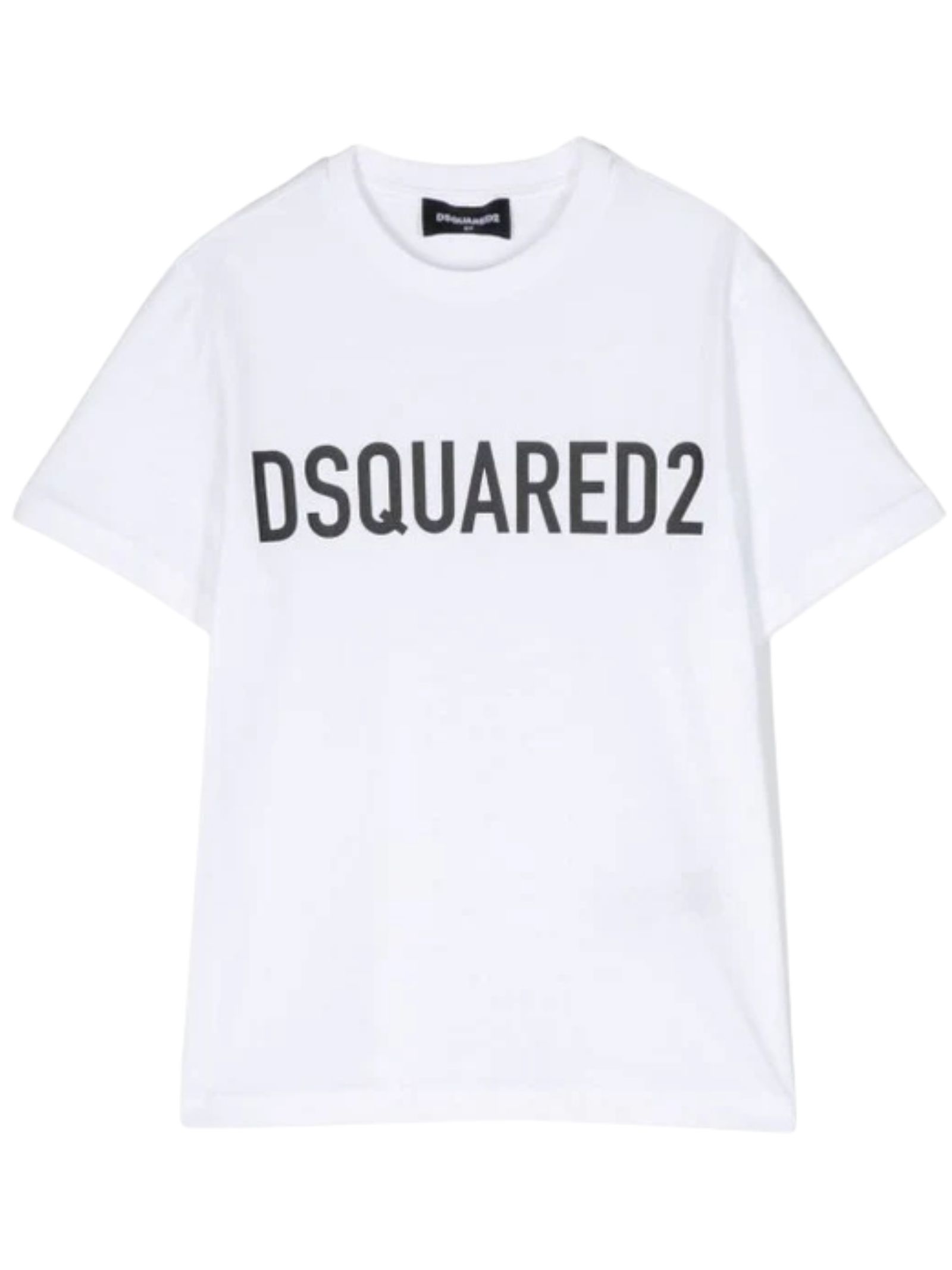 Dsquared2 Kids t-shirt di colore bianco, modello girocollo, mezza manica, stampa logo a contrasto nero, vestibilità regolare. Composizione: 100% cotone