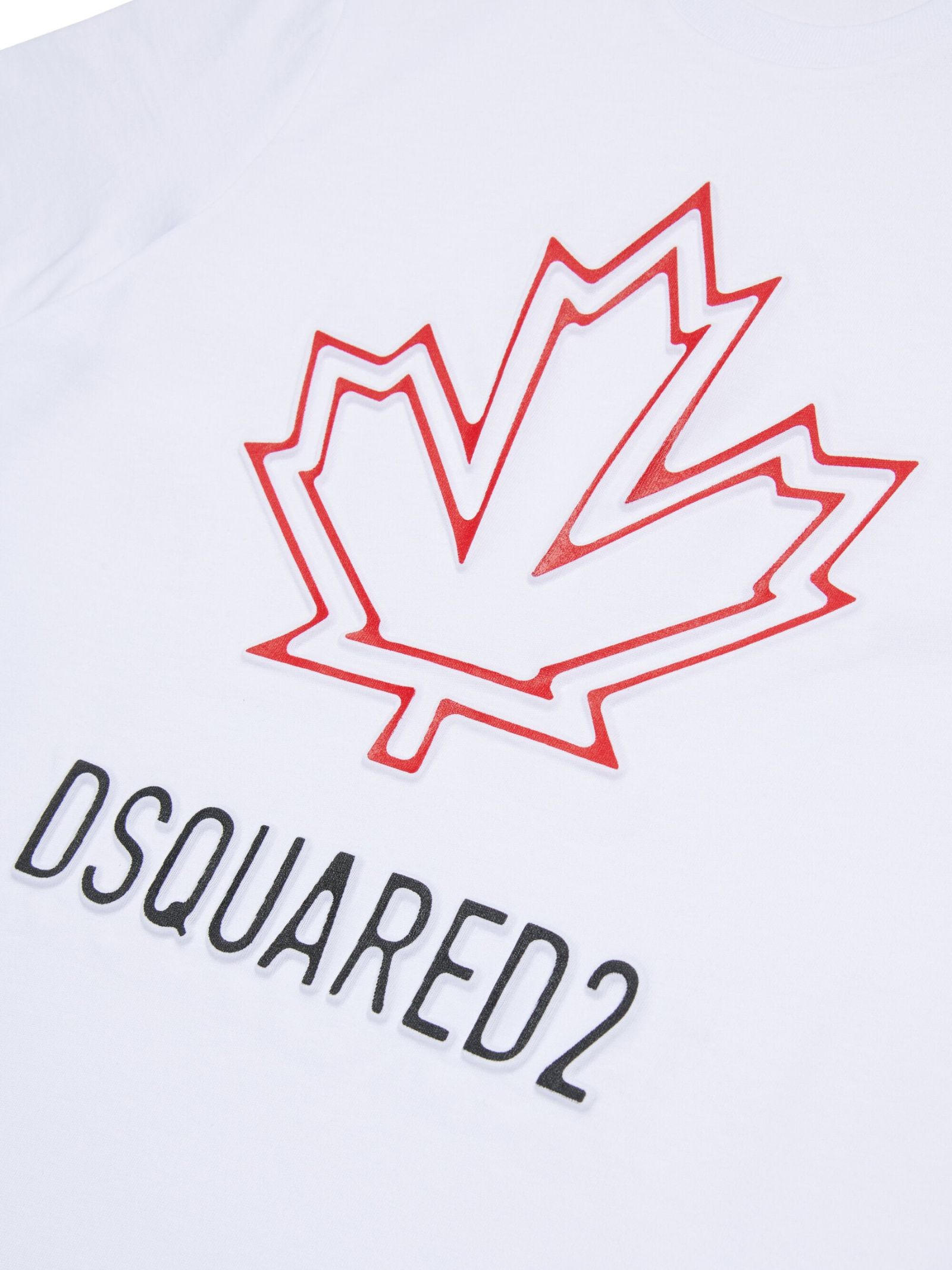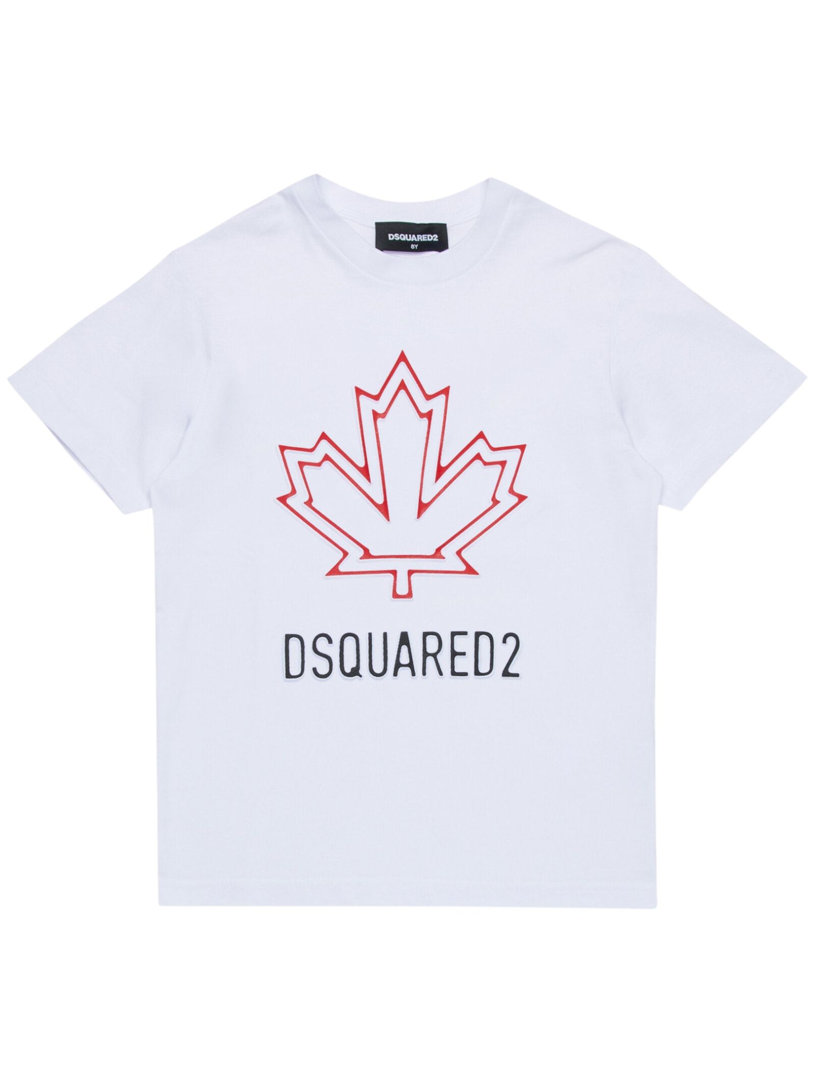Dsquared2 Kids t-shirt di colore bianco, modello girocollo, mezza manica, stampa centrale logo a contrasto in rilievo, vestibilità regolare. Composizione: 100% cotone