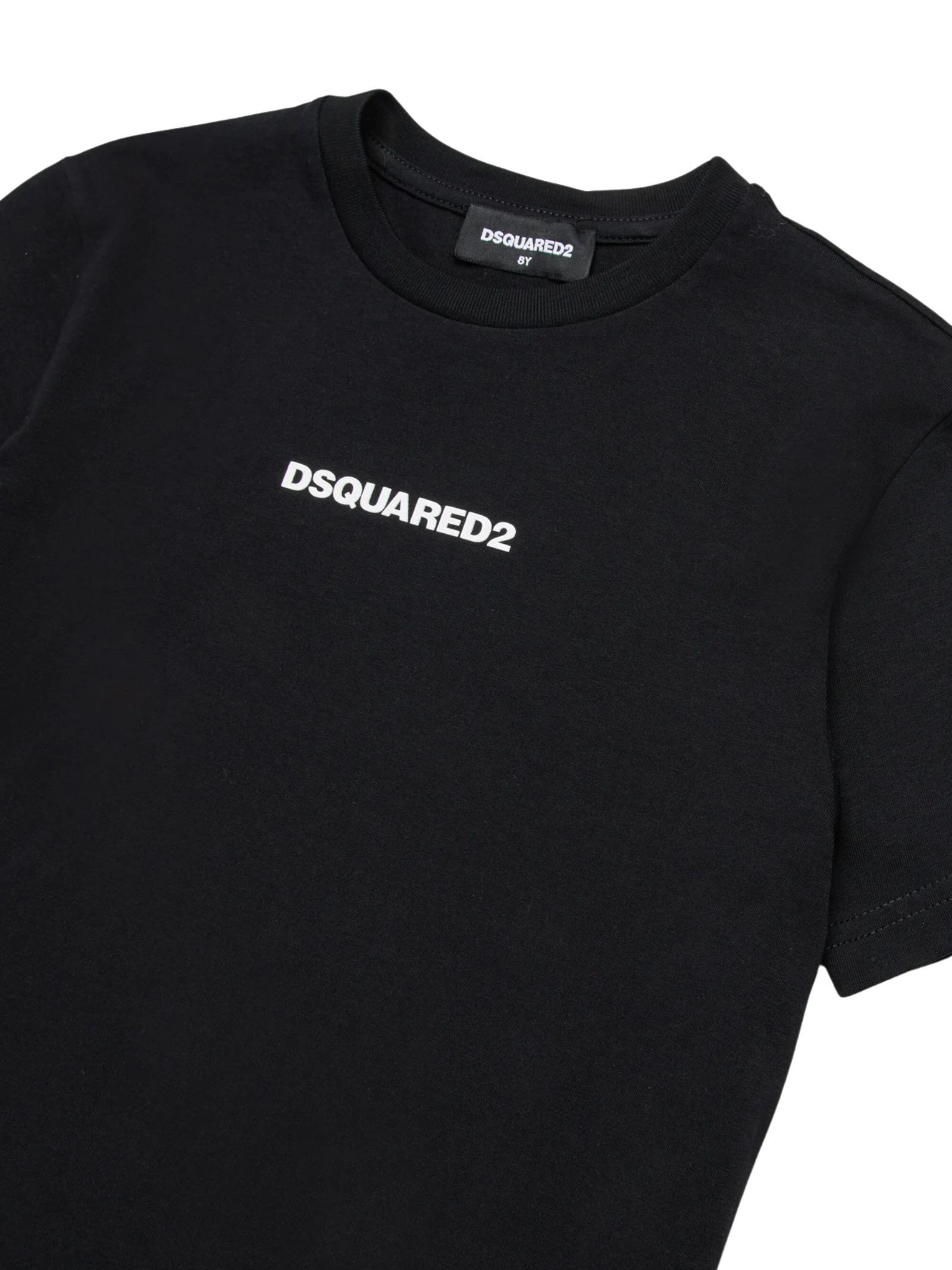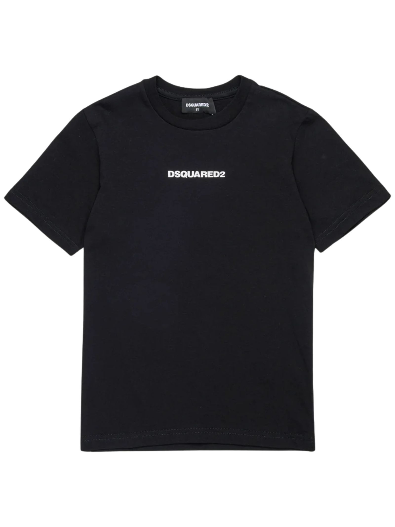 Dsquared2 Kids t-shirt di colore nero, modello girocollo, mezza manica, stampa centrale logo gommato a contrasto bianco, vestibilità regolare. Composizione: 100% cotone