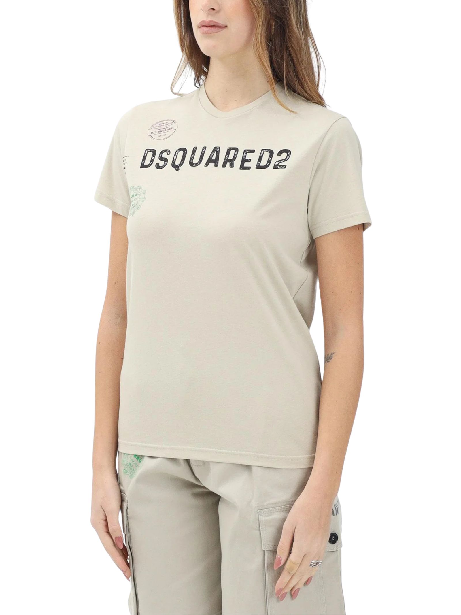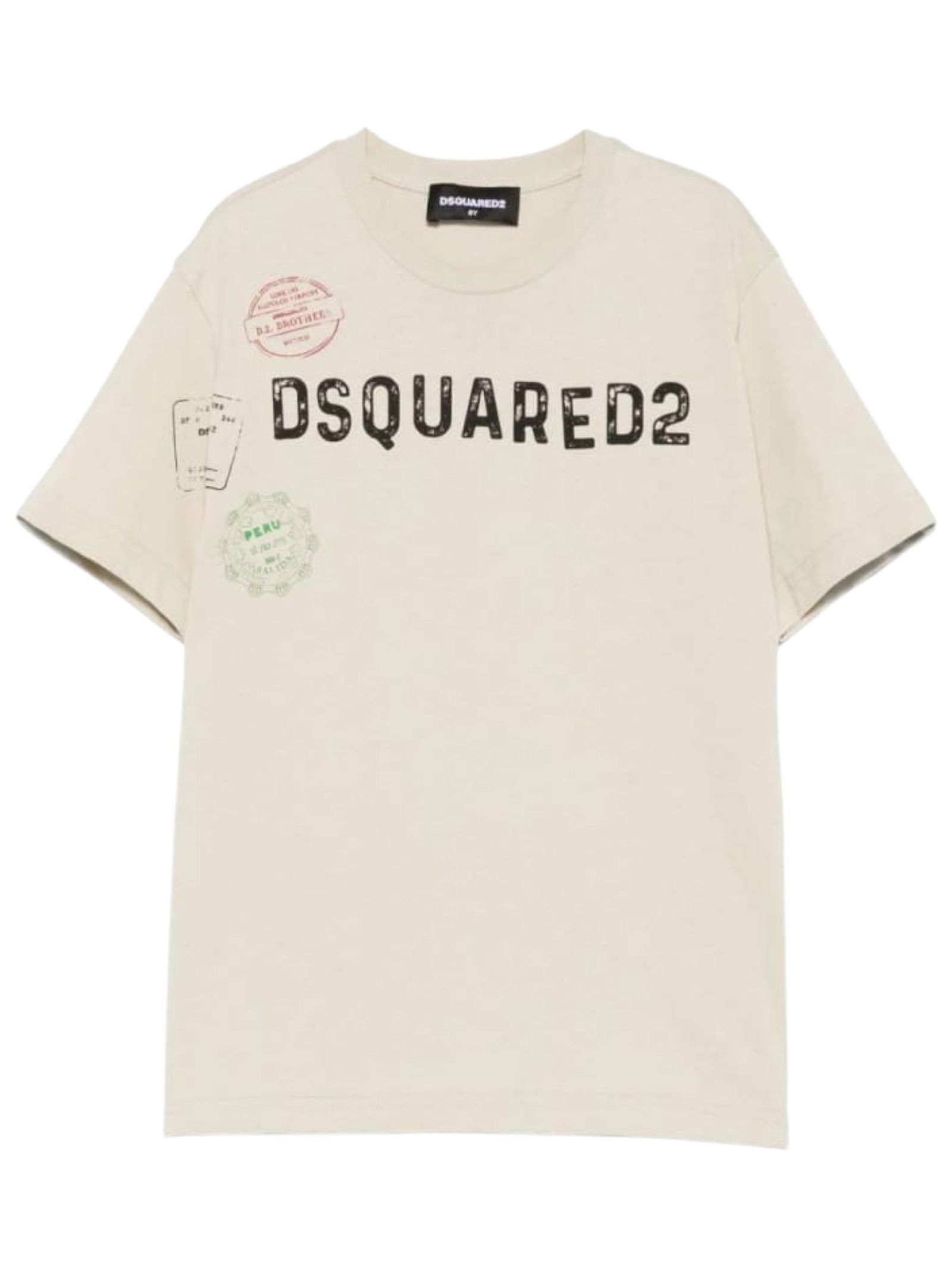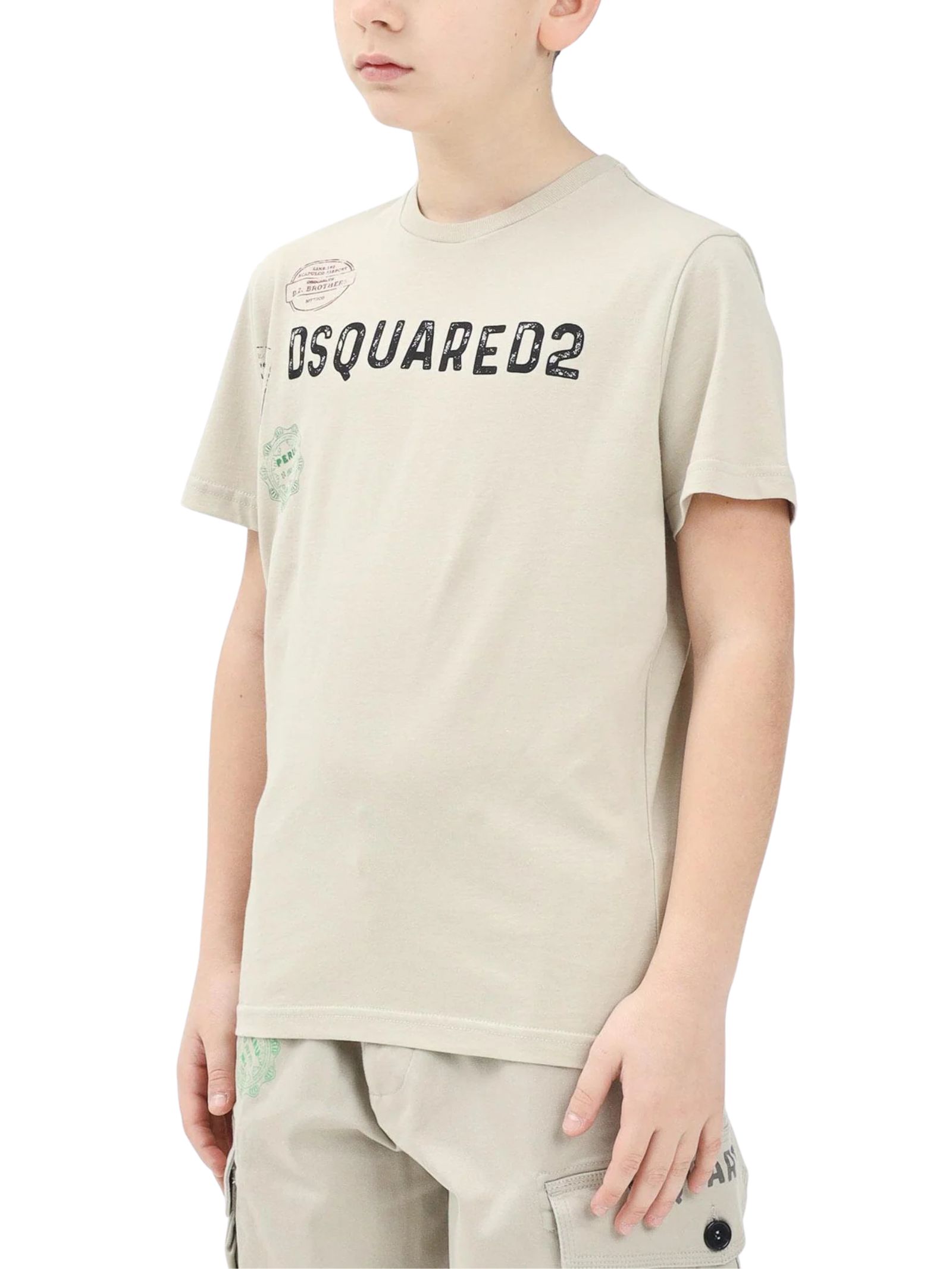 Dsquared2 Kids t-shirt di colore sabbia, modello girocollo, mezza manica, stampa con logo a contrasto, vestibilità regolare. Composizione: 100% cotone