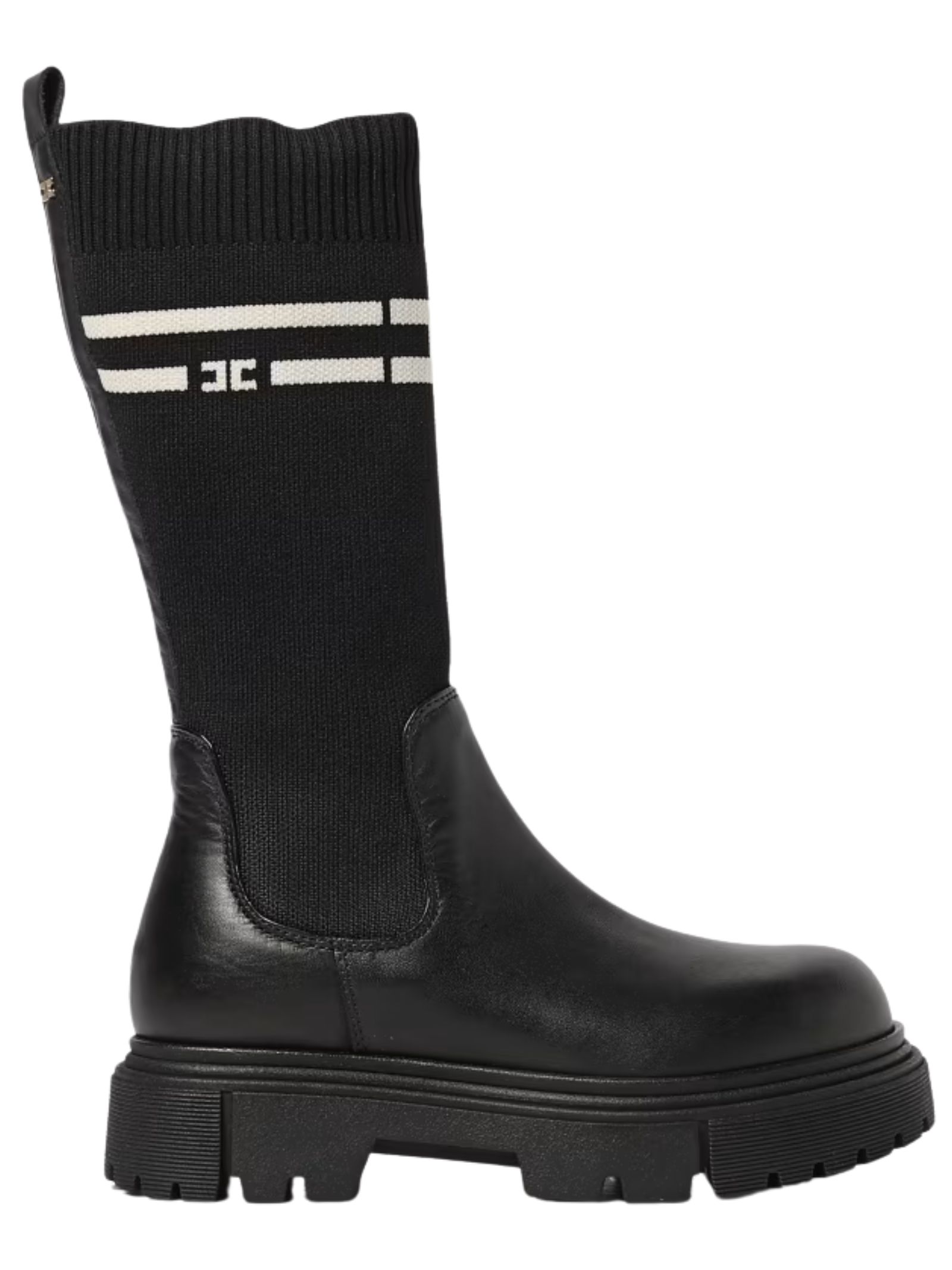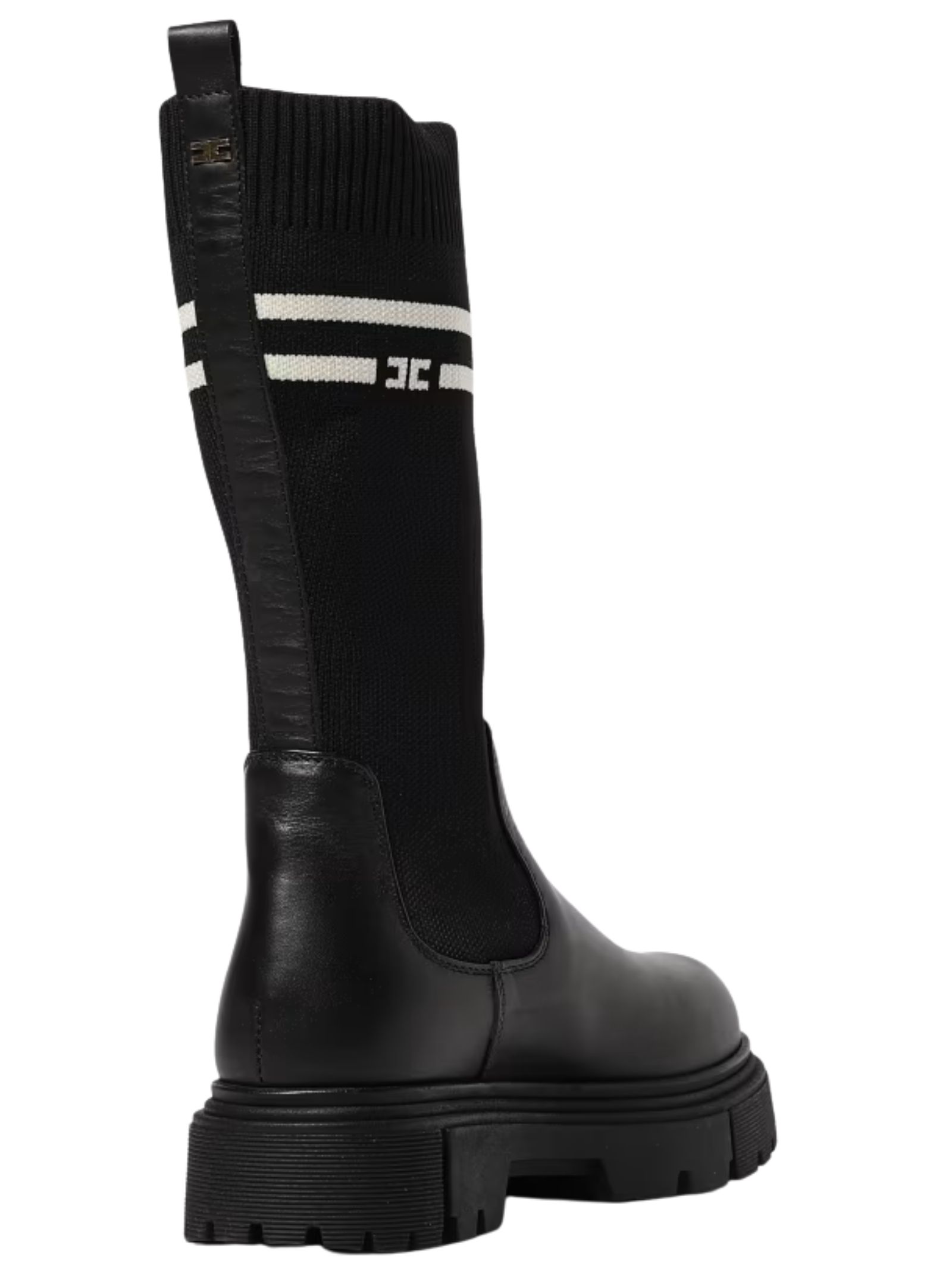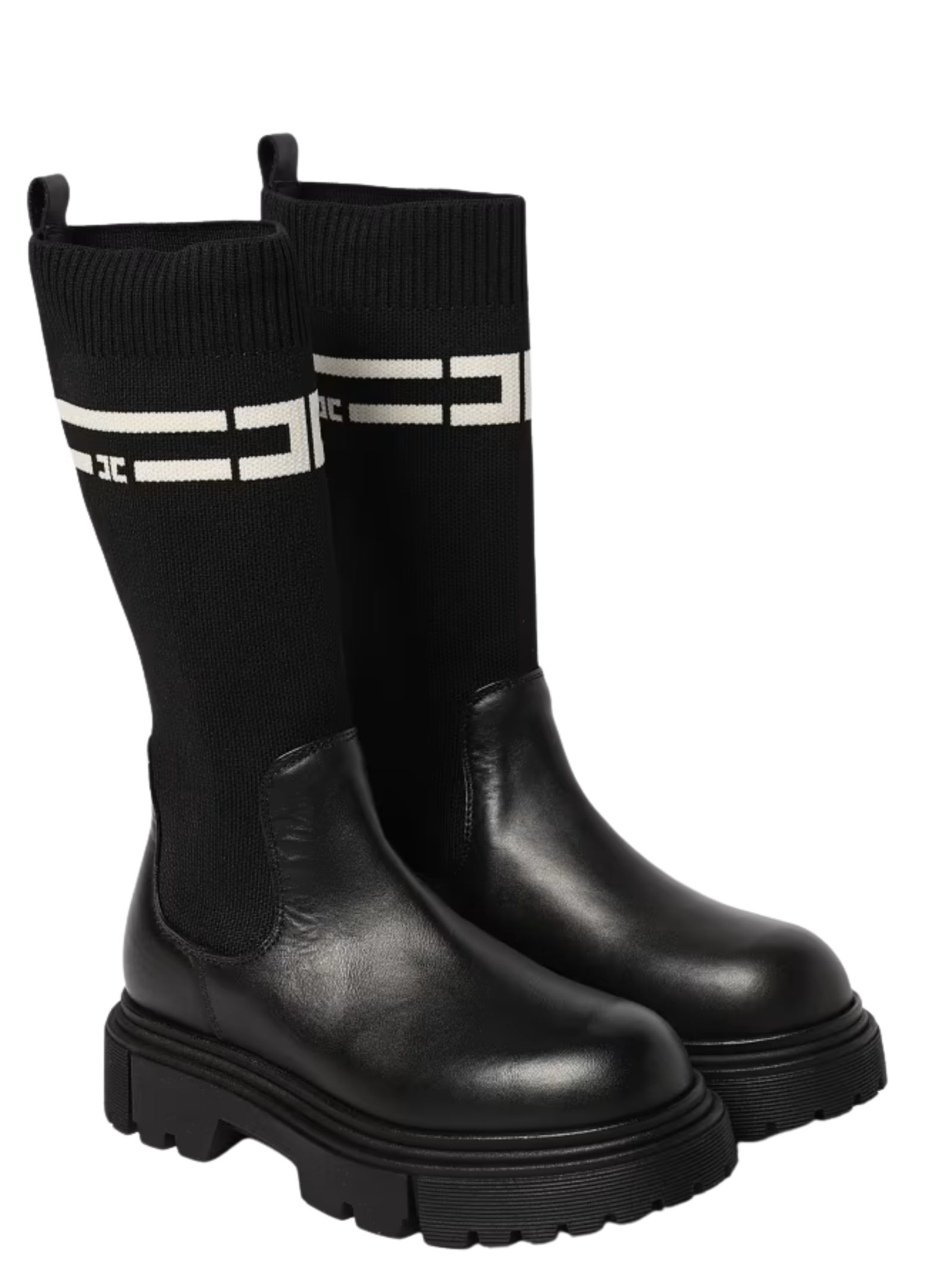 Elisabetta Franchi Kids anfibi di colore nero, realizzati in vera pelle, modello con punta tonda, inserto in tessuto elastico logato, controtallone rinforzato, fodera in pelle, zip laterale, suola chunky in gomma. Made in Italy