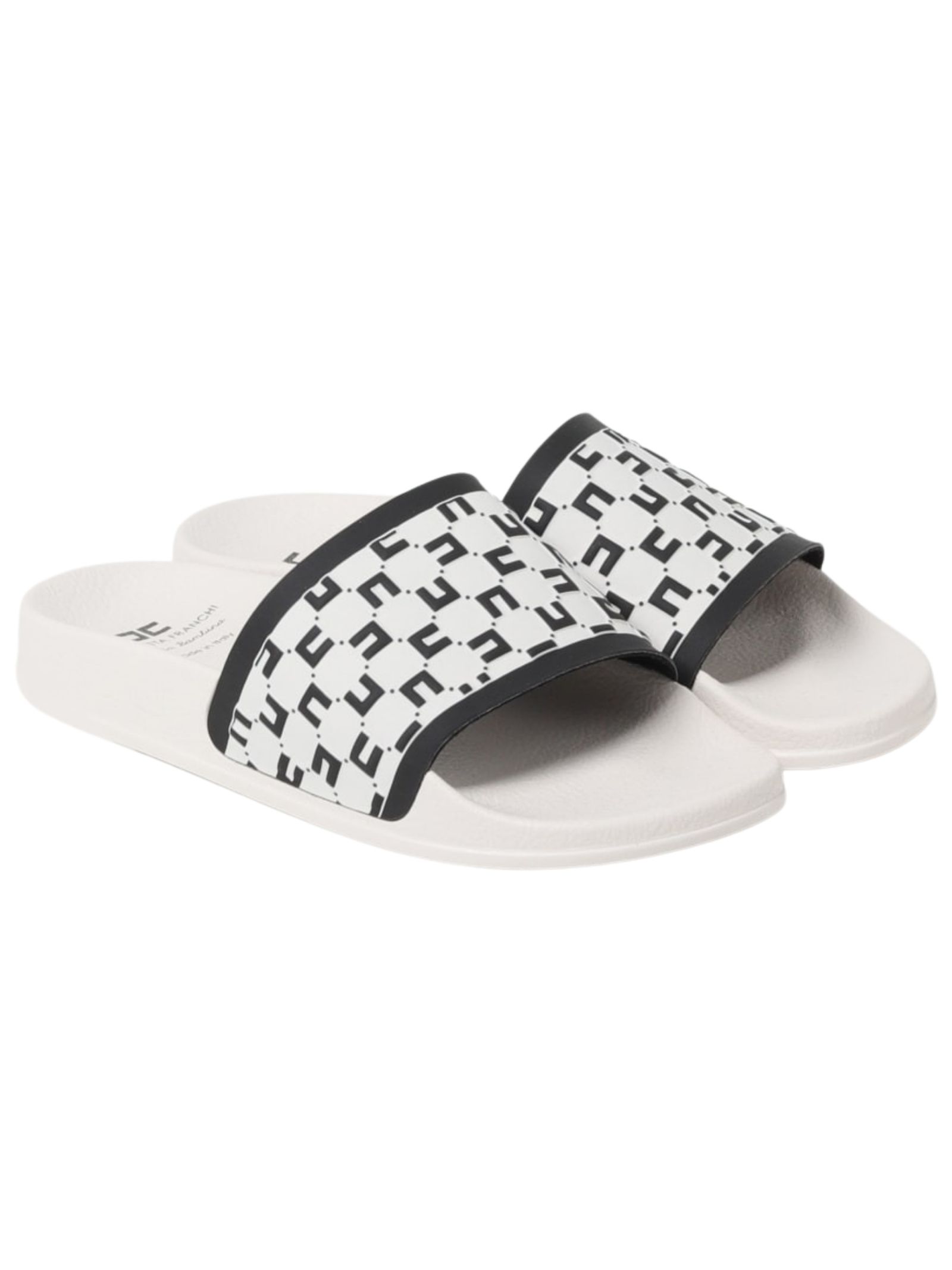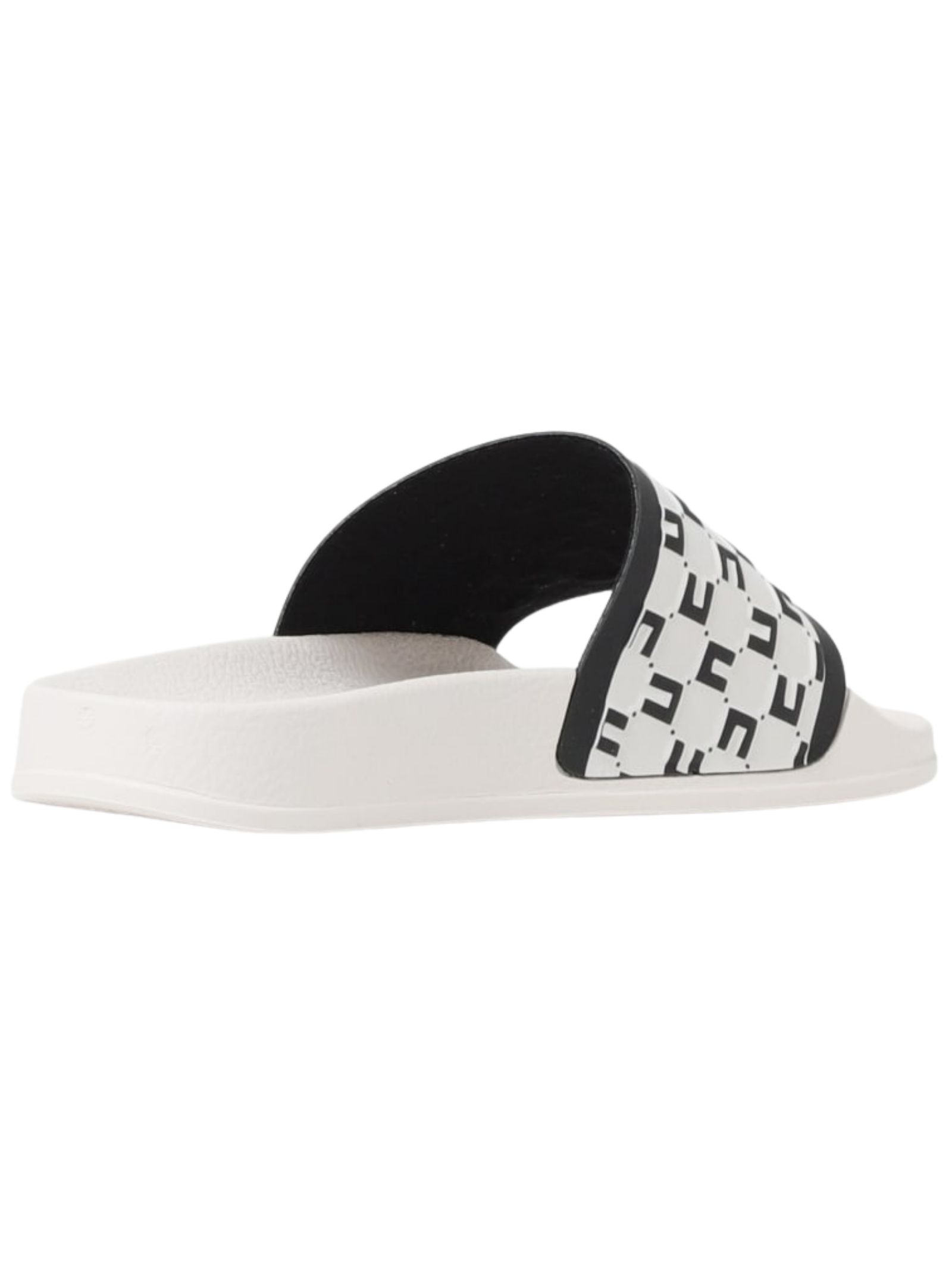 Elisabetta Franchi Kids ciabatte slides in pvc di colore bianco, dettagli a contrasto nero, trama martellata, punta smussata aperta, fascia con logo goffrato, plantare sagomato, soletta con logo, suola in gomma, design slip-on. Fodera: gomma 100%. Esterno: gomma 100%. Suola: gomma 100%. Made in Italy