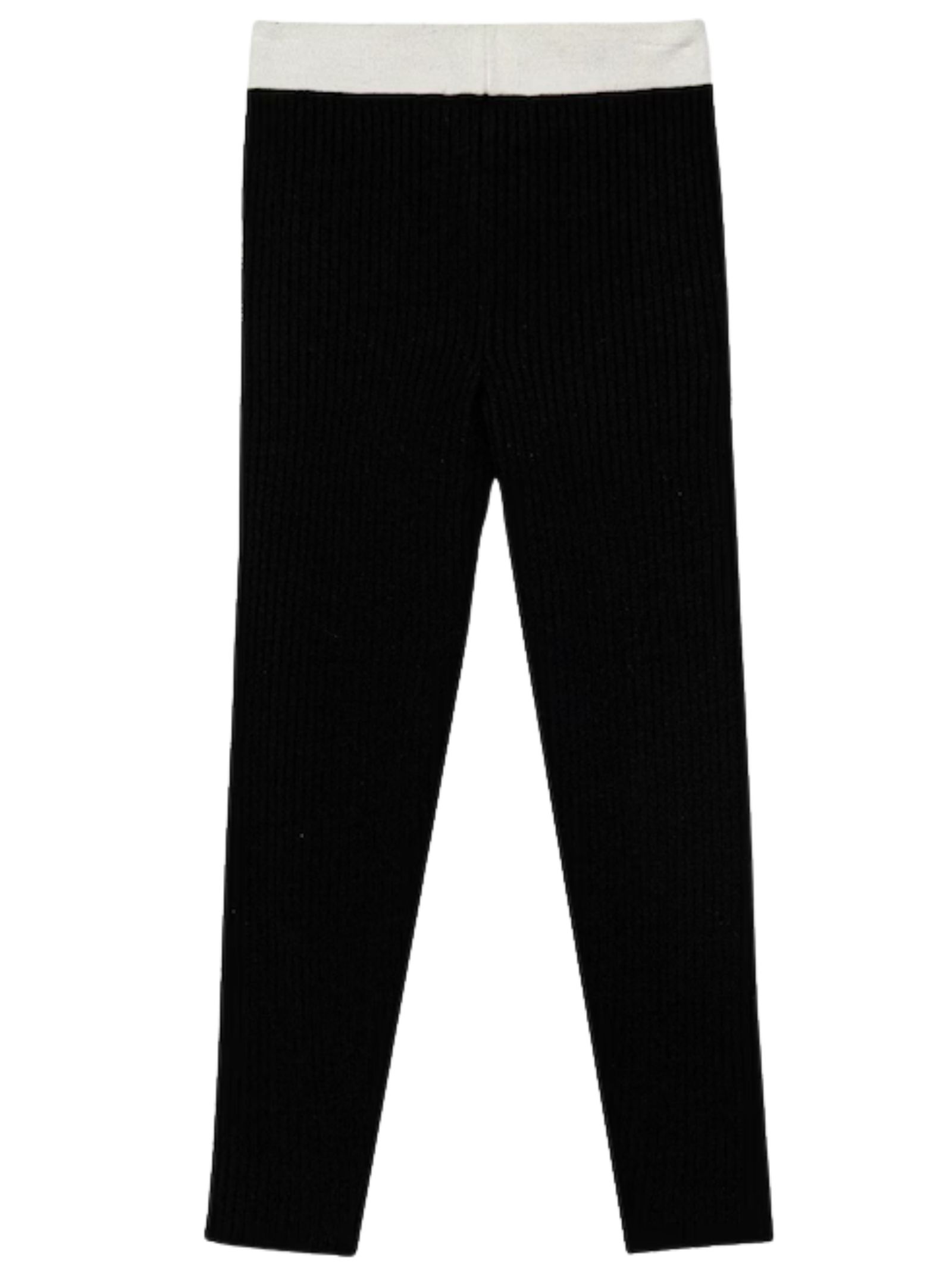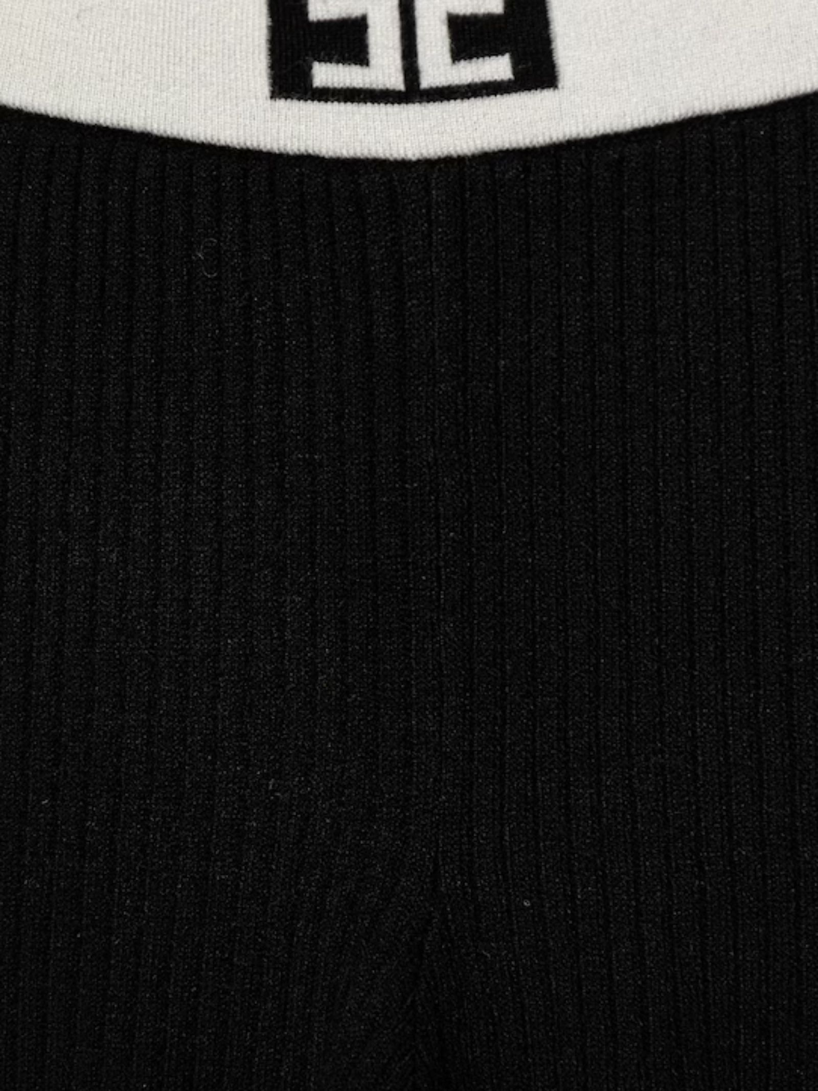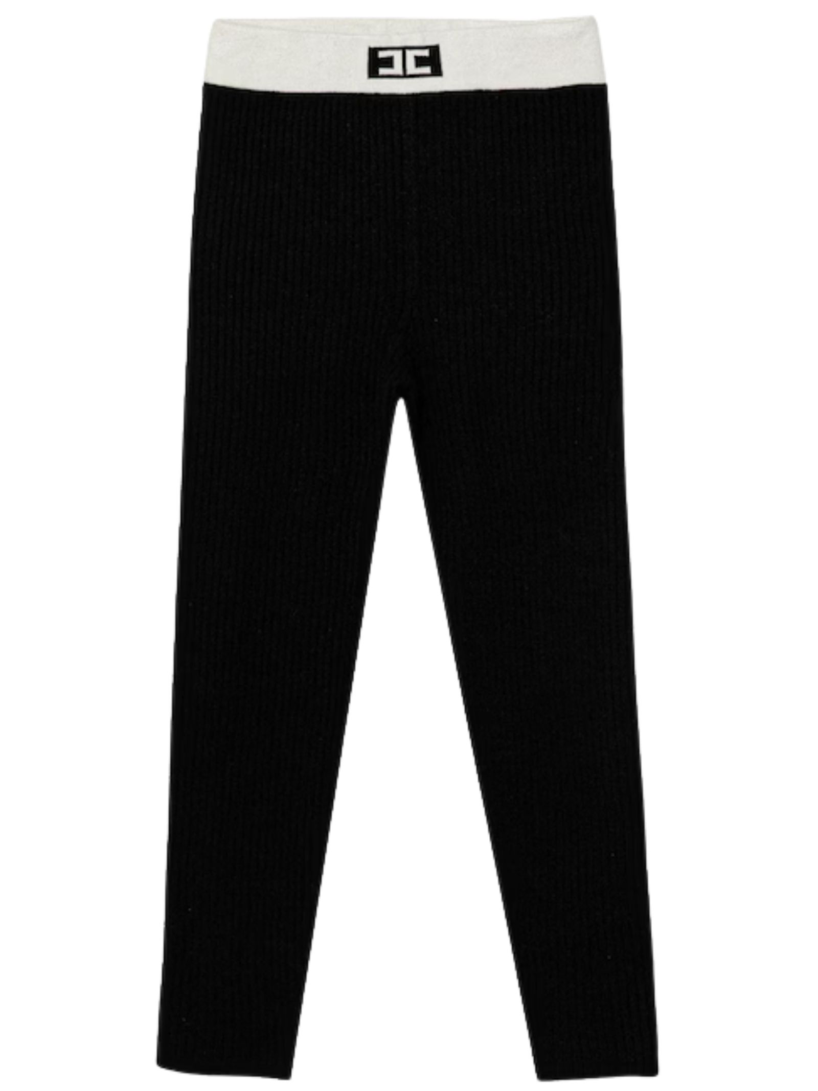 Elisabetta Franchi Kids leggings di colore nero, dettagli a contrasto bianco, realizzato in maglia fine elasticizzata a costine, modello con elastico in vita, design aderente, logo intarsiato. Composizione: 51% viscosa 31% poliestere 18% poliammide. Made in Italy