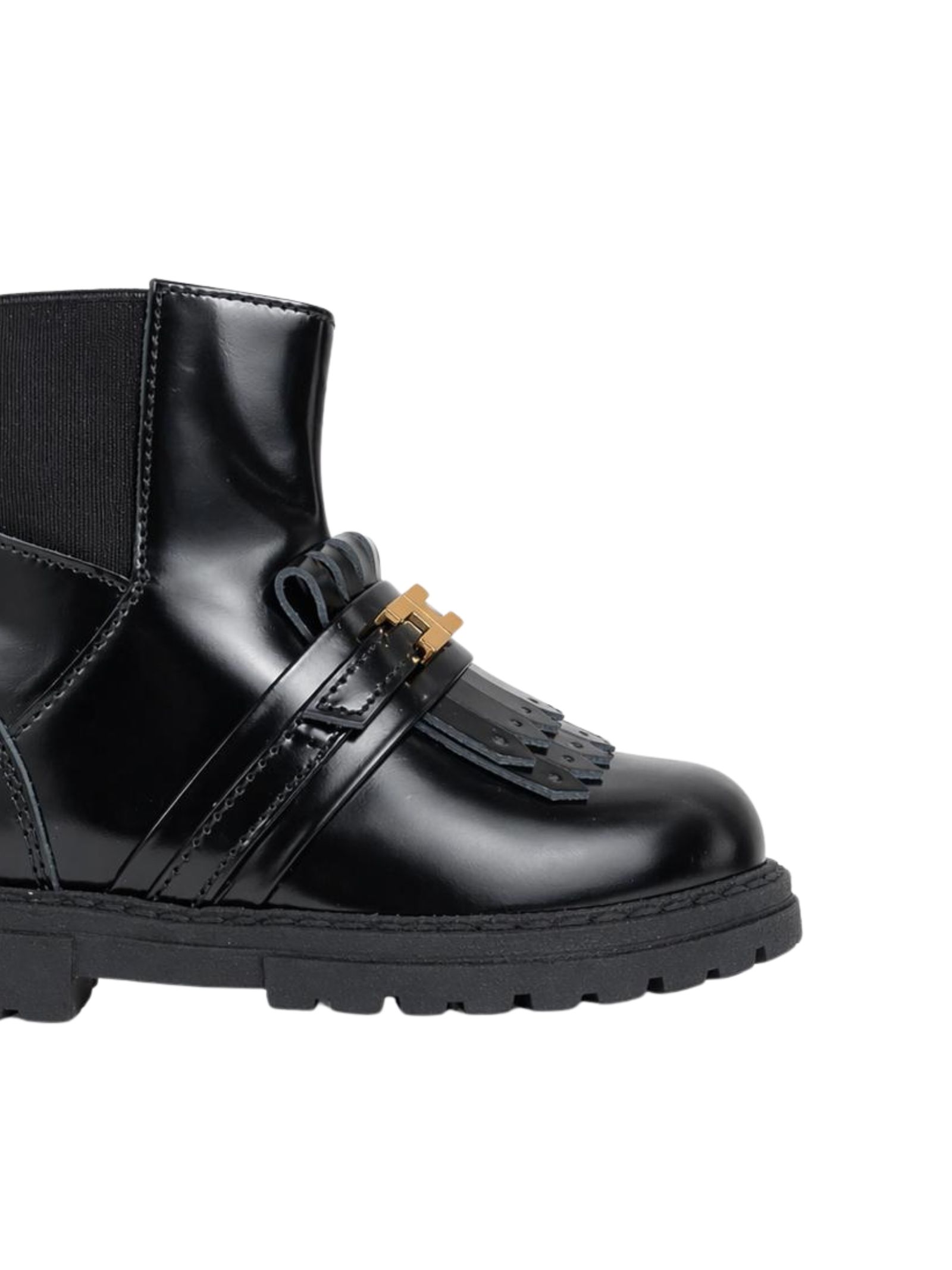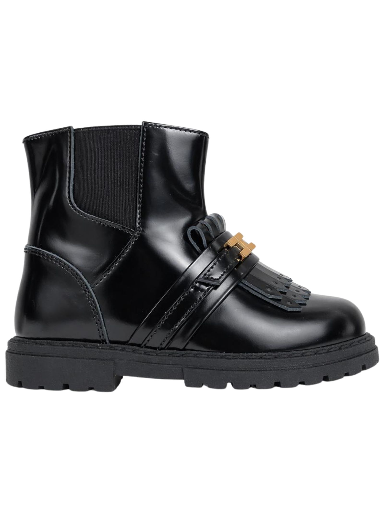 Elisabetta Franchi Kids stivaletti chelsea di colore nero realizzati in pelle sintetica effetto vernice, modello con puntale fortemente irrigidito, zip laterale, controtallone rinforzato stabilizza il tallone e mantiene il piede in posizione in modo che non scivoli fuori dalla scarpa, inserto elasticizzato, fodera in pelle confortevole, suola in gomma resistente. Made in Italy