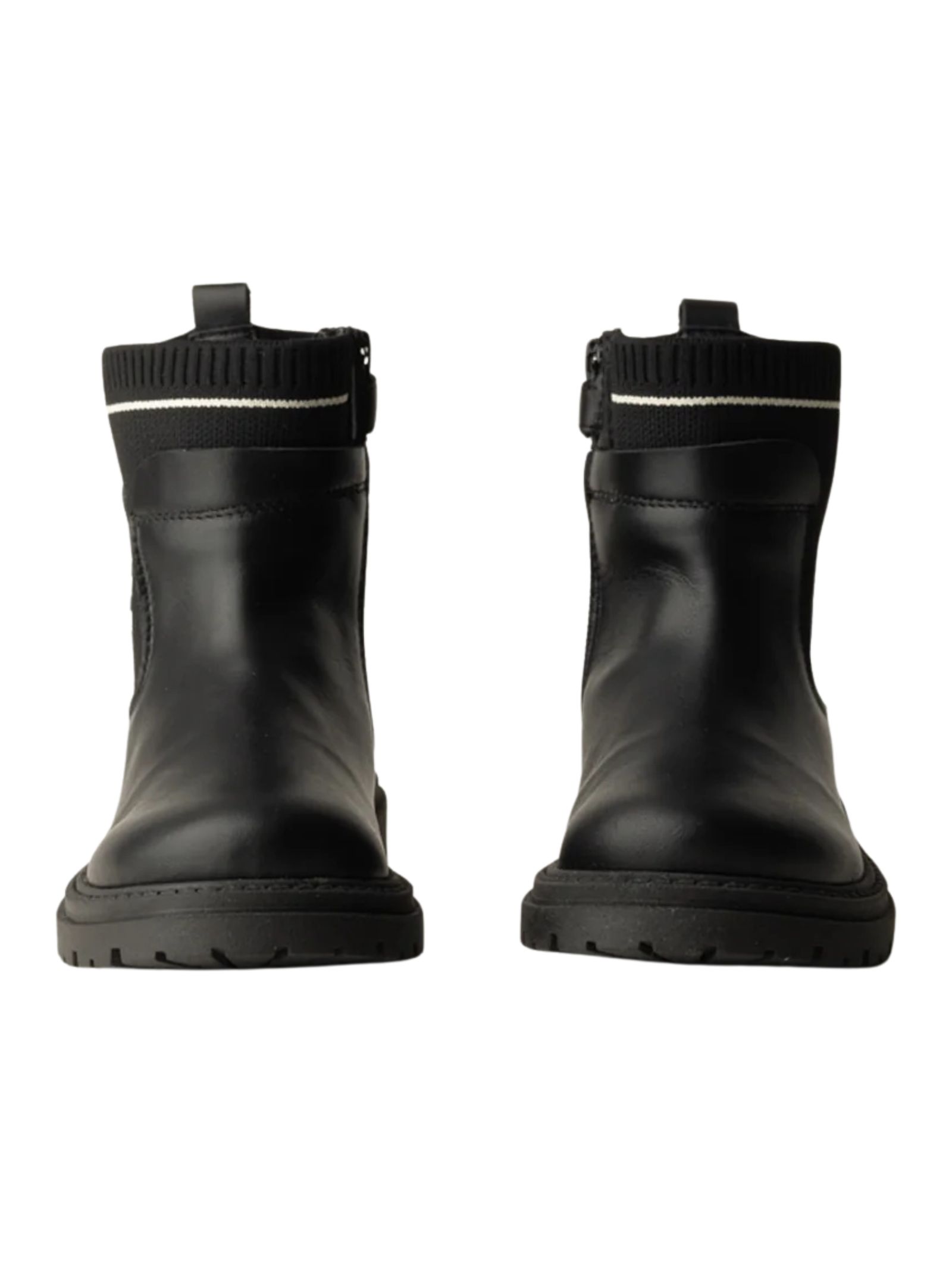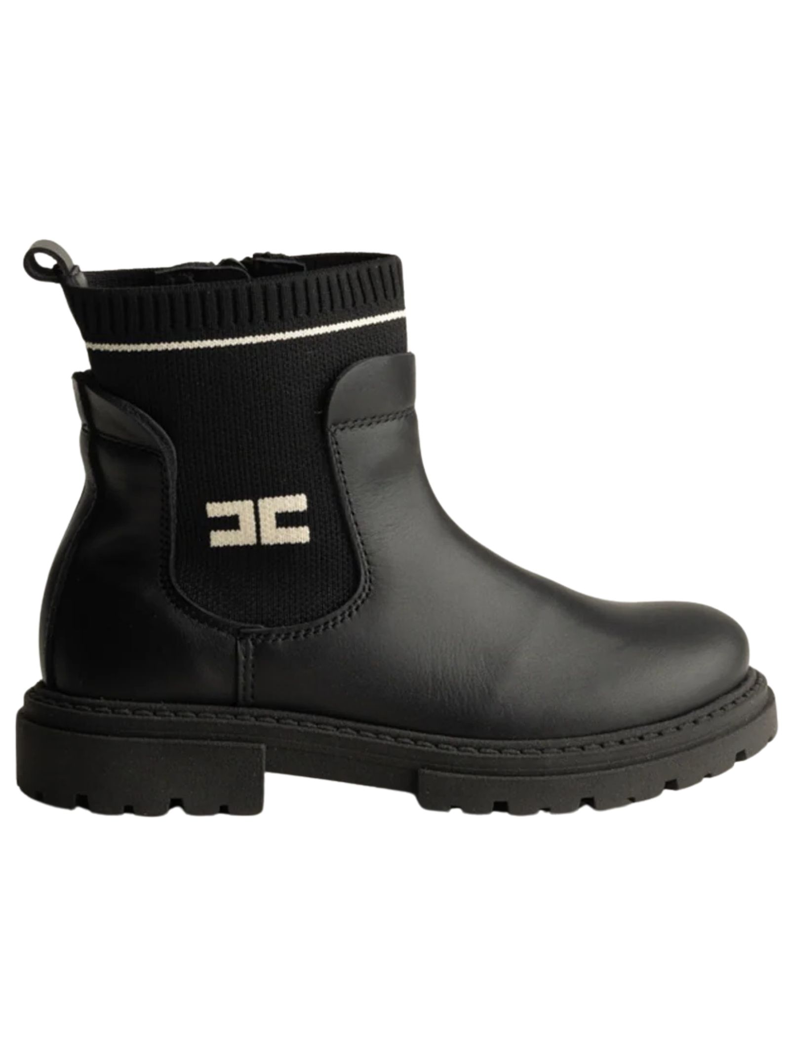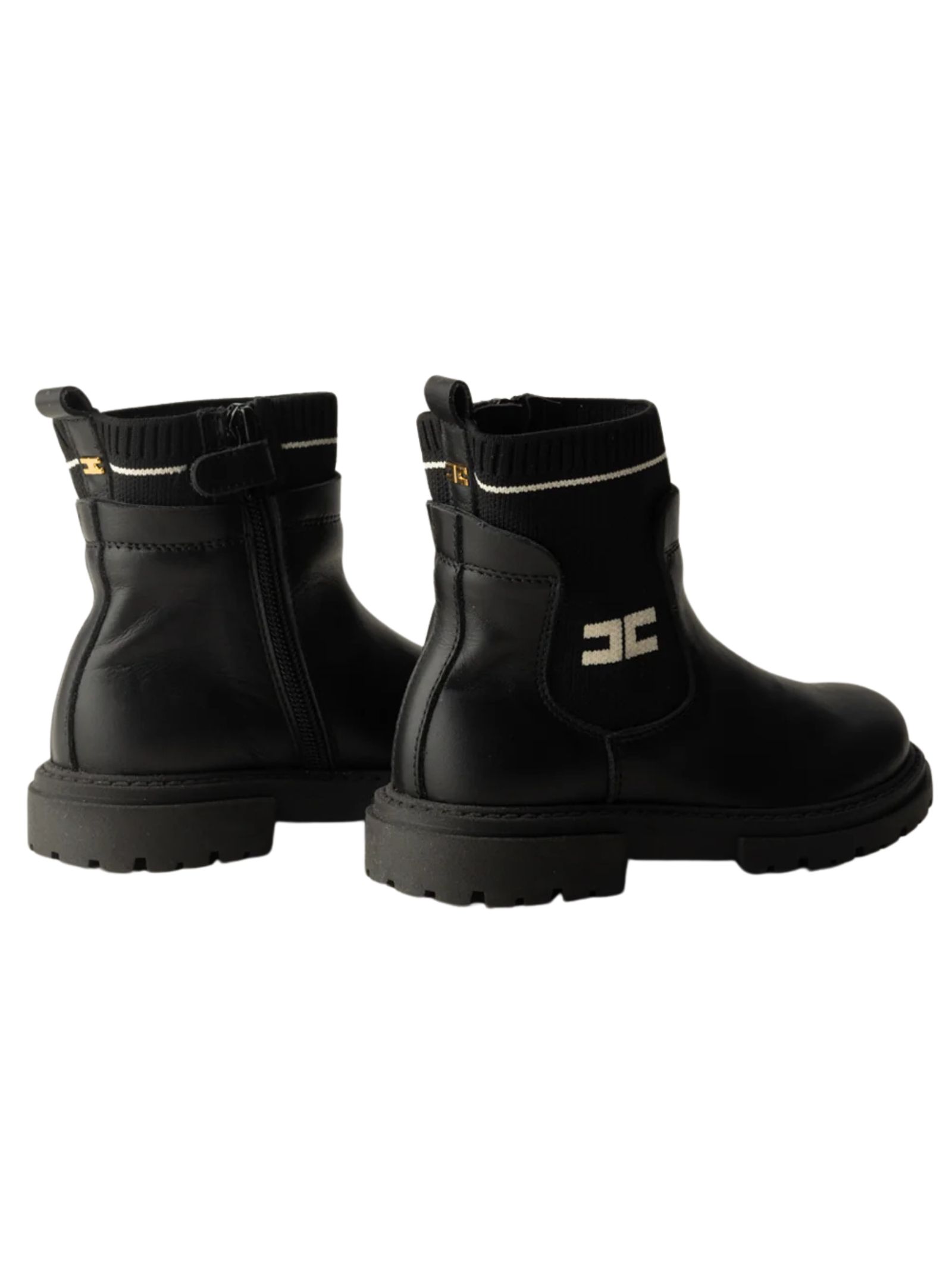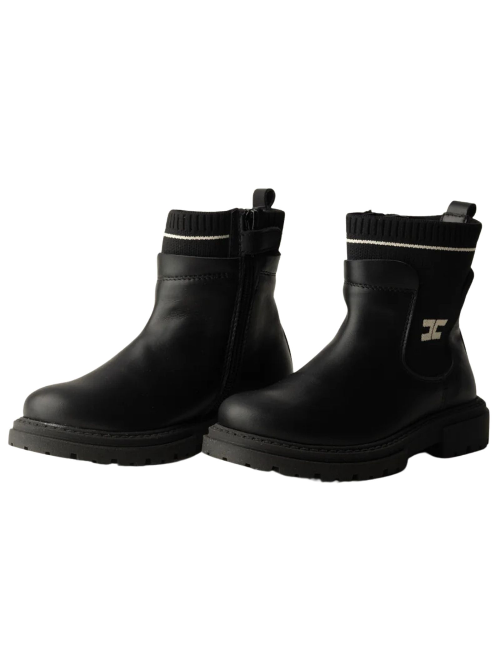 Elisabetta Franchi Kids stivaletti di colore nero, realizzati in vera pelle, modello con punta tonda, inserto in tessuto elastico logato, controtallone rinforzato, fodera in pelle, zip laterale, suola in gomma. Made in Italy