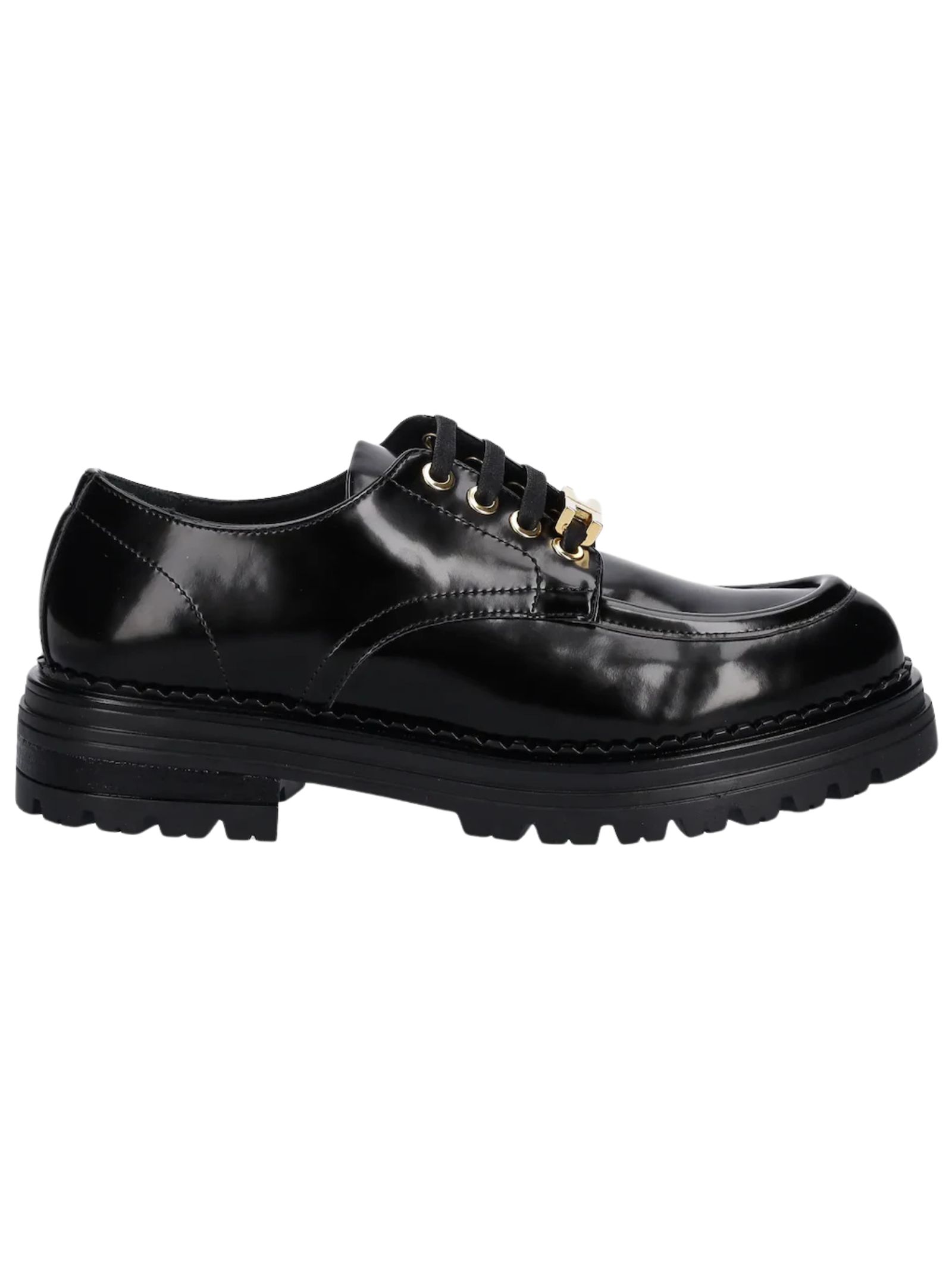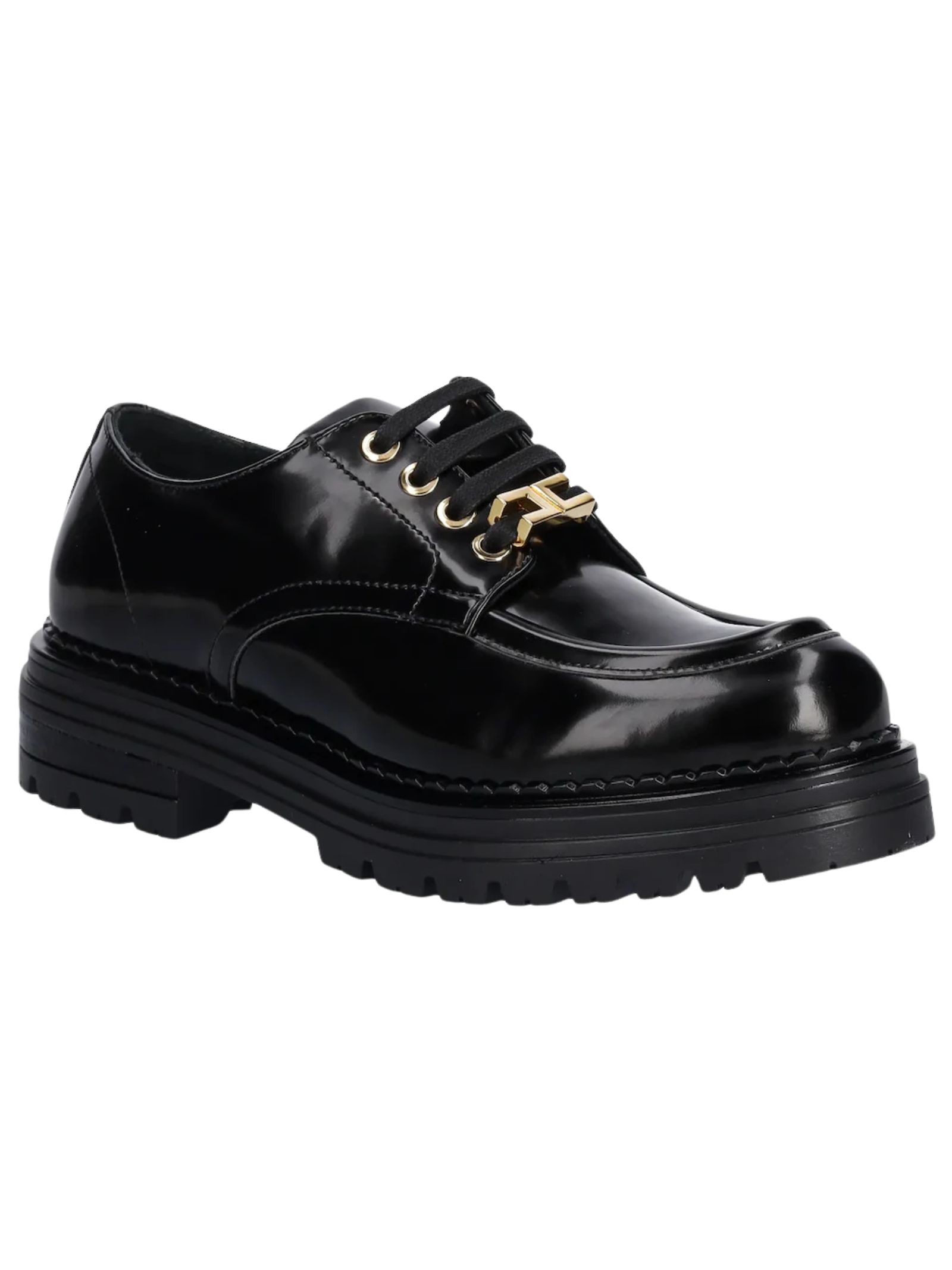 Elisabetta Franchi Kids scarpe di colore nero realizzate in pelle sintetica effetto vernice, modello con suola scanalata che offre un'elevata aderenza al suolo, puntale fortemente irrigidito, controtallone rinforzato stabilizza il tallone e mantiene il piede in posizione in modo che non scivoli fuori dalla scarpa, passante sul retro che facilita l'inserimento e la rimozione della scarpa, inserto elasticizzato, fodera in pelle è confortevole, suola in gomma resistente. Made in Italy
