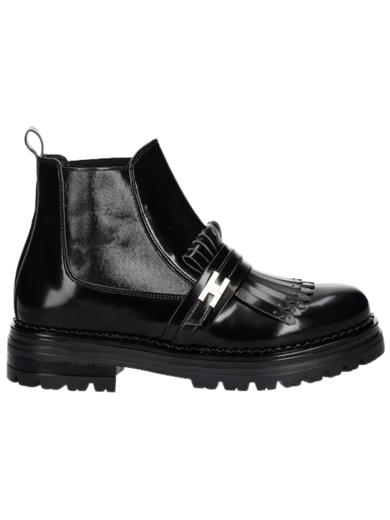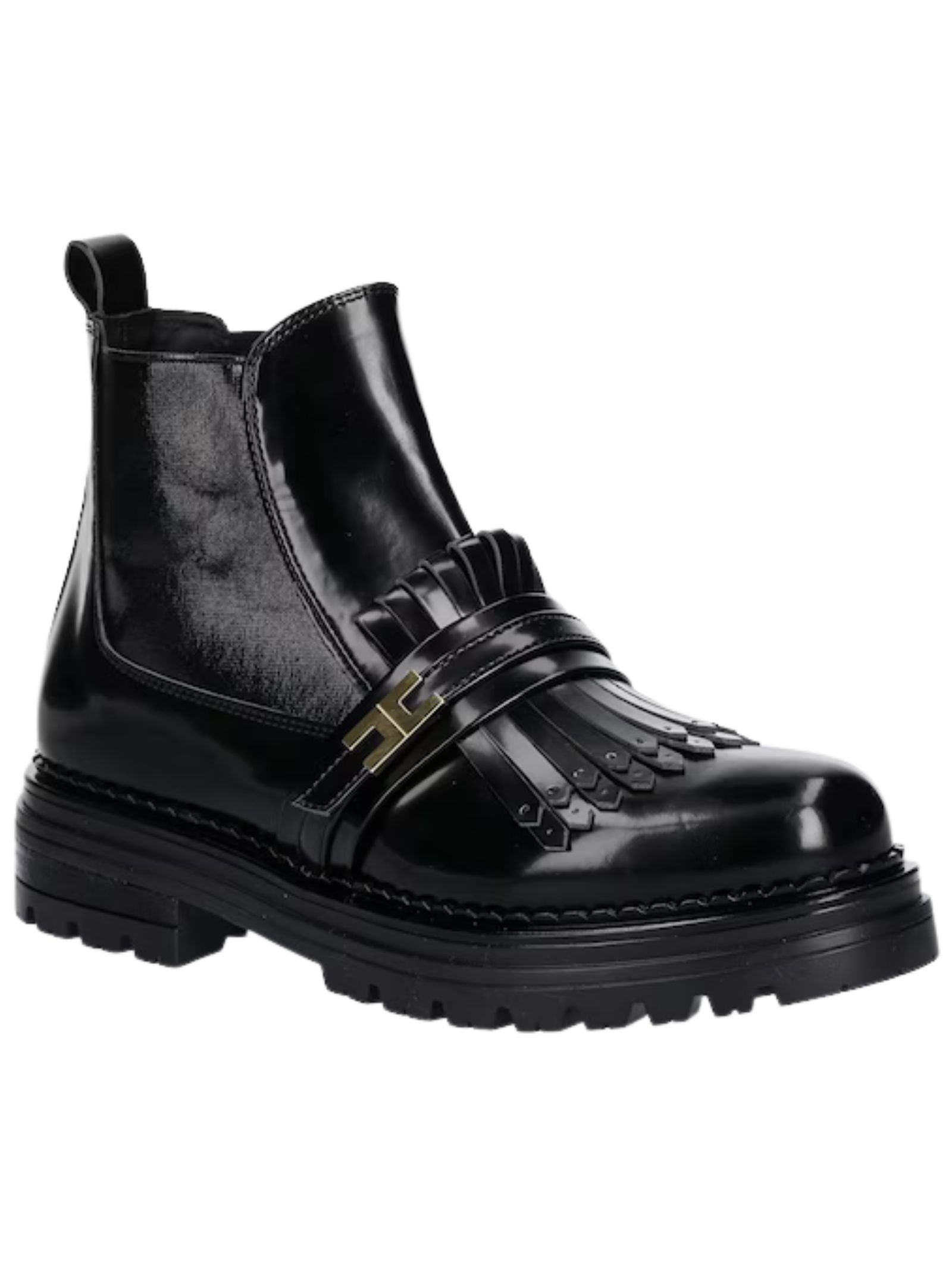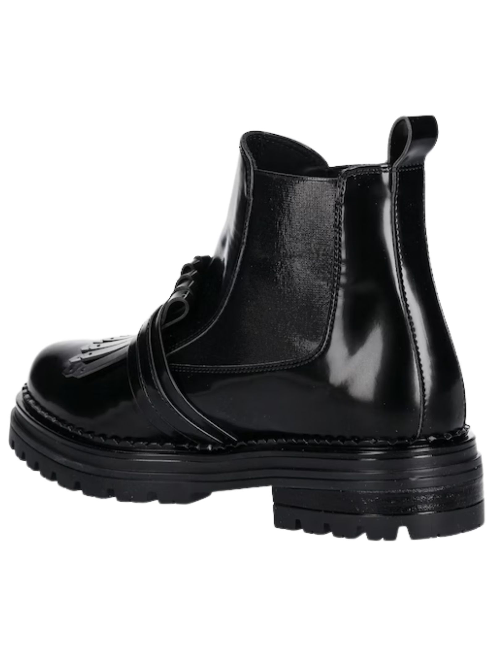 Elisabetta Franchi Kids stivaletti chelsea di colore nero realizzati in pelle sintetica effetto vernice, modello con suola scanalata che offre un'elevata aderenza al suolo, puntale fortemente irrigidito, controtallone rinforzato stabilizza il tallone e mantiene il piede in posizione in modo che non scivoli fuori dalla scarpa, passante sul retro che facilita l'inserimento e la rimozione della scarpa, inserto elasticizzato, fodera in pelle è confortevole, suola in gomma resistente. Made in Italy