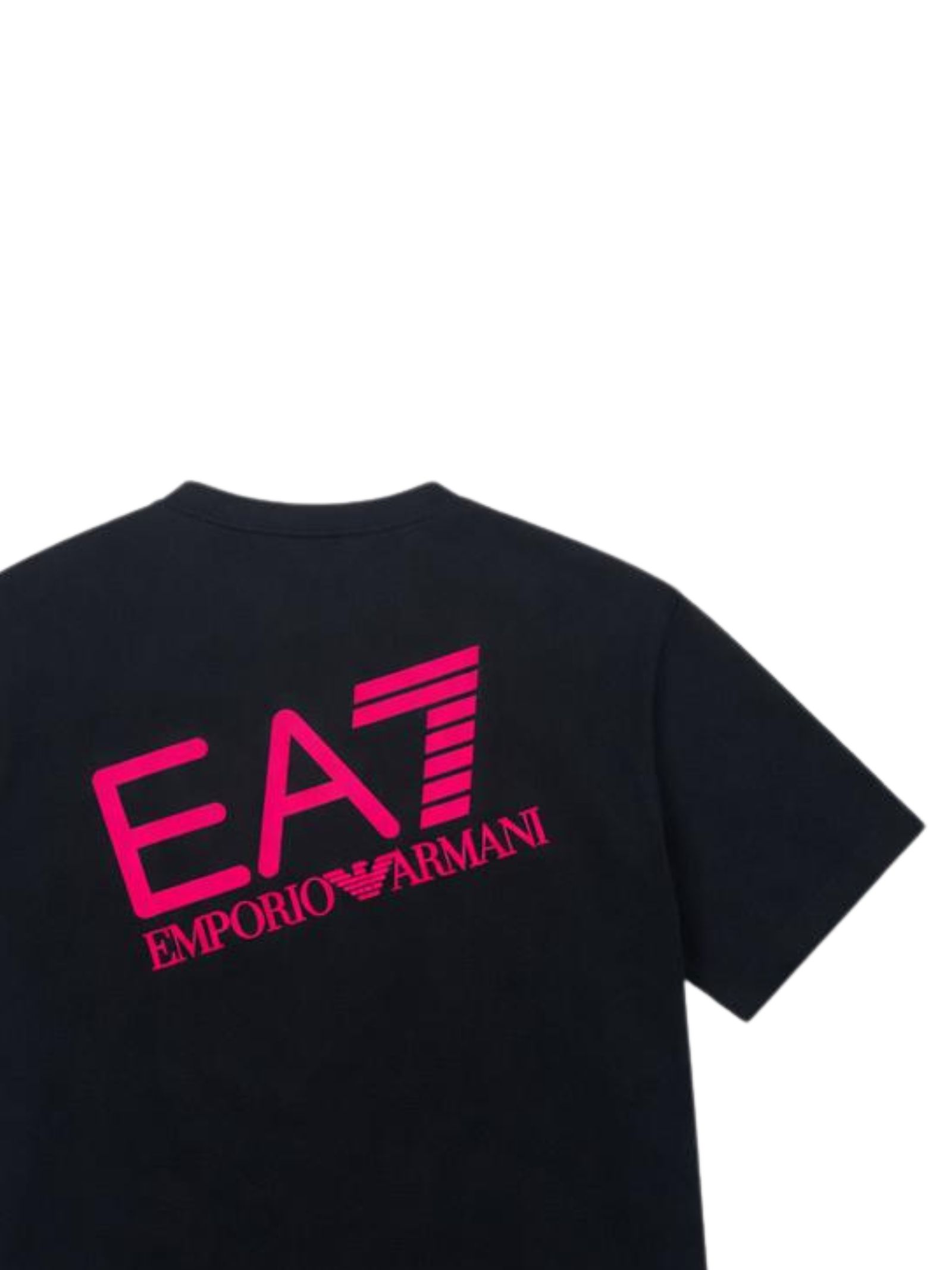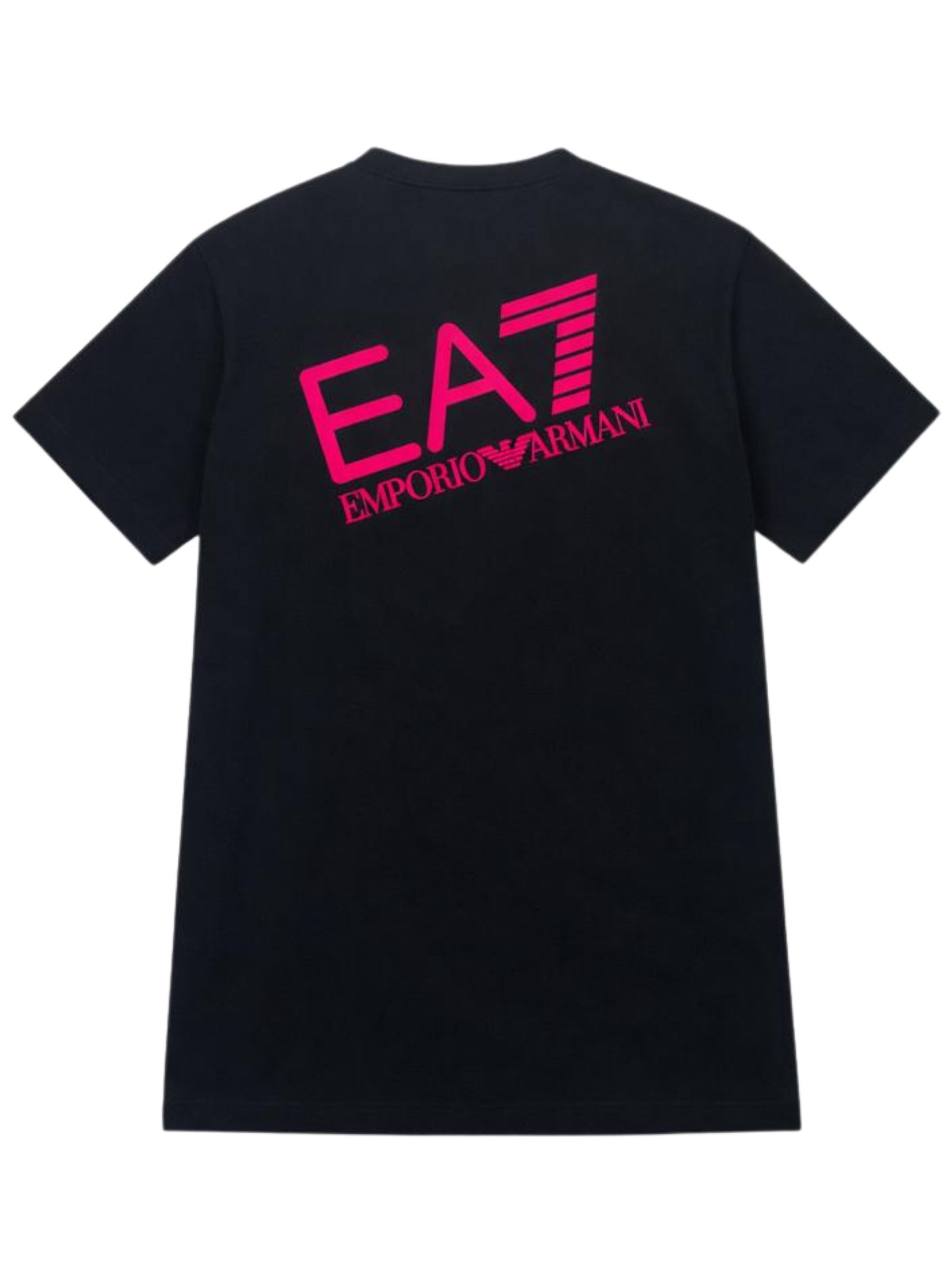 Emporio Armani Junior abito di colore nero, modello girocollo, mezza manica, stampa a contrasto con logo su entrambi i lati, vestibilità regolare. Composizione: 92% cotone 8% elastan