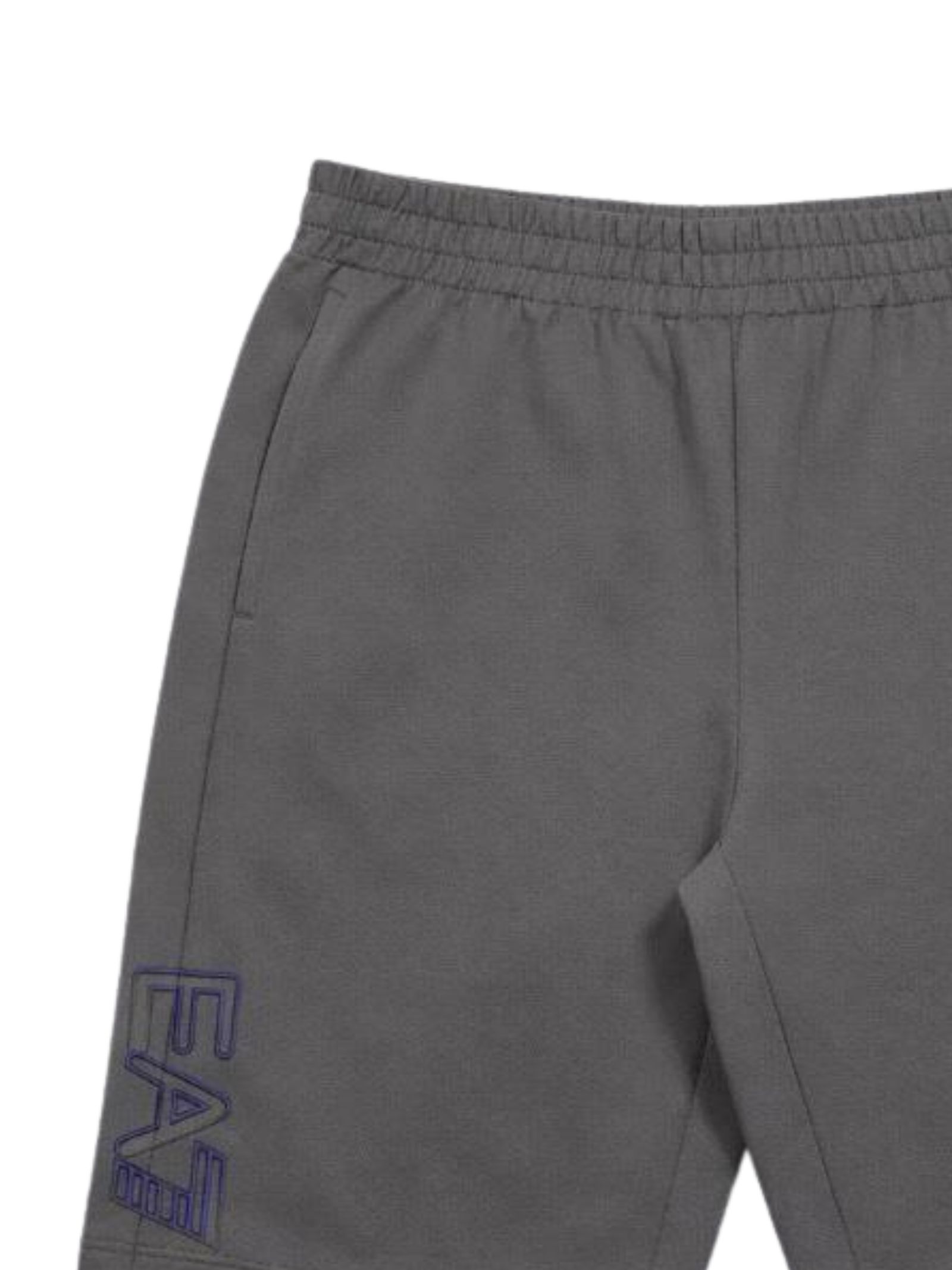 Emporio Armani Junior bermuda di colore grigio, modello con elastico in vita e coulisse interna, due tasche laterali, logo a contrasto, vestibilità regolare. Composizione: 100% cotone