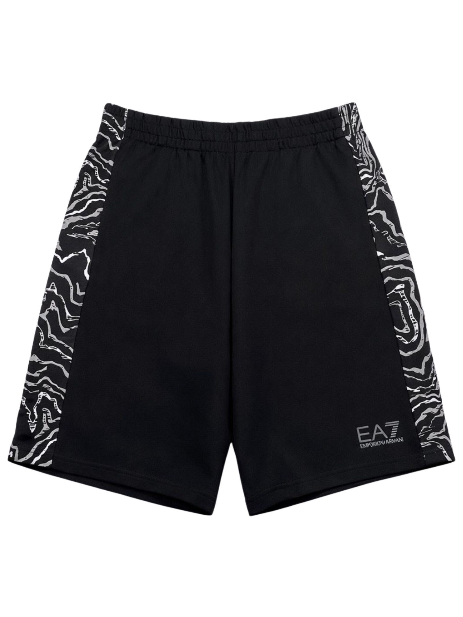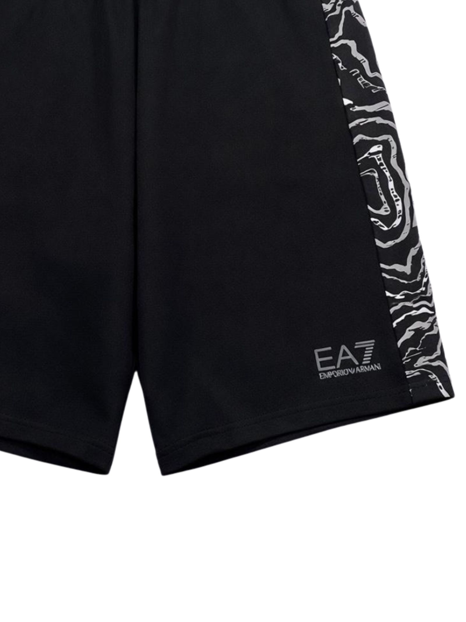 Emporio Armani Junior bermuda di colore nero, dettagli a contrasto, modello con elastico in vita e coulisse interna, due tasche laterali, vestibilità regolare. Composizione: 100% cotone