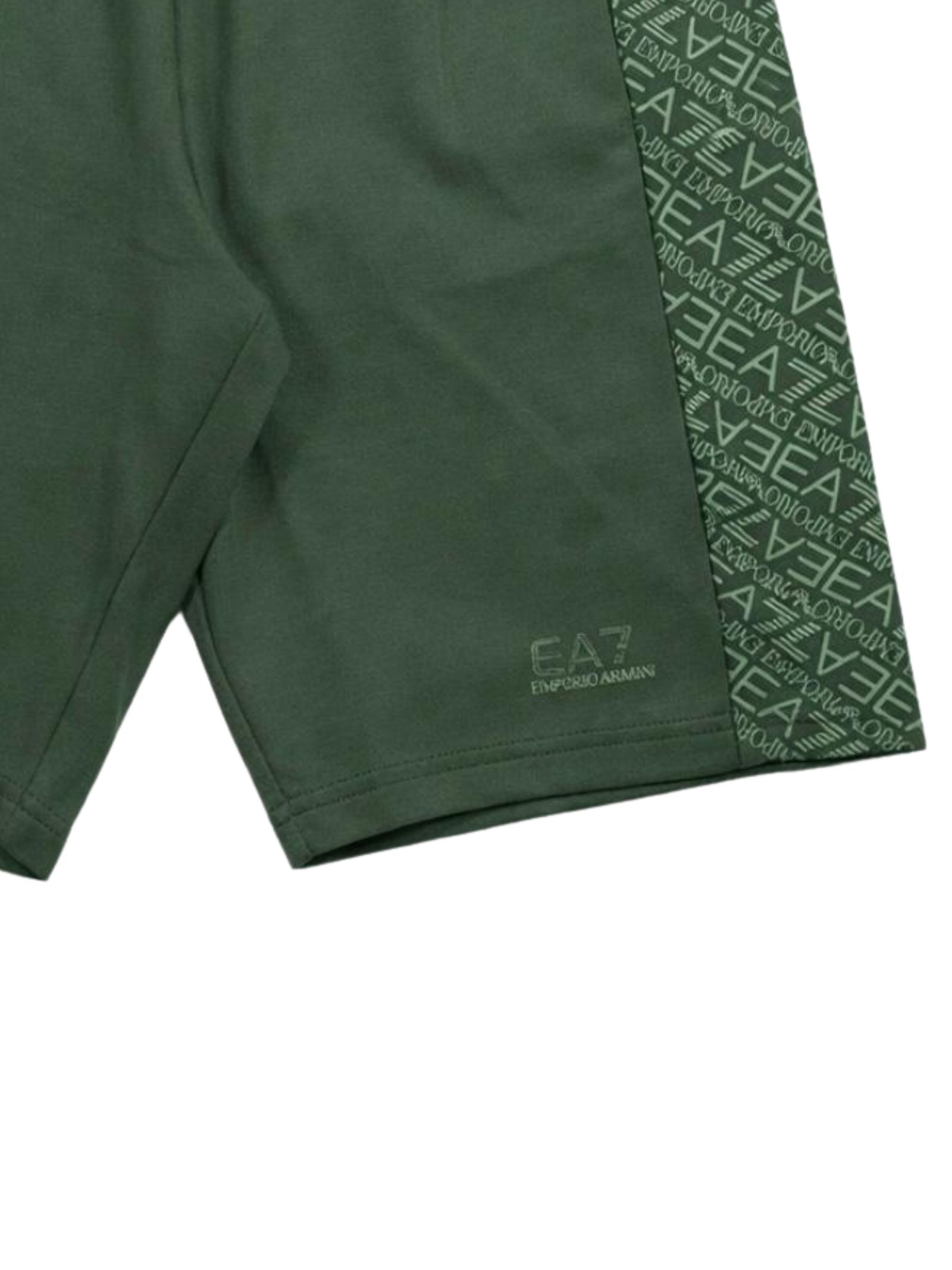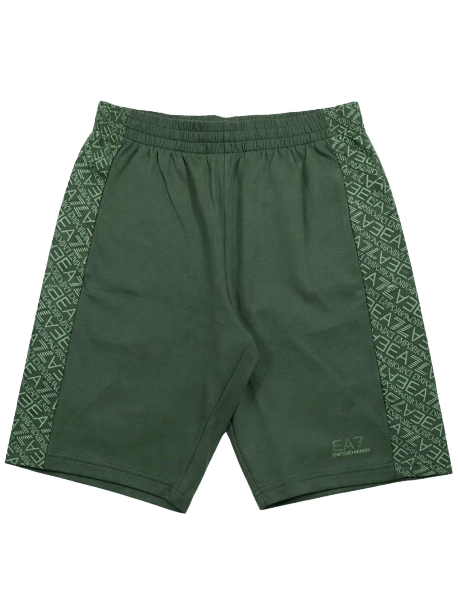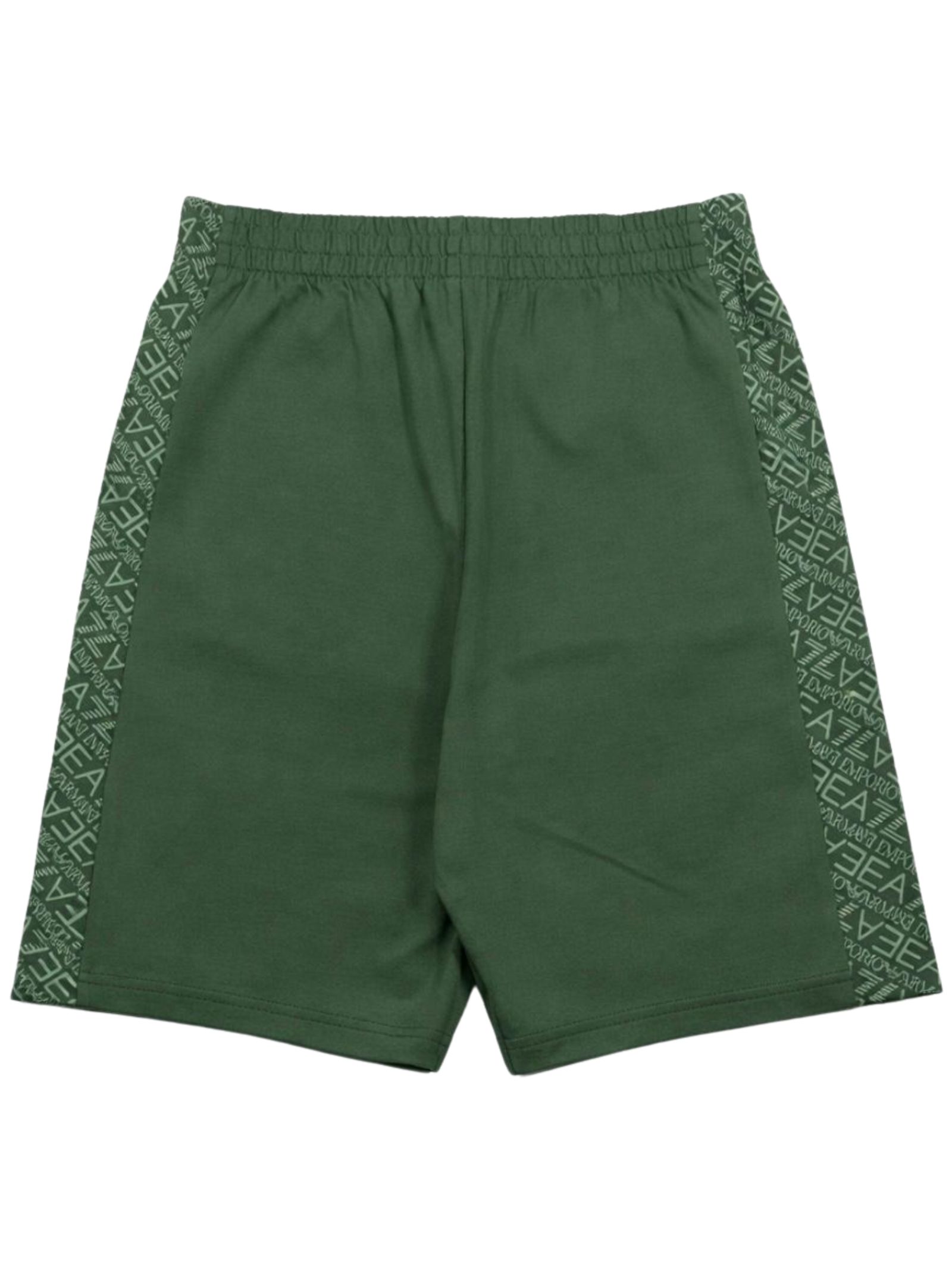 Emporio Armani Junior bermuda di colore verde, dettagli a contrasto, modello con elastico in vita e coulisse interna, due tasche laterali, logo a contrasto, vestibilità regolare. Composizione: 100% Cotone