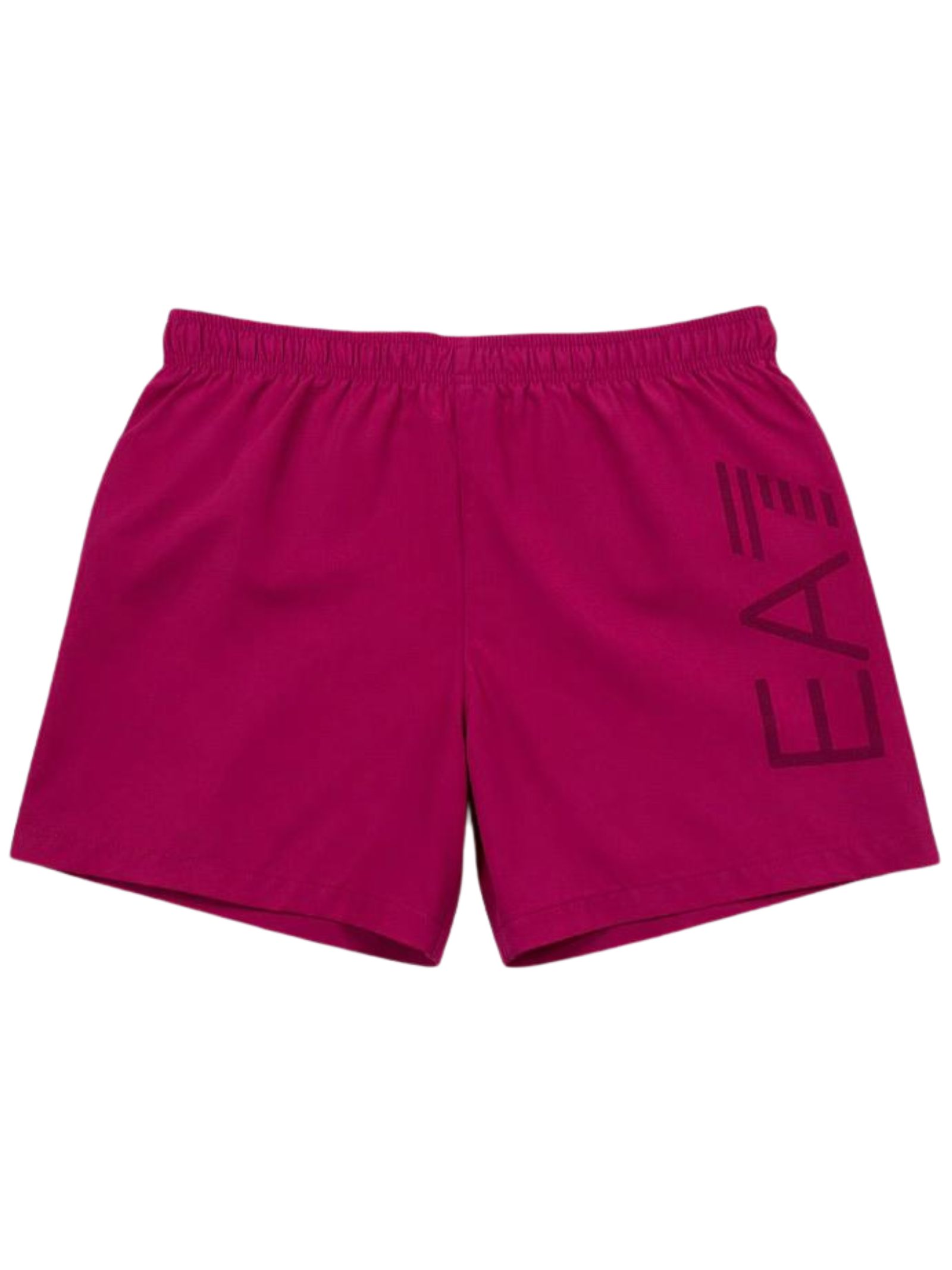 Emporio Armani Junior costume da bagno color ciclamino, stampa logo laterale a contrasto, modello boxer, elastico in vita, slip interno, tasca sul retro. Composizione: 100% poliestere