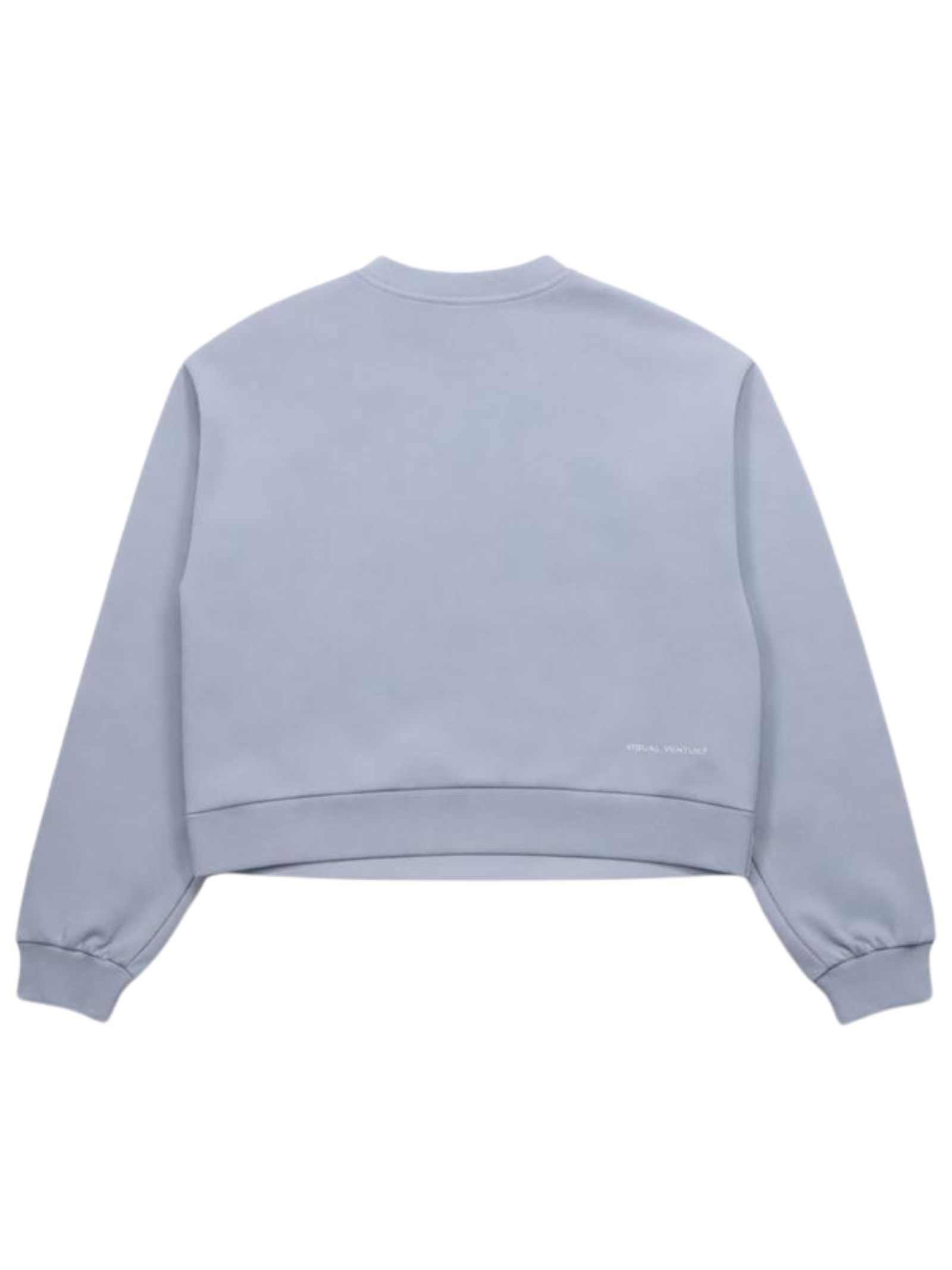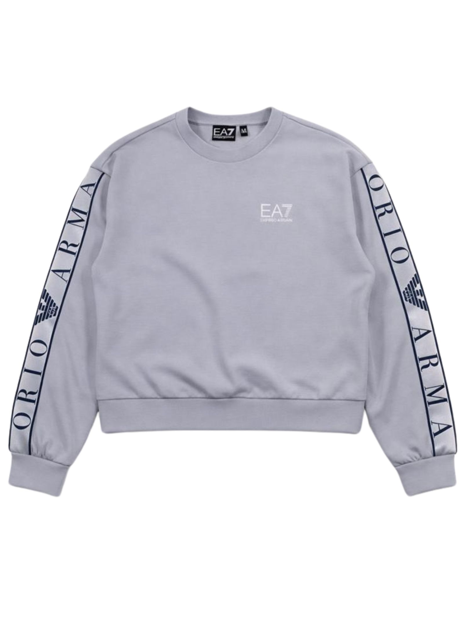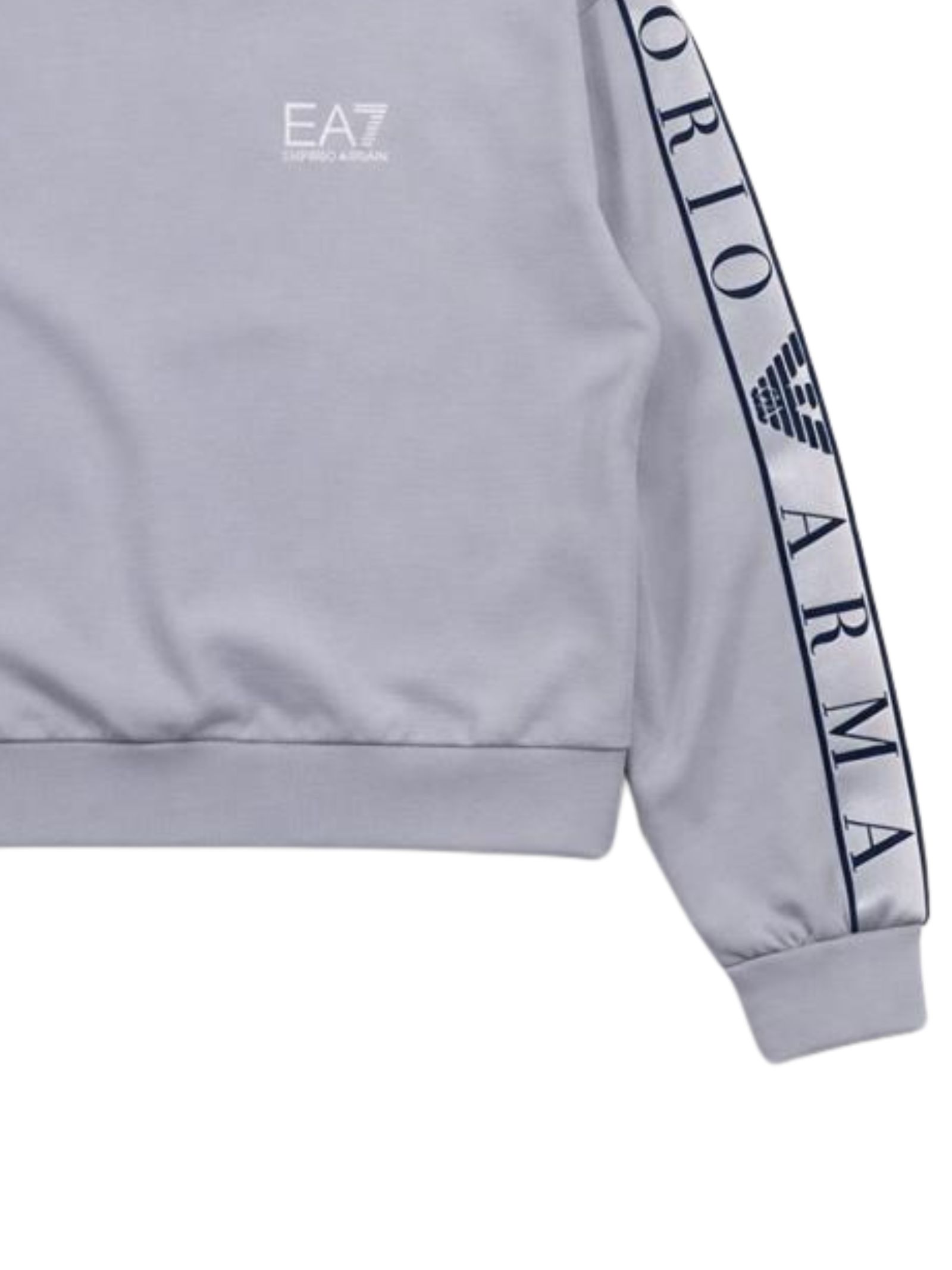 Emporio Armani Junior felpa di color cielo, bande laterali a contrasto con logo, modello girocollo, maniche lunghe, vestibilità cropped. Composizione: 50% poliestere 24% cotone 23% modal 3% elastan