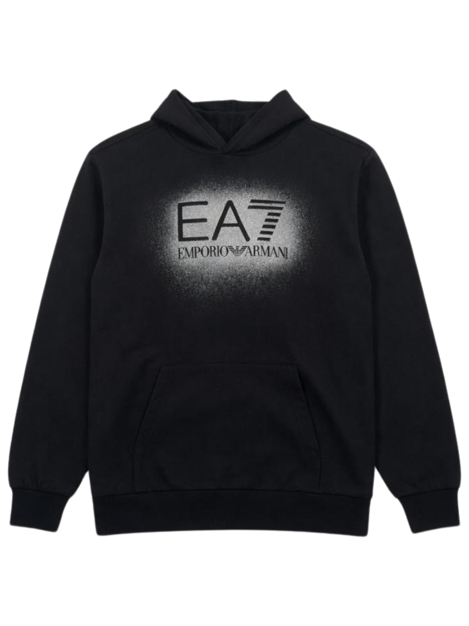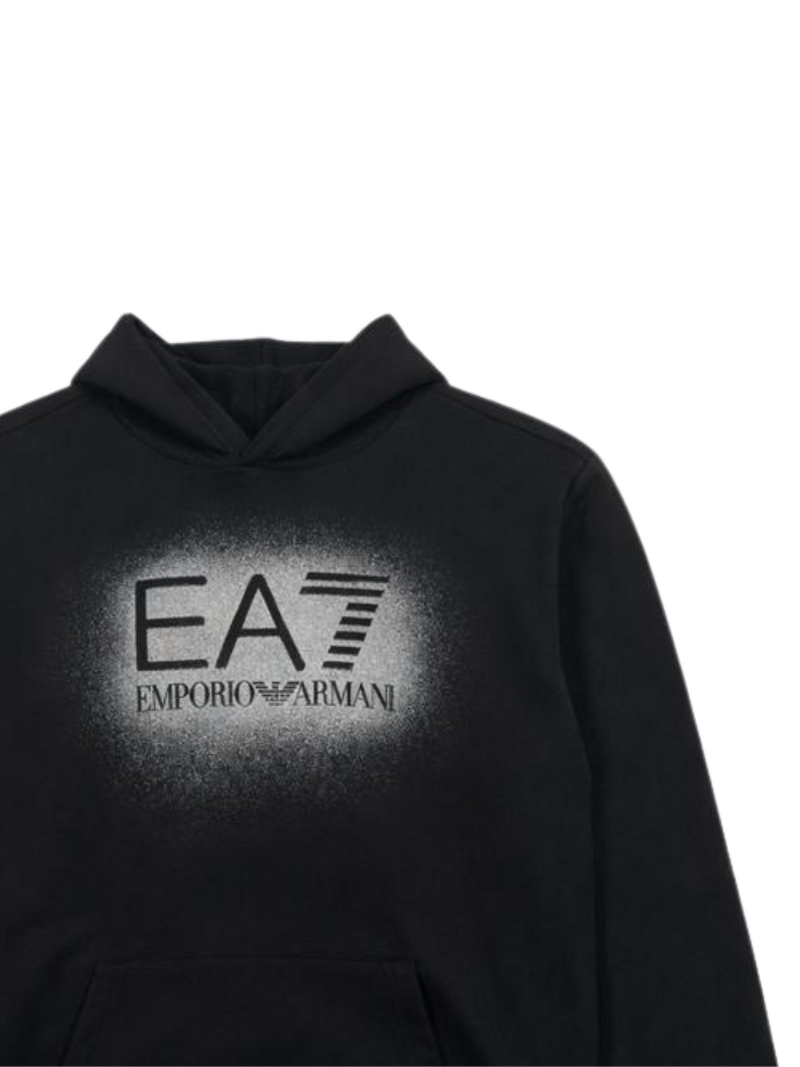 Emporio Armani Junior felpa di colore nero, modello con cappuccio, manica lunga, stampa a contrasto con logo, vestibilità regolare. Composizione: 95% cotone 5% elastan