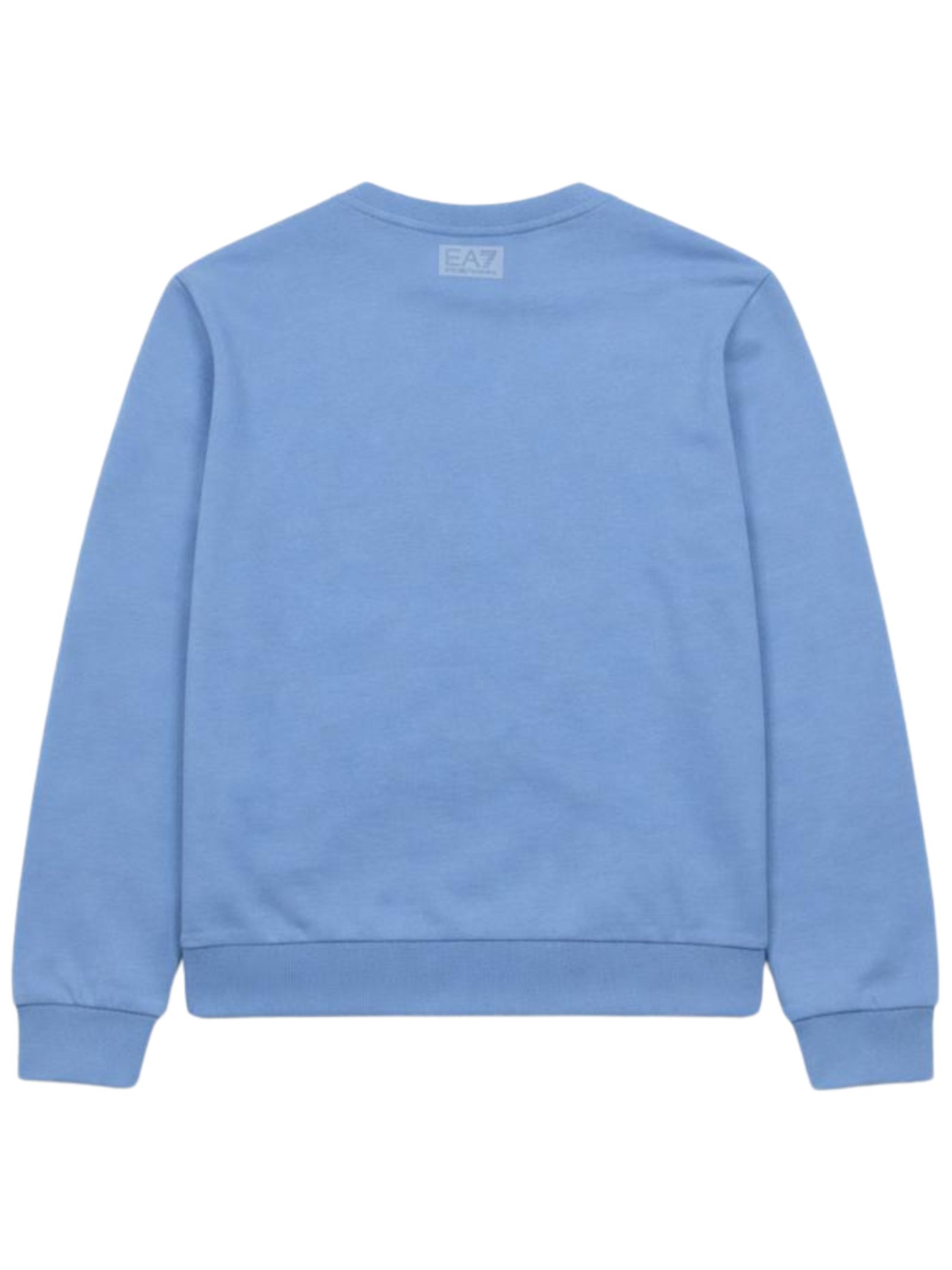 Emporio Armani Junior felpa di colore azzurro, modello girocollo, maniche lunghe, logo a contrasto su entrambi i lati, vestibilità regolare. Composizione: 88% cotone 12% elastan