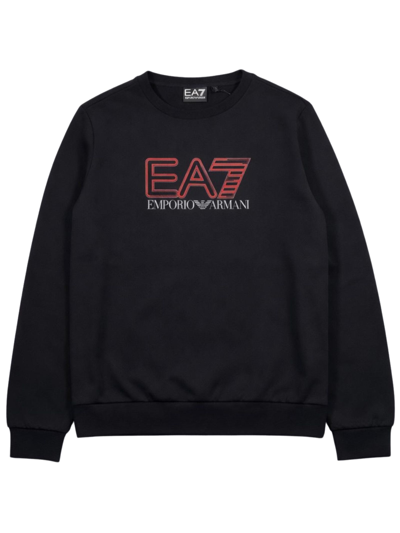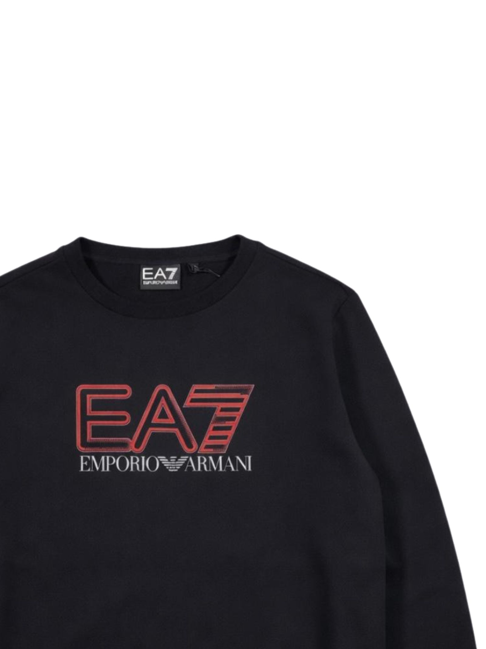 Emporio Armani Junior felpa di colore nero, modello girocollo, maniche lunghe, logo centrale rosso gommato, vestibilità regolare. Composizione: 100% cotone