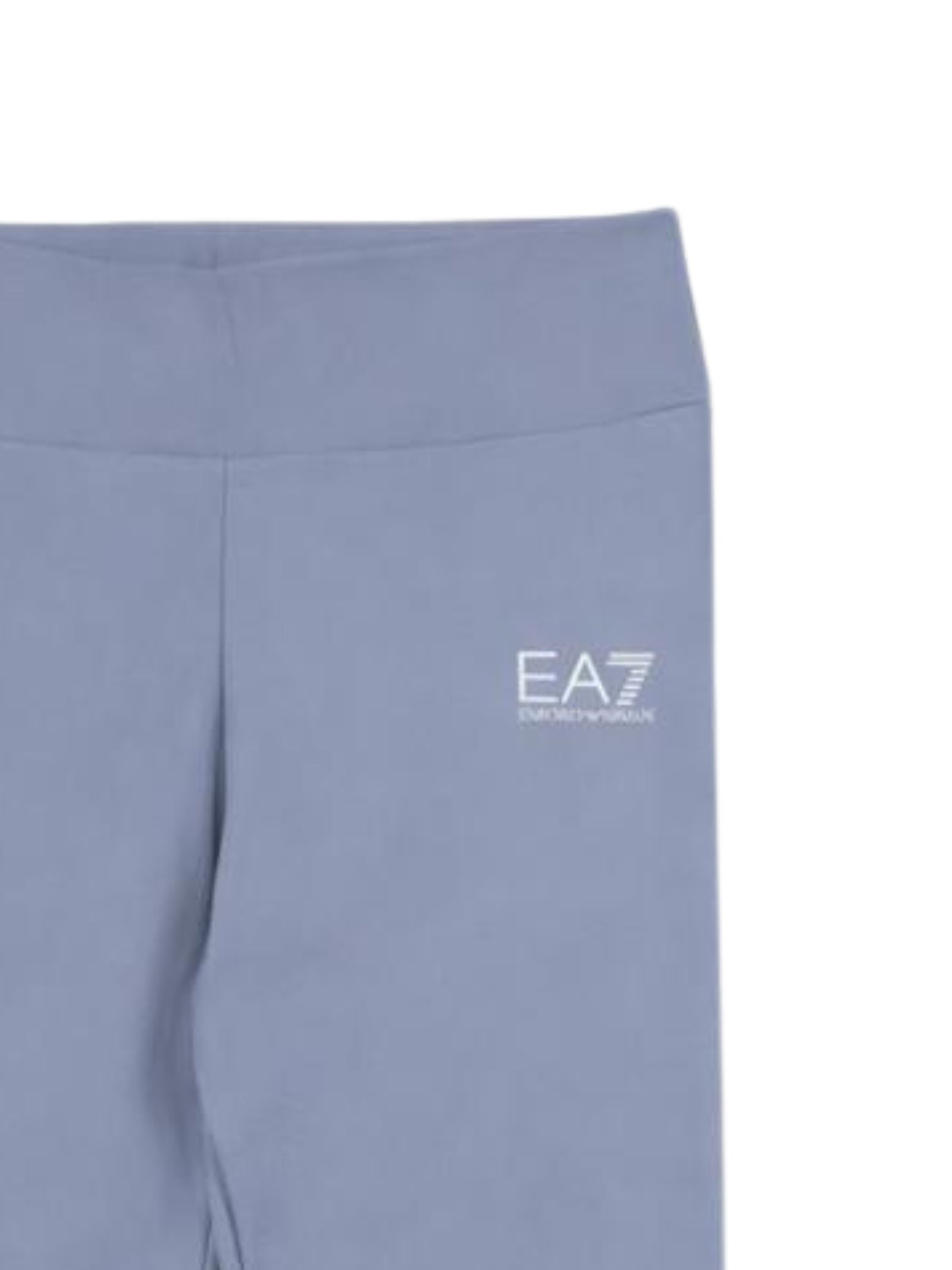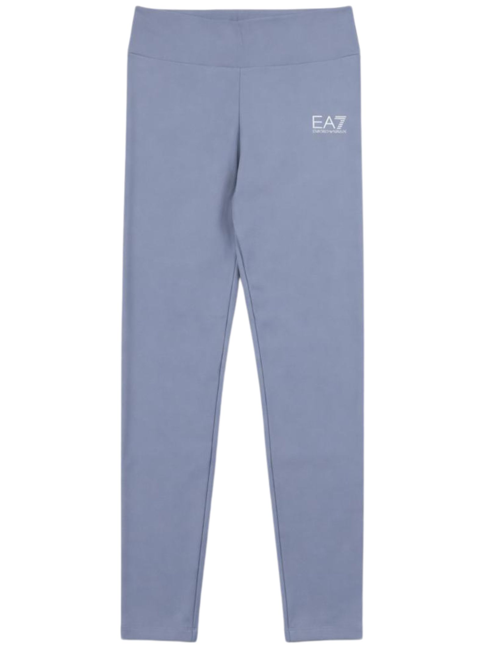 Emporio Armani Junior leggins color cielo, modello con elastico in vita, logo a contrasto bianco, vestibilità aderente. Composizione: 77% poliammide 23% elastan