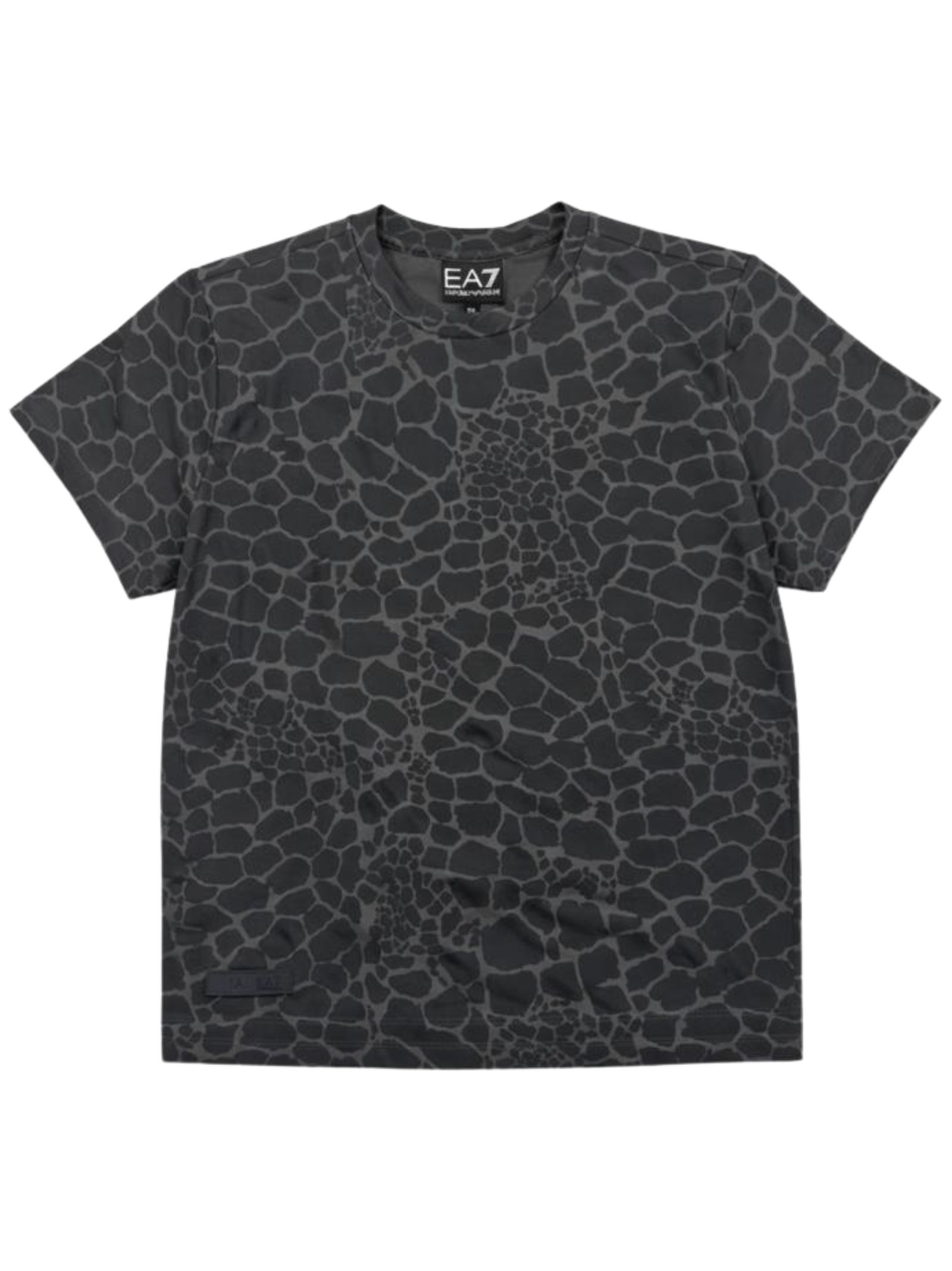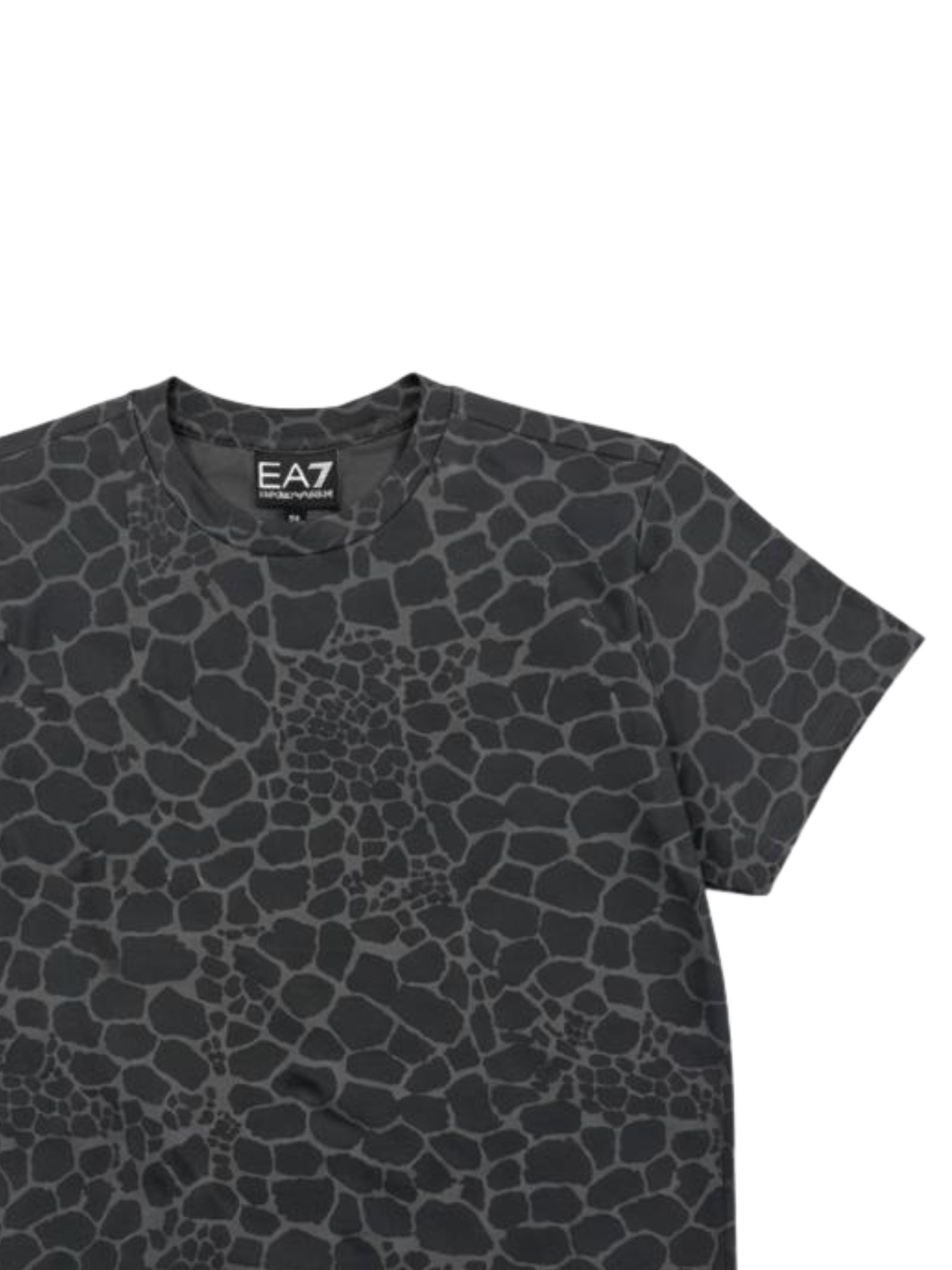 Emporio Armani Junior t-shirt di colore grigio in fantasia a contrasto, modello girocollo, mezza manica, vestibilità regolare. Composizione: 95% cotone 5% elastan