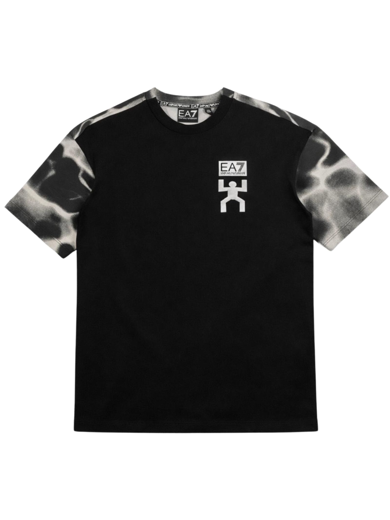 Emporio Armani Junior t-shirt di colore nero, dettagli a contrasto sul retro e sulle maniche, modello girocollo, mezza manica, stampa logo sul petto e sul retro, vestibilità regolare. Composizione: 100% cotone