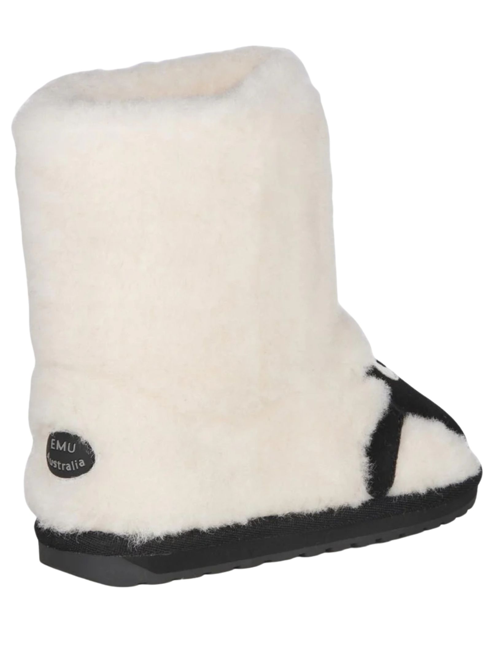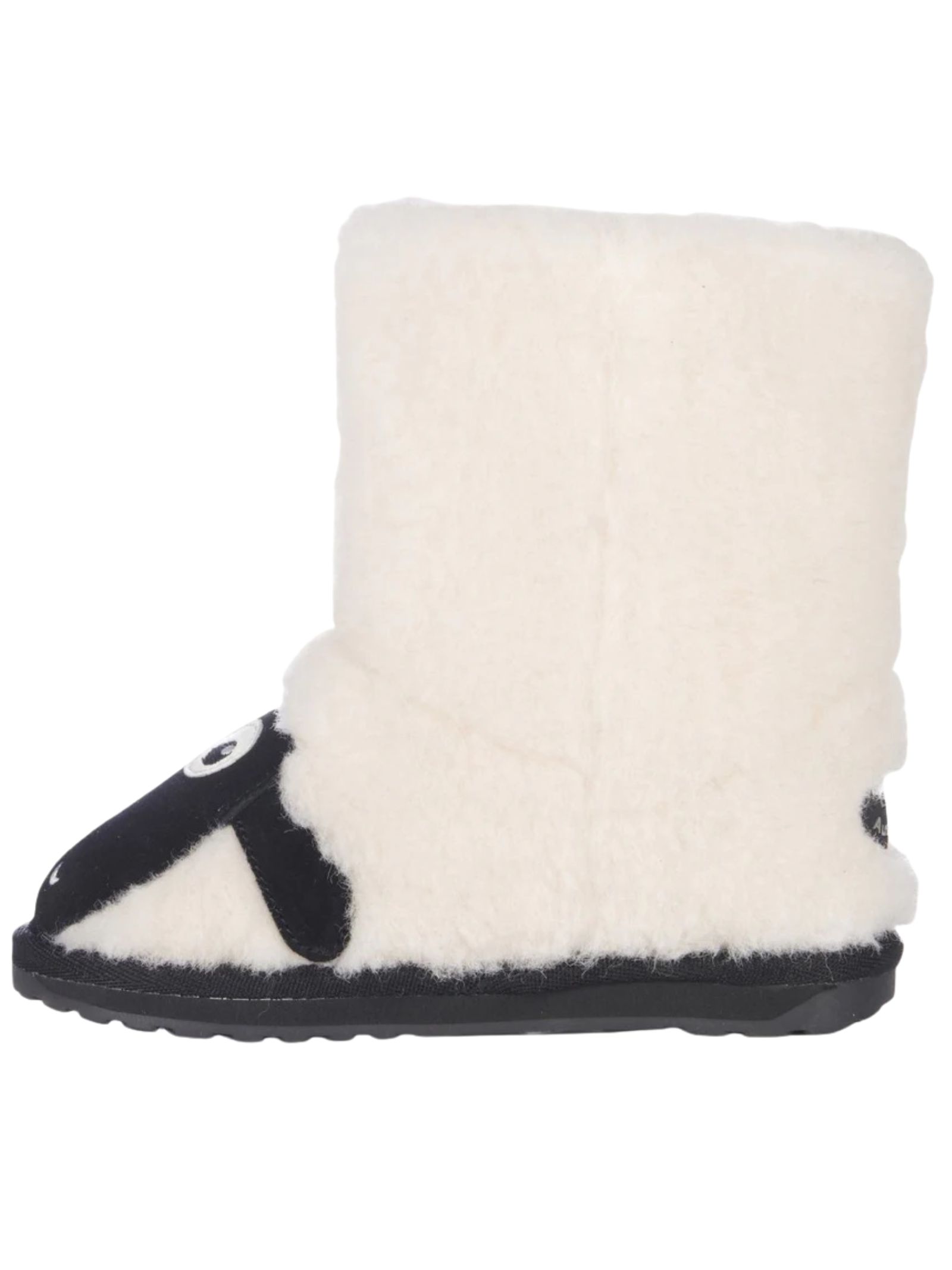 Stivale EMU AUSTALIA kids di colore panna Shaun the Sheep in edizione limitata è lo stivaletto perfetto per piccoli esploratori. Fatto con pelle scamoscita di qualità Premium e lana Merino Australiana regala comfort e calore per tutto il giorno. La suola flessibile TPR con design ondulato restituisce trazione e supporto alla scarpa per evitare cadute e scivolate.
