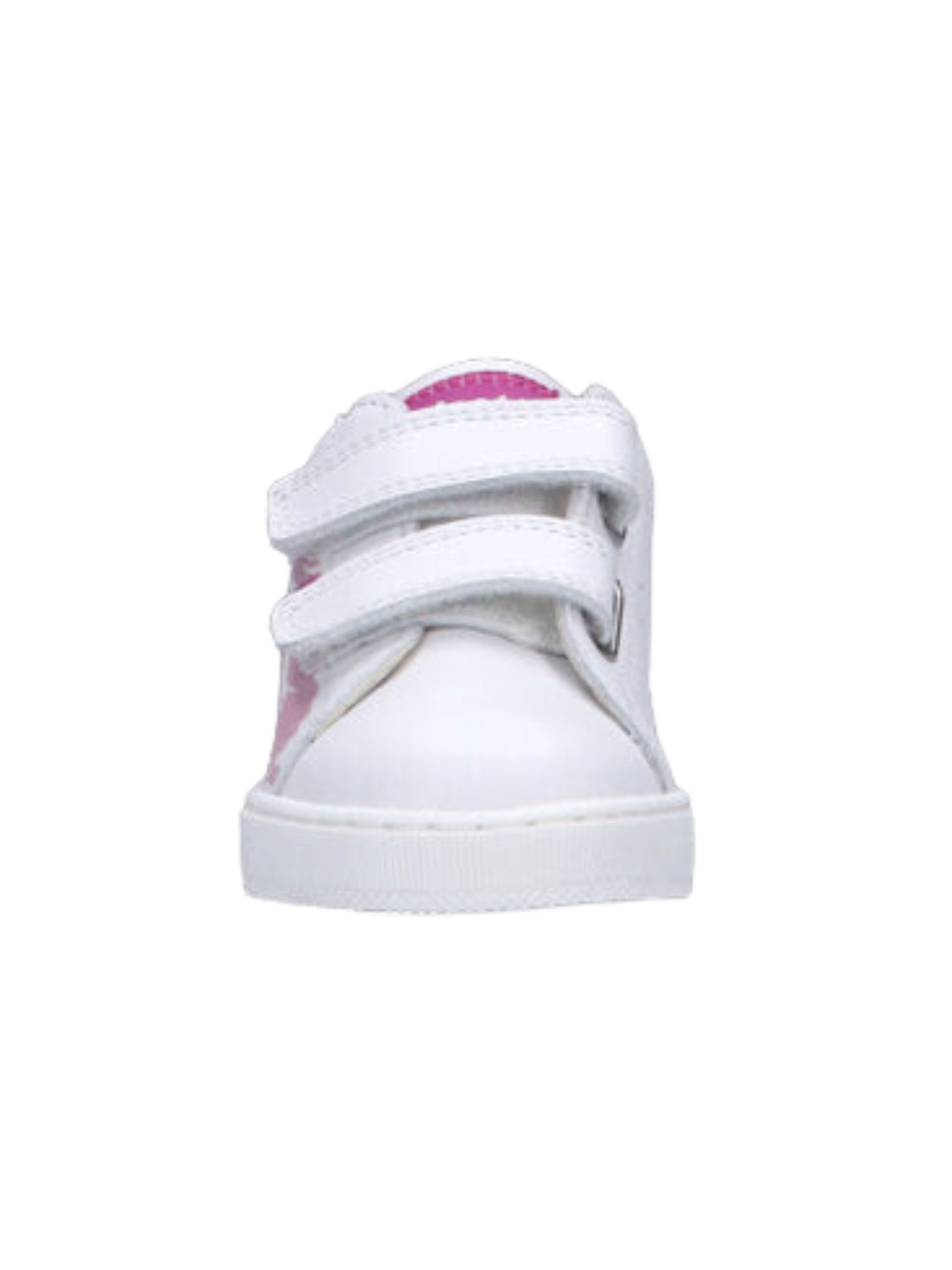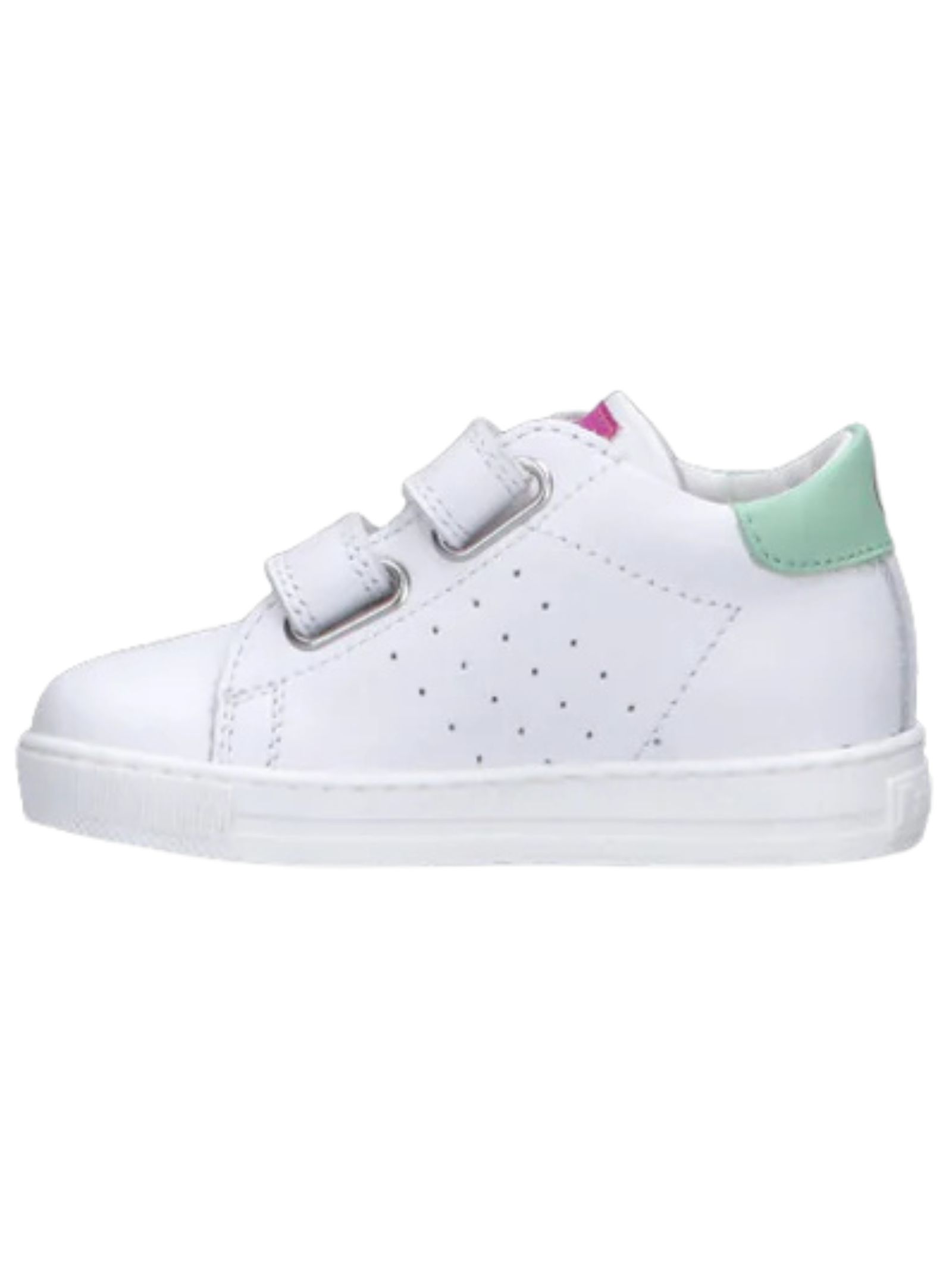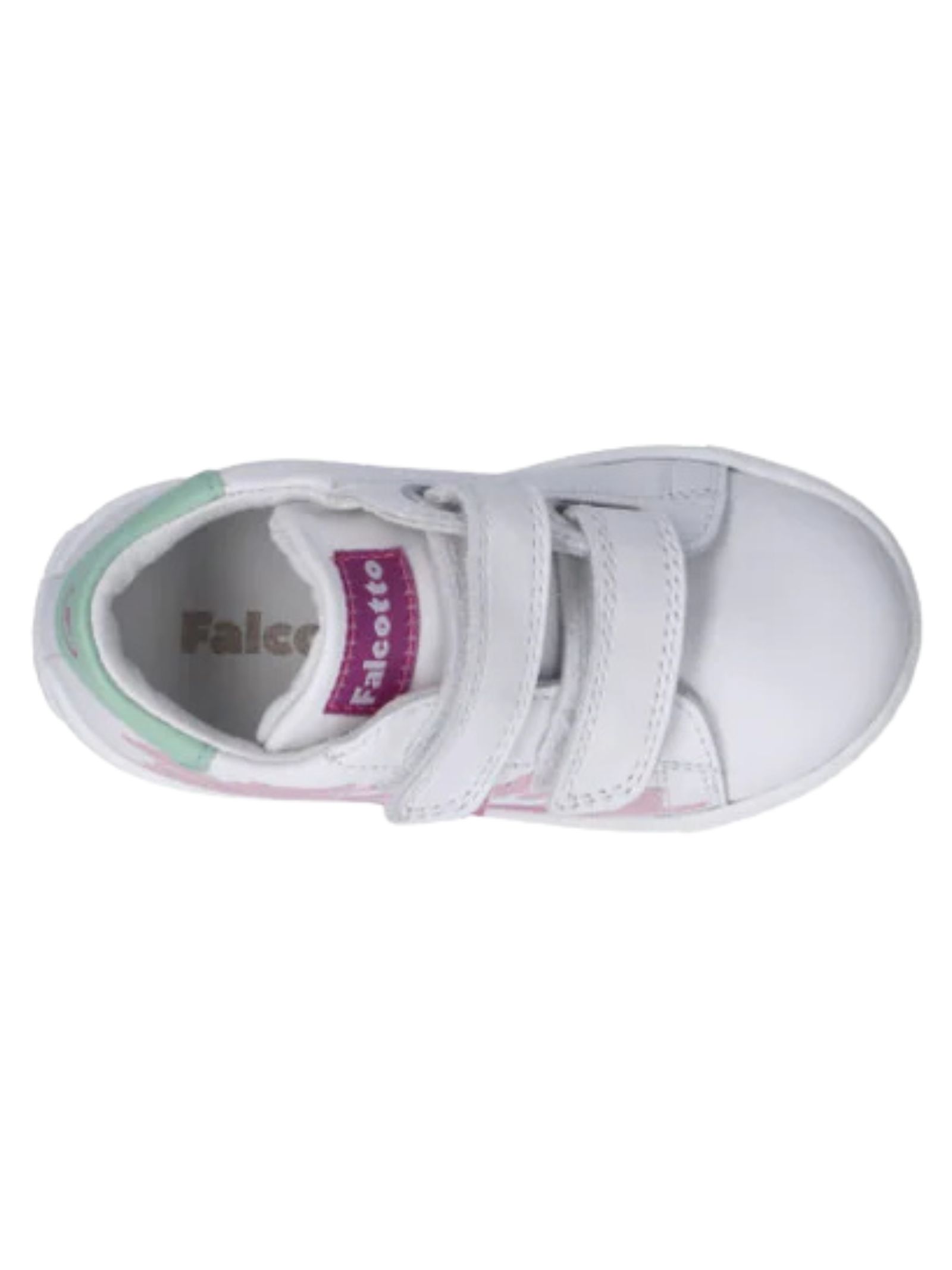 FALCOTTO Kids Sneakers bianca con dettagli rosa, realizzate in morbida pelle dal gusto giocoso e raffinato, chiusura a strappo, punta tonda, suola in gomma.
