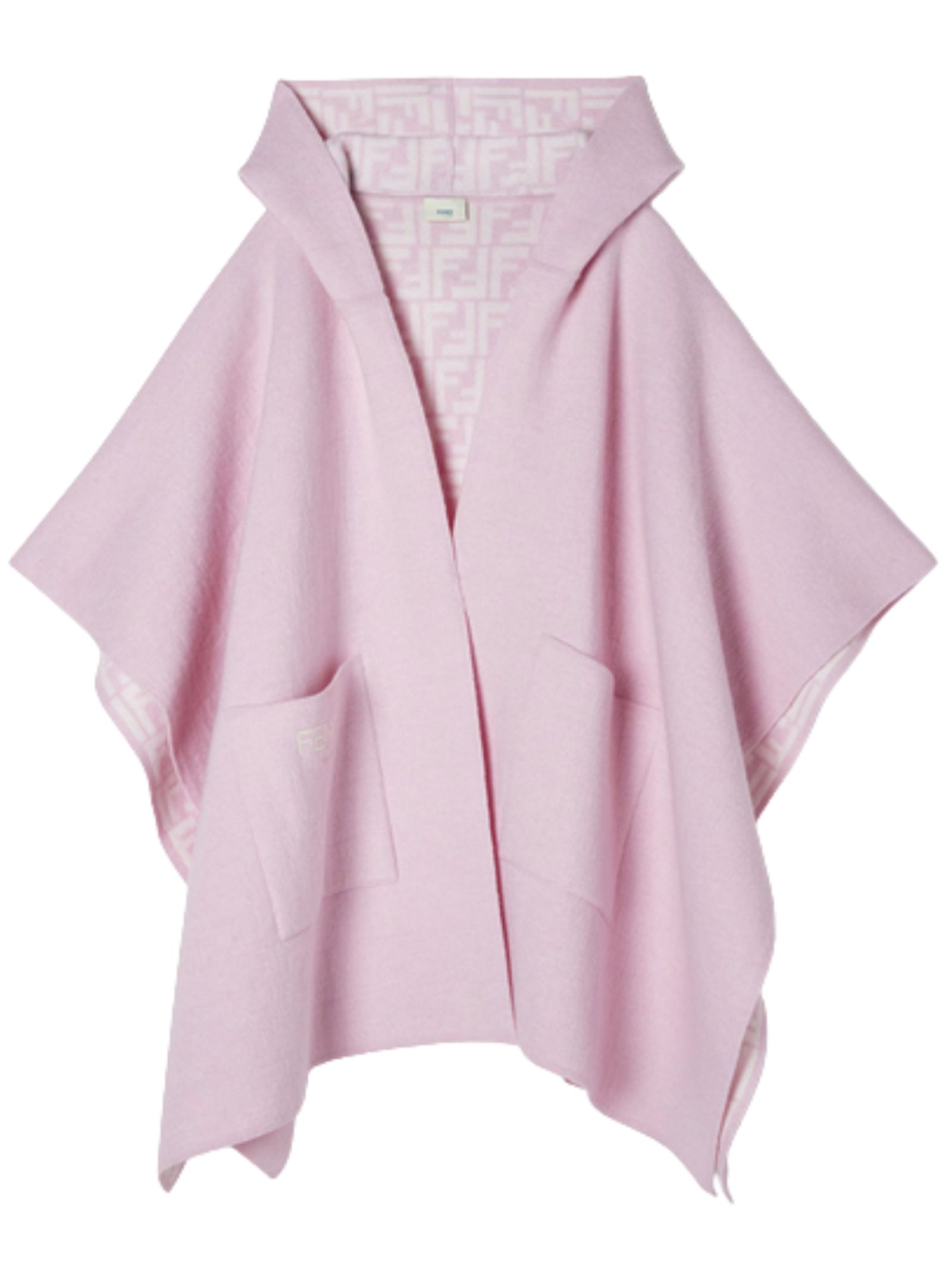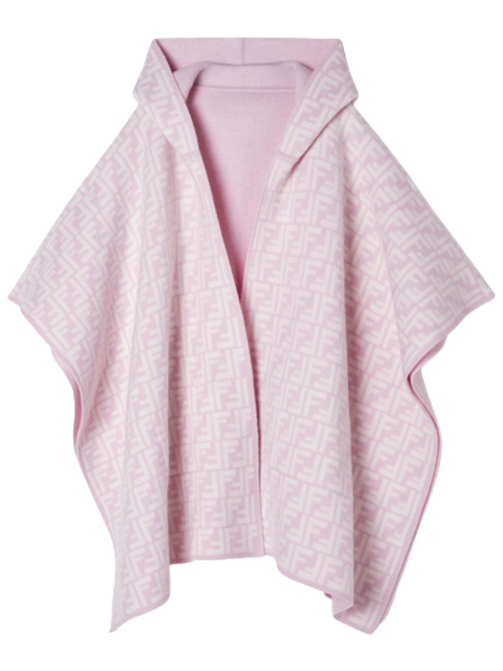 FENDI Kids mantella di colore rosa, dettaglio classico motivo a contrasto, chiusura parziale, cappuccio, due tasche frontali, orlo dritto. Composizione: 85% lana 10% cashmere 5% nylon. Made in Italy