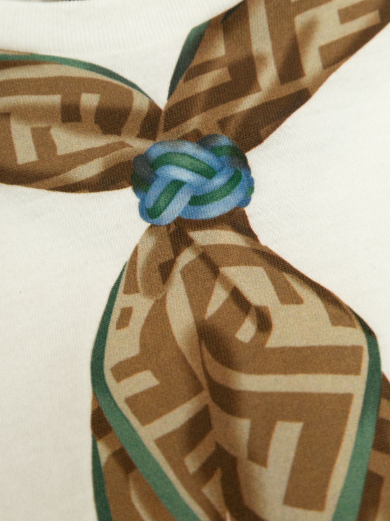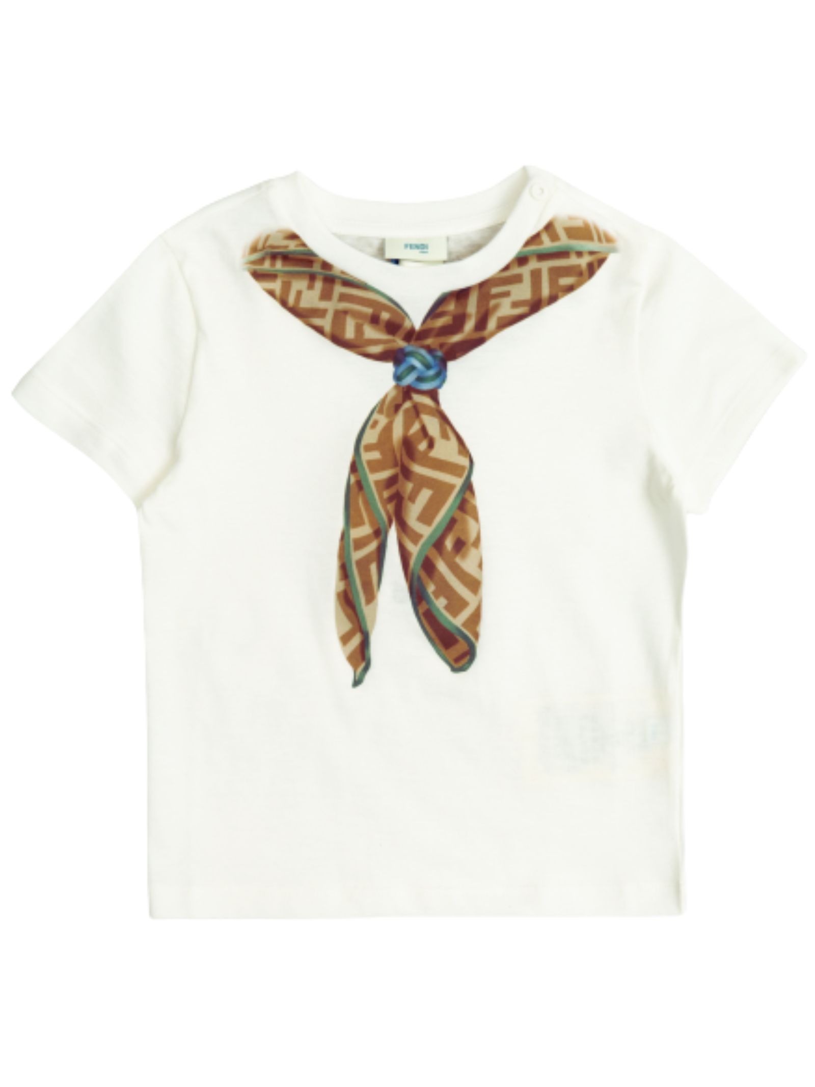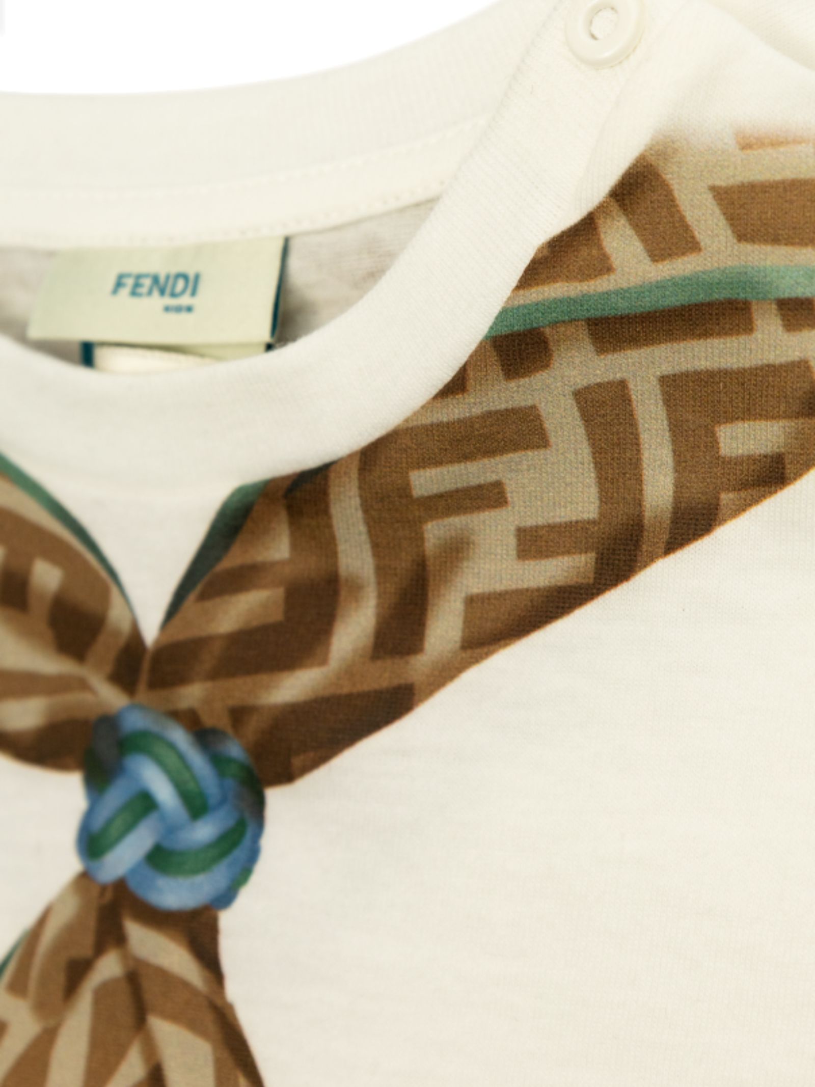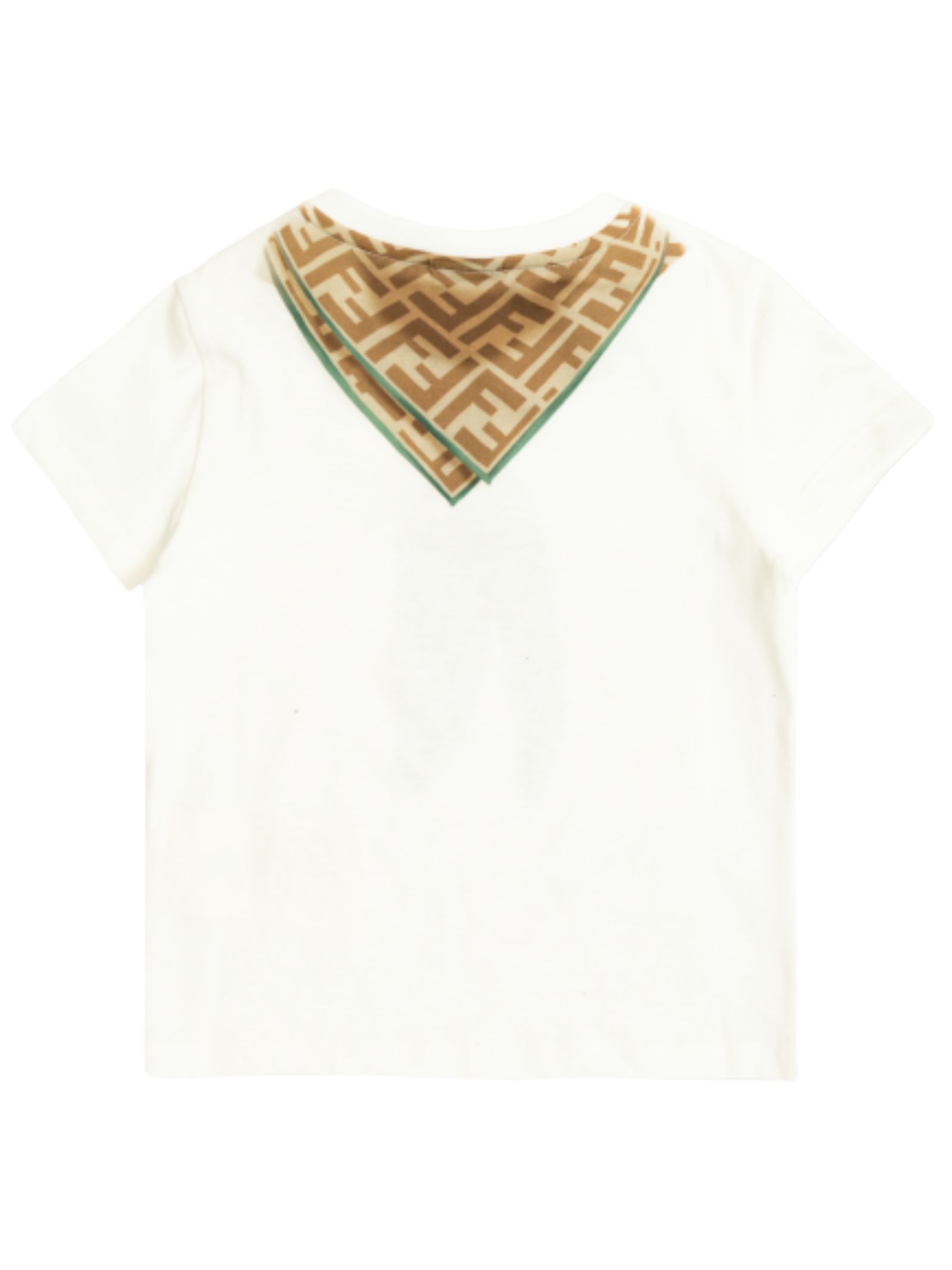 Fendi Kids t-shirt di colore bianco, modello girocollo, mezza manica, motivo a contrasto foulard