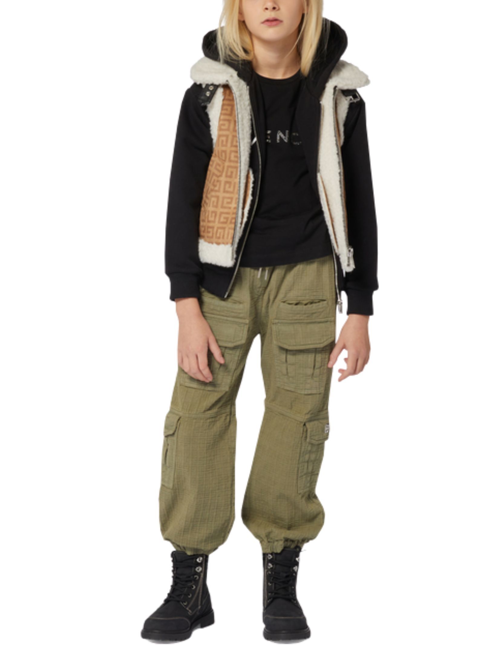 Givenchy Kids pantalone di colore verde, caratterizzato da logo 4G in tinta su tutta la superficie, modello con elastico in vita e coulisse, 2 tasche laterali, 4 tasche cargo, caviglie elastiche. Composizione: 100% cotone