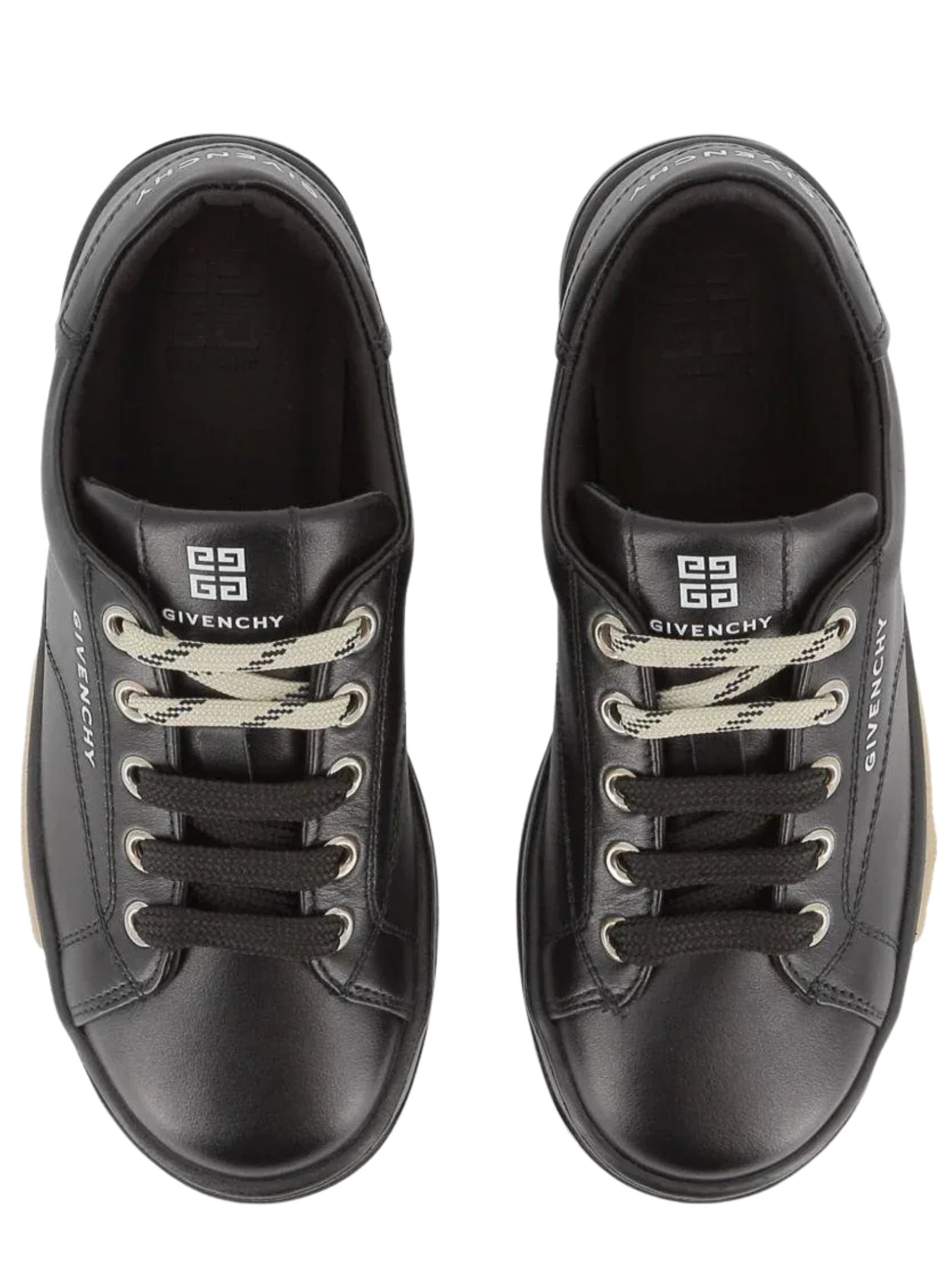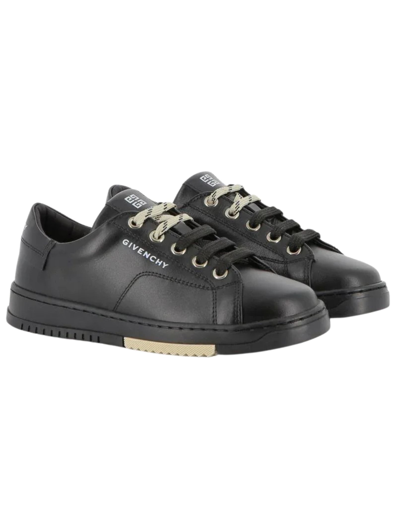Givenchy Kids scarpe di colore nero/beige, dettaglio con logo goffrato, lacci a contrasto, profilo alla caviglia imbottita. Composizione esterna: pelle di vitello 100%, fodera in pelle di cavallo 100% e suola in gomma sintetica 100%.