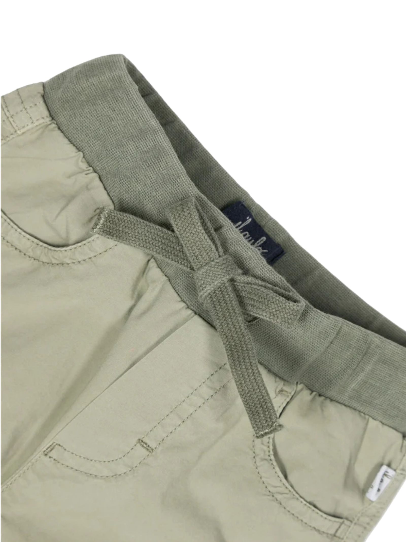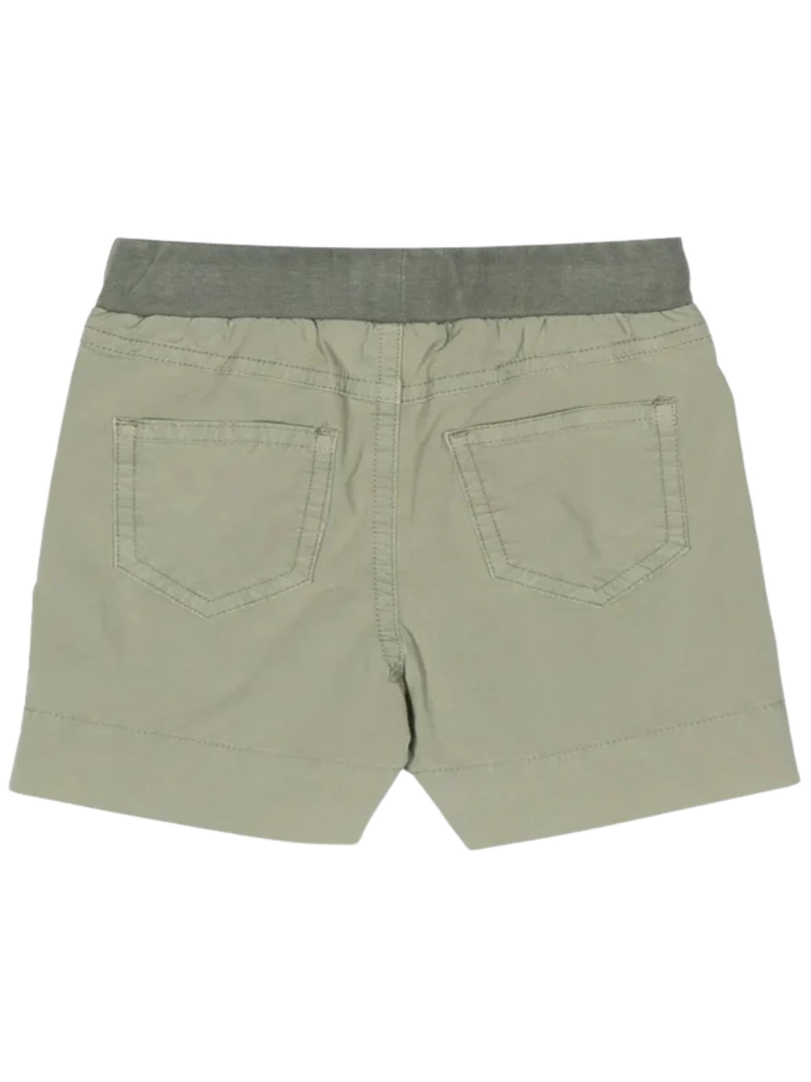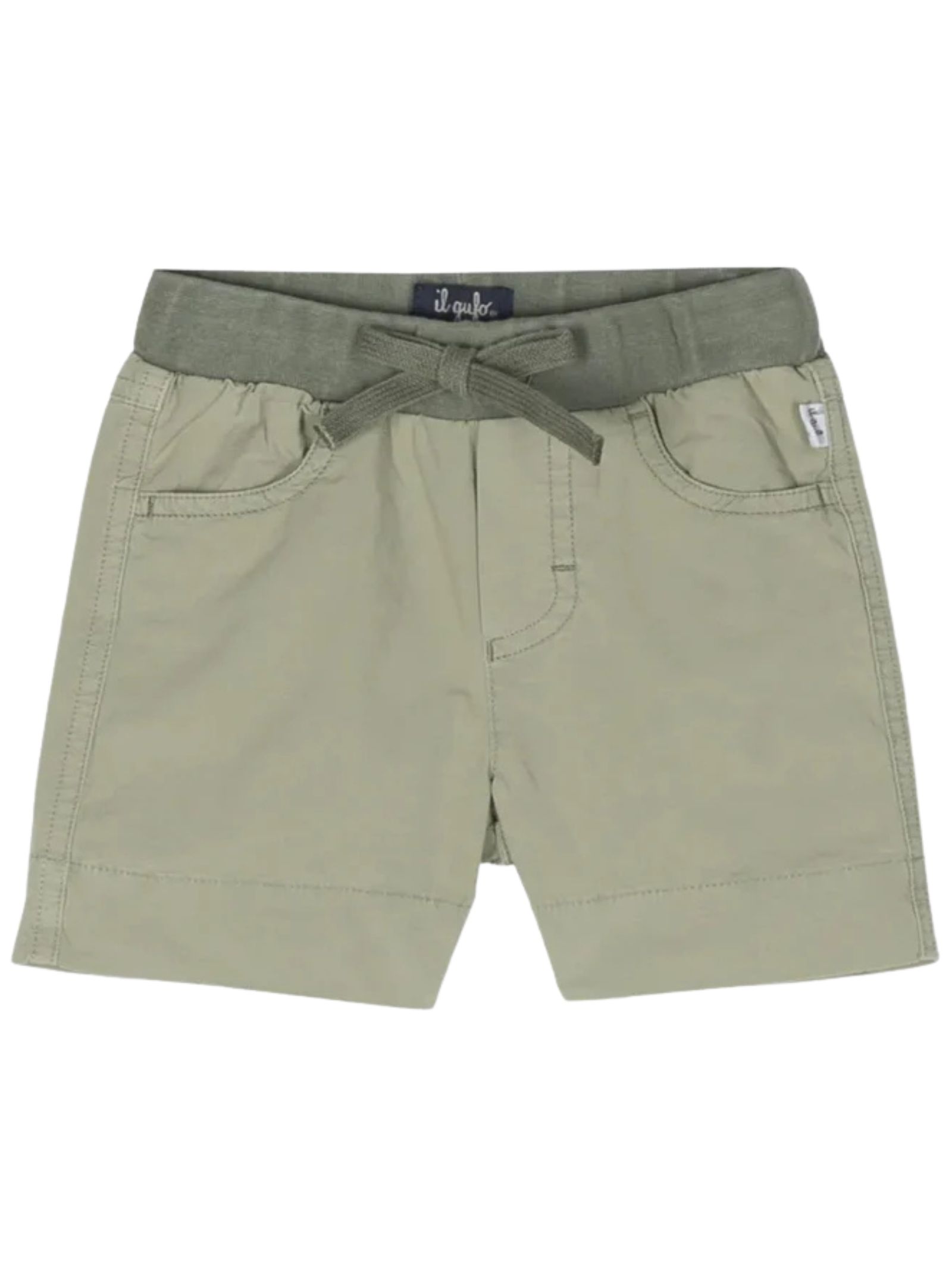 IL GUFO Kids bermuda di colore verde, vita con elastico e coulisse, 4 tasche, patch con logo, vestibilità regolare. Composizione: 97% Cotone 3% Elastan. Made in Italy
