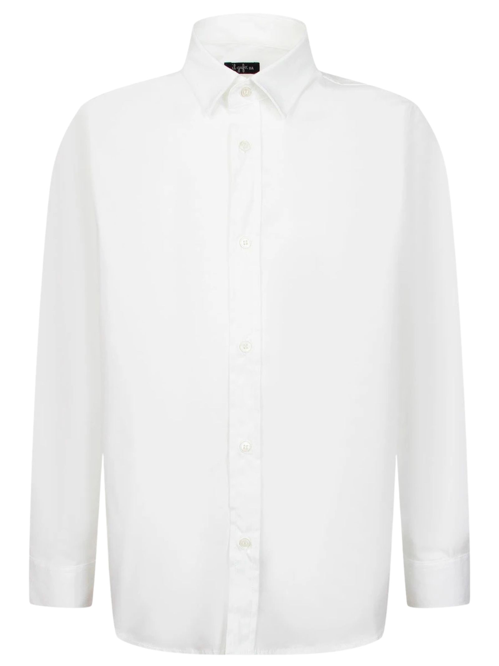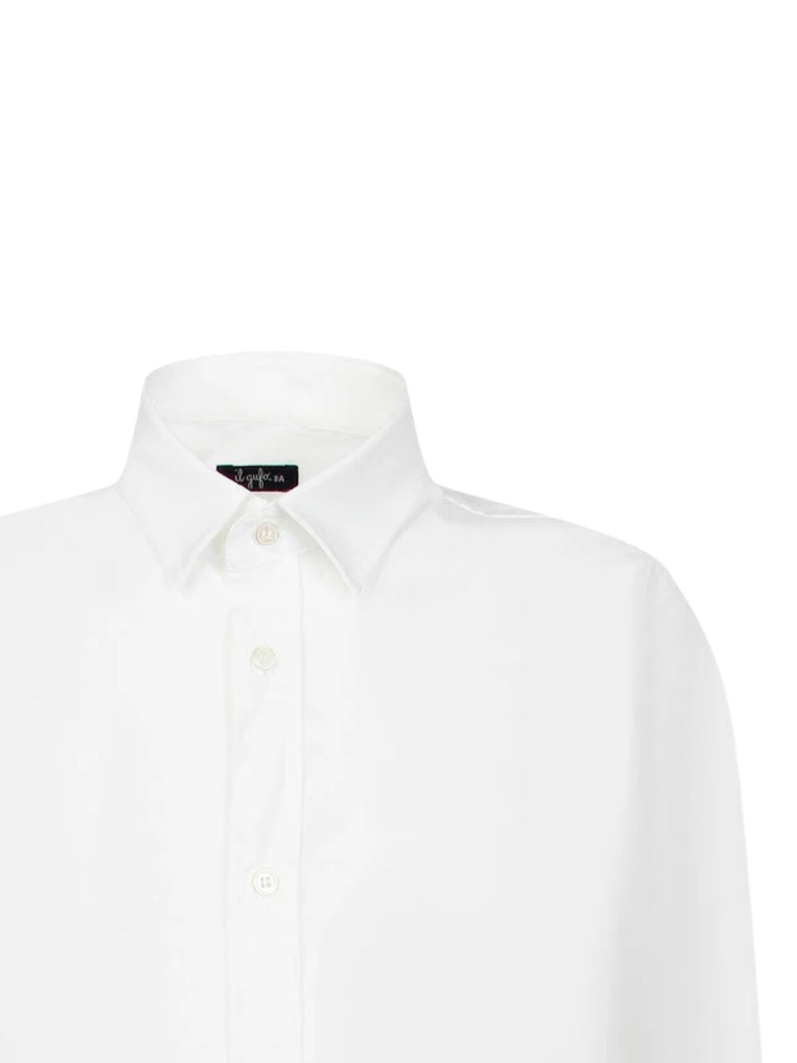 IL GUFO Kids camicia di colore bianco, colletto classico, maniche lunghe, orlo curvo, vestibilità regolare. Composizione: 100% cotone. Made in Italy