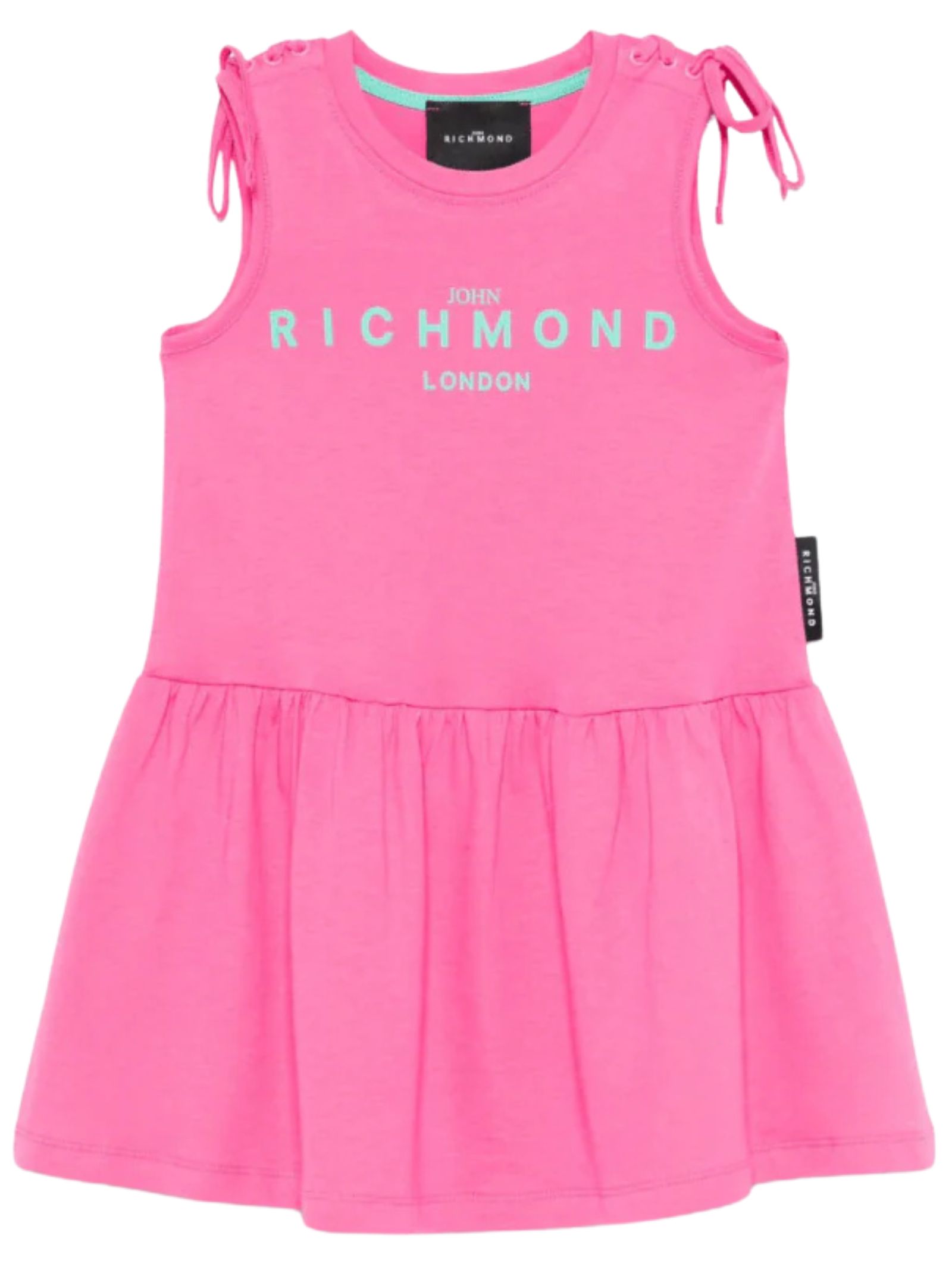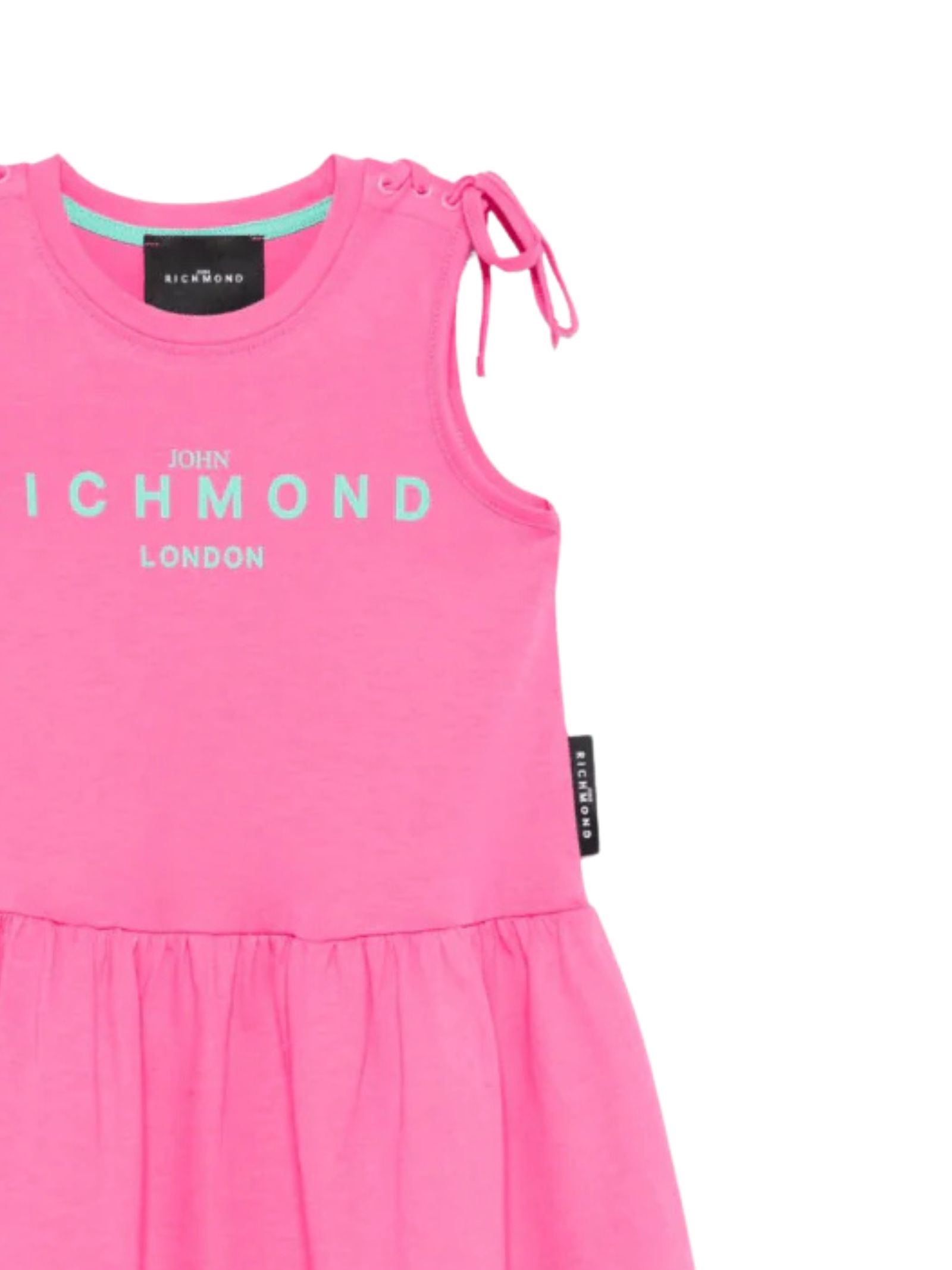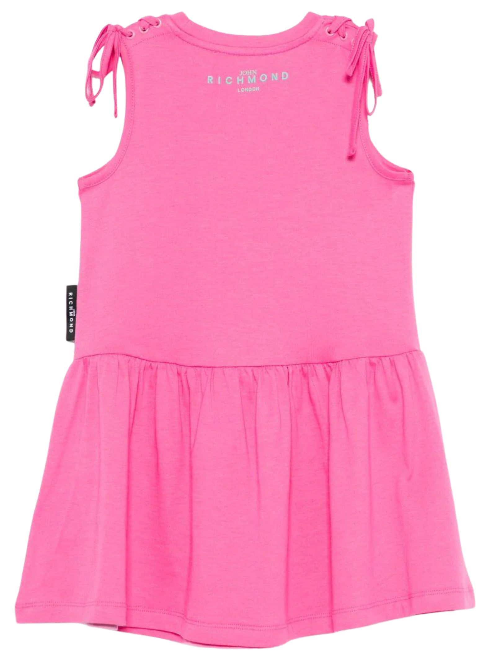 Jhon Richmond Kids abito di colore fucsia, modello girocollo, smanicato, fiocchi sulle spalle, design svasato. Composizione: 100% cotone