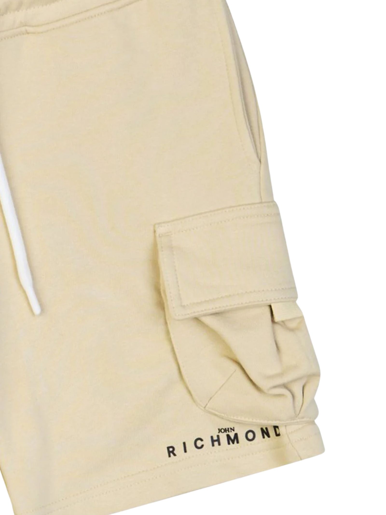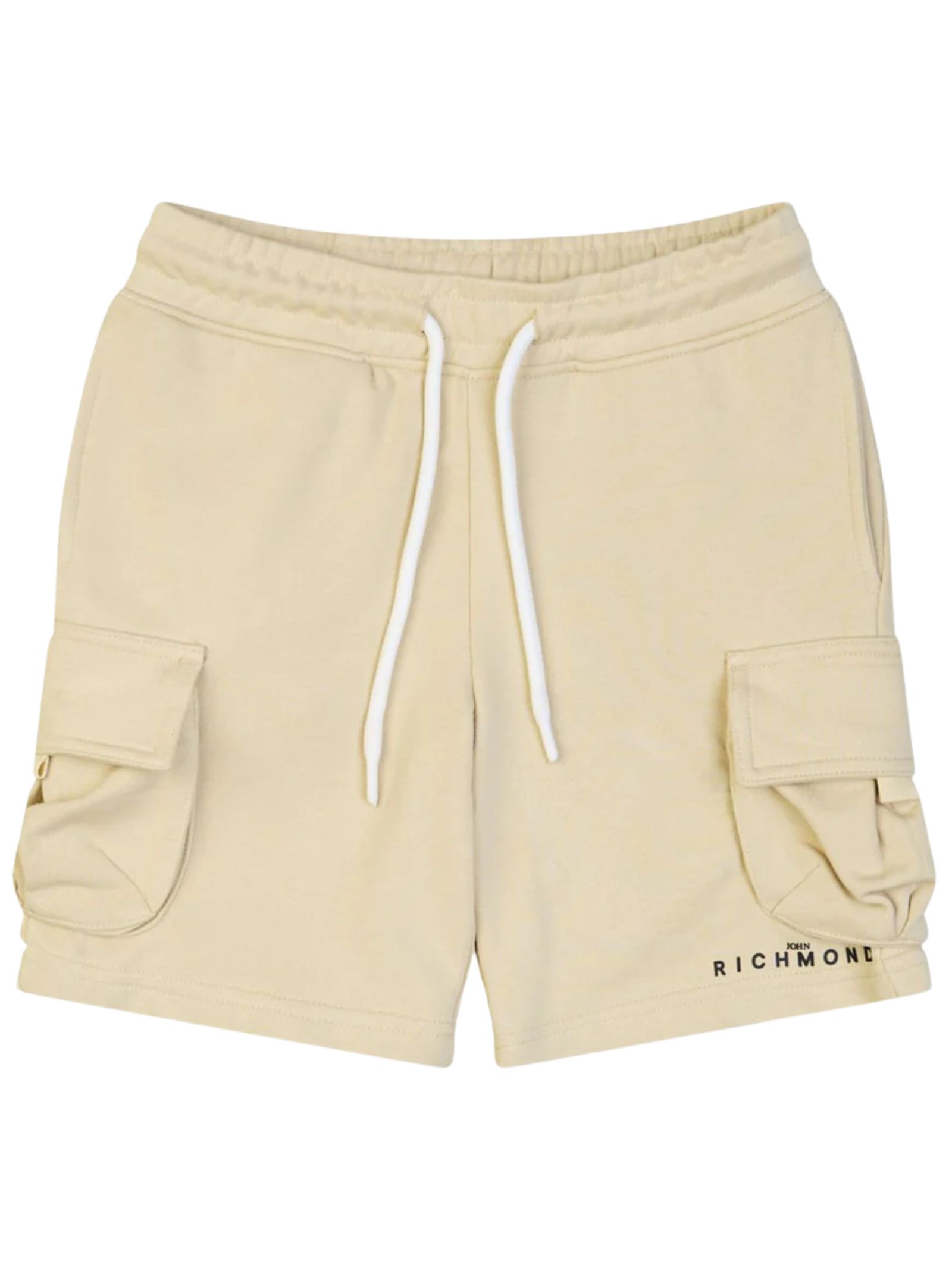 Jhon Richmond Kids bermuda di colore sabbia, modello con elastico in vita, due tasche laterali, due tasche cargo, vestibilità regolare. Composizione: 86% cotone 14% poliestere