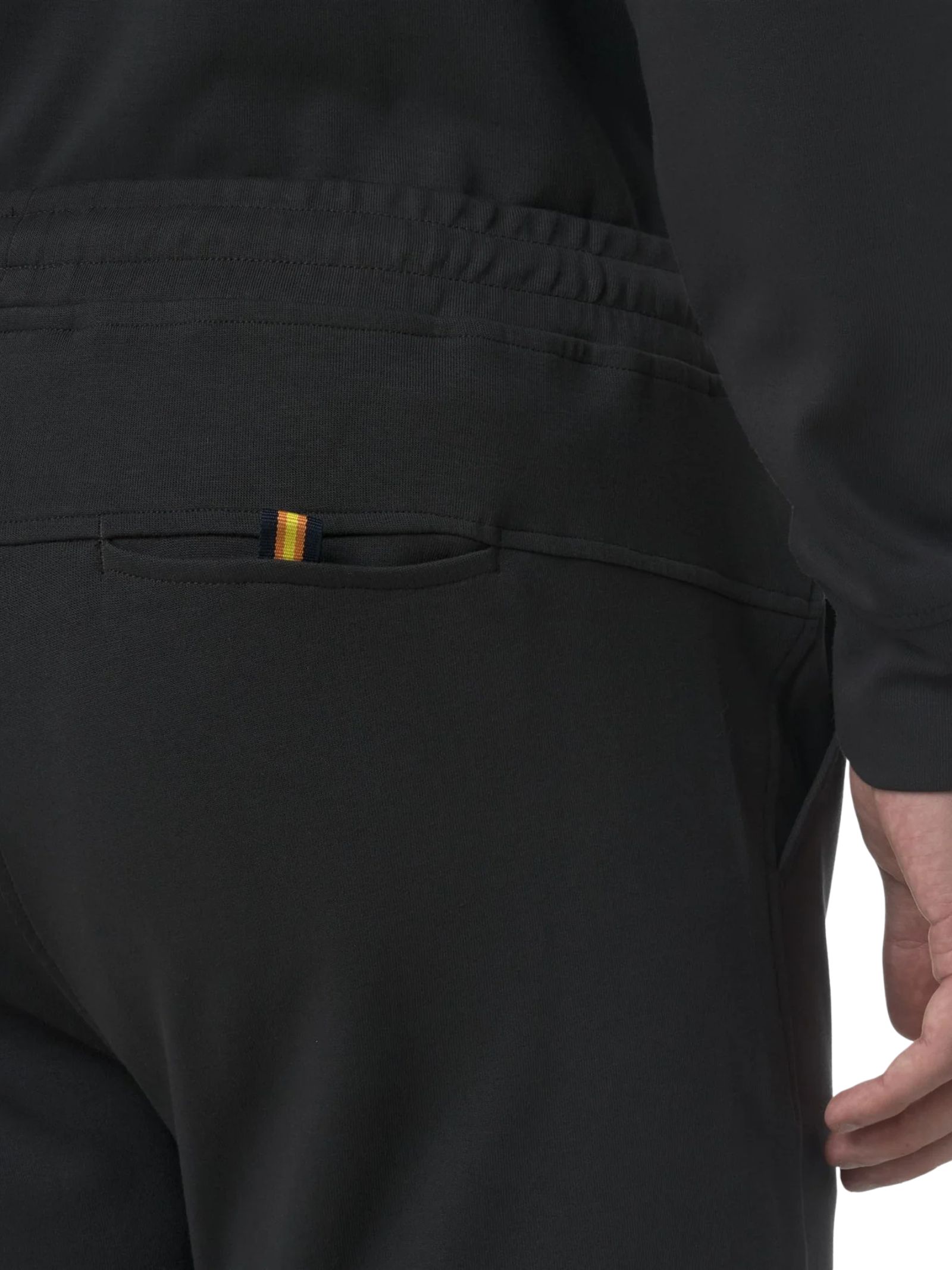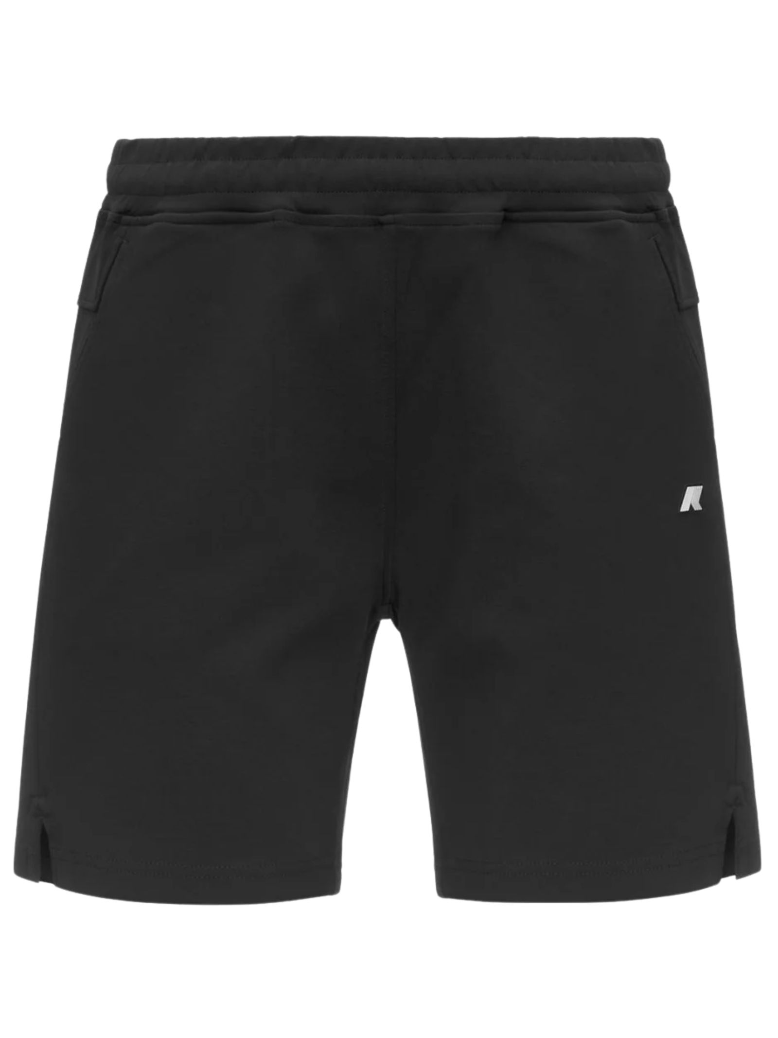 K-Way Kids bermuda di colore nero, modello con due tasche laterali, uma tasca a fessura sul retro, patch logo applicato, vita elastica con coulisse interna, vestibilità regolare. Composizione: 80% cotone 14% poliestere 6% elastan