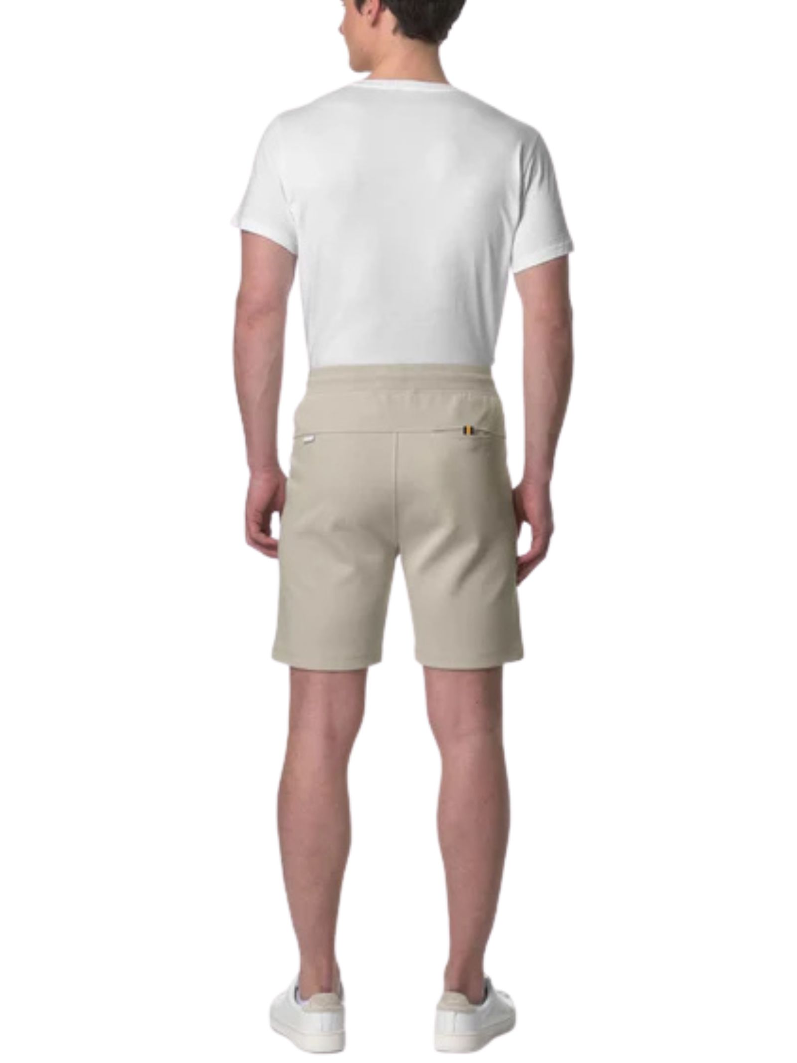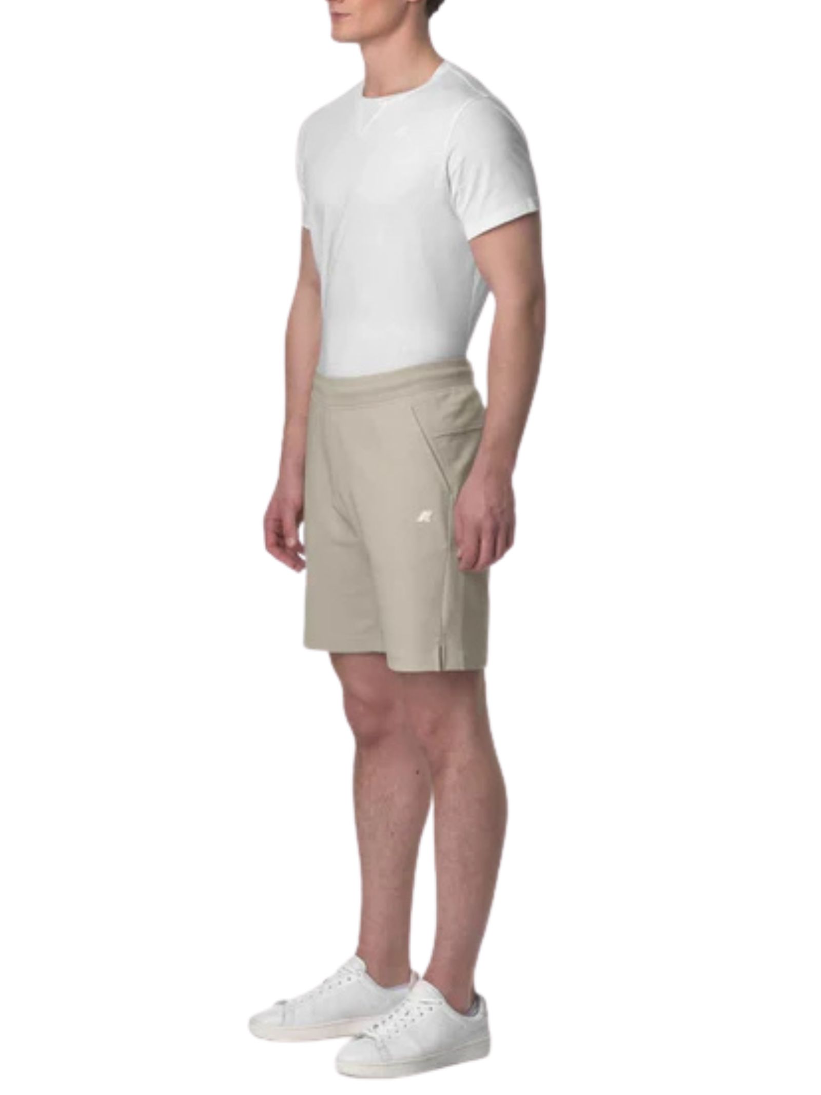 K-Way Kids bermuda di colore sabbia, modello con due tasche laterali, una tasca a fessura sul retro, patch logo applicato, vita elastica con coulisse interna, vestibilità regolare. Composizione: 80% cotone 14% poliestere 6% elastan